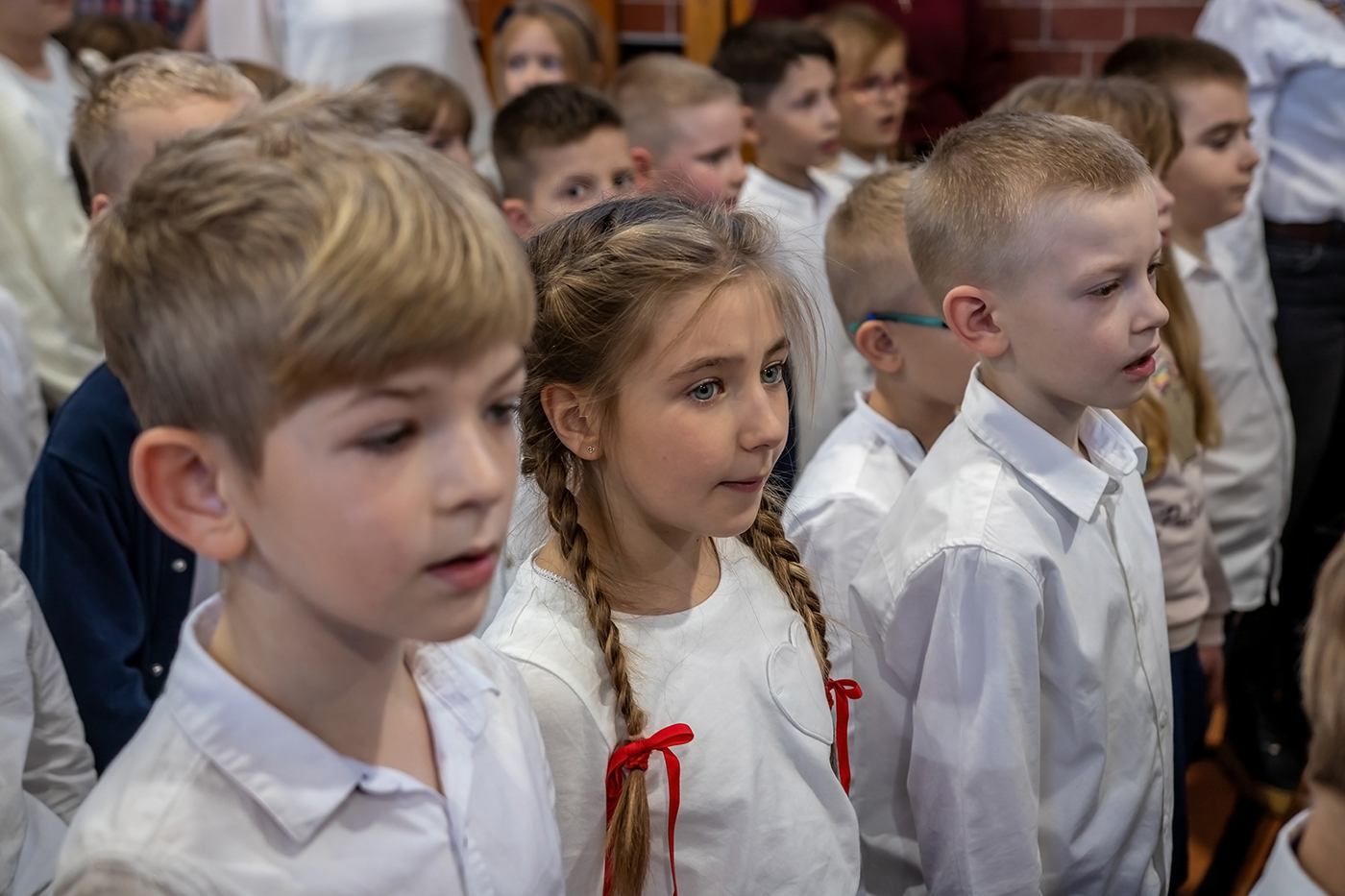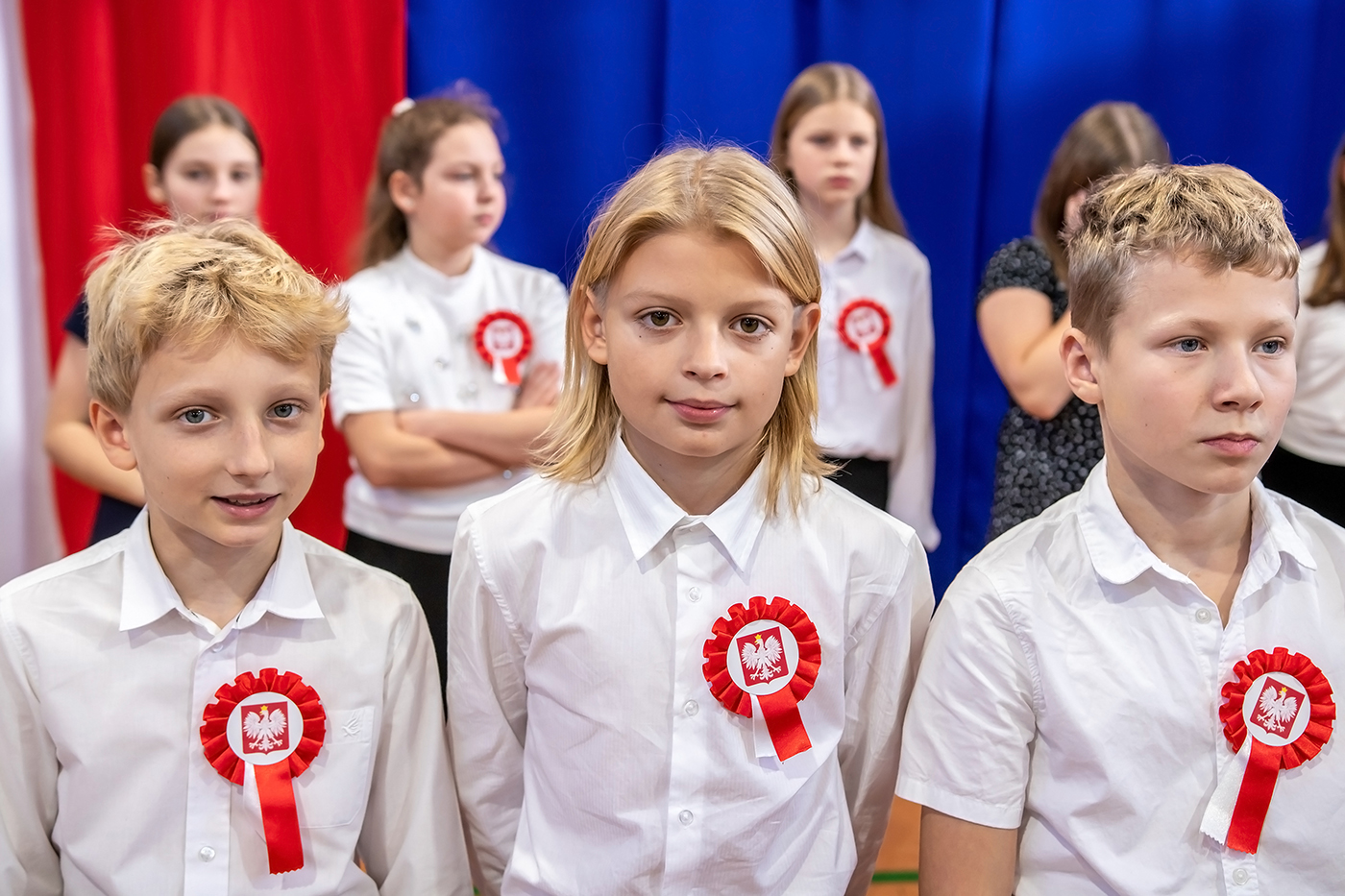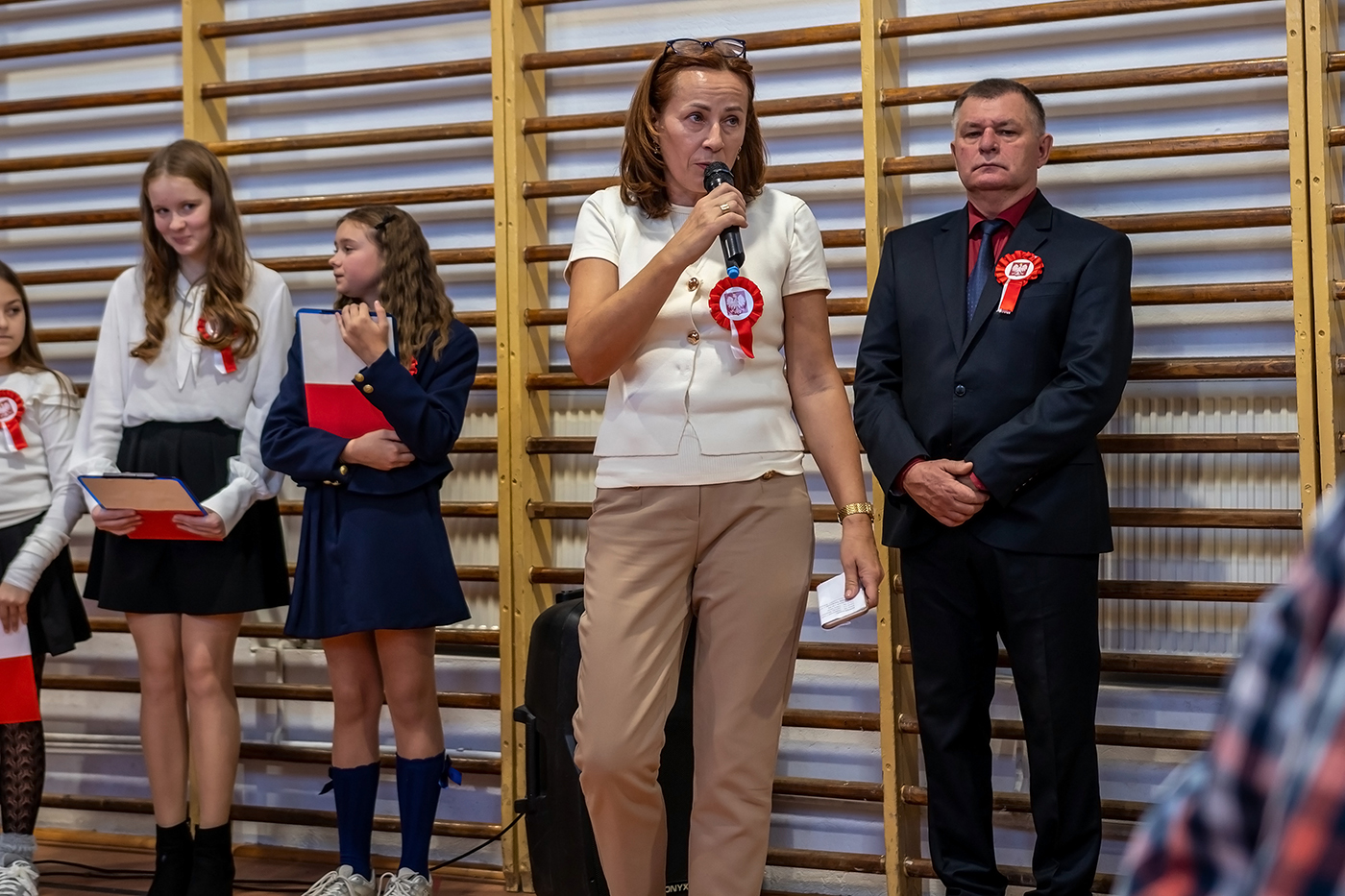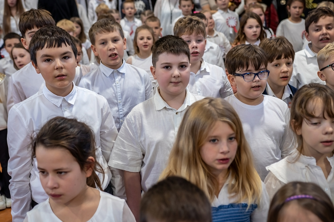 W czwartek, 13 listopada 2025 r. odbyła się w naszej szkole uroczysta akademia z okazji Narodowego Święta Niepodległości. Uczniowie klas: IIb, Va i Vb wraz z nauczycielami przygotowali dla społeczności szkolnej montaż słowno – muzyczny opisujący drogę Polski do odzyskania niepodległości po 123 latach niewoli. Na zakończenie spotkania „Dekalog Patrioty” zadeklamowała Daria Sobczuk z klasy VIIIb.
