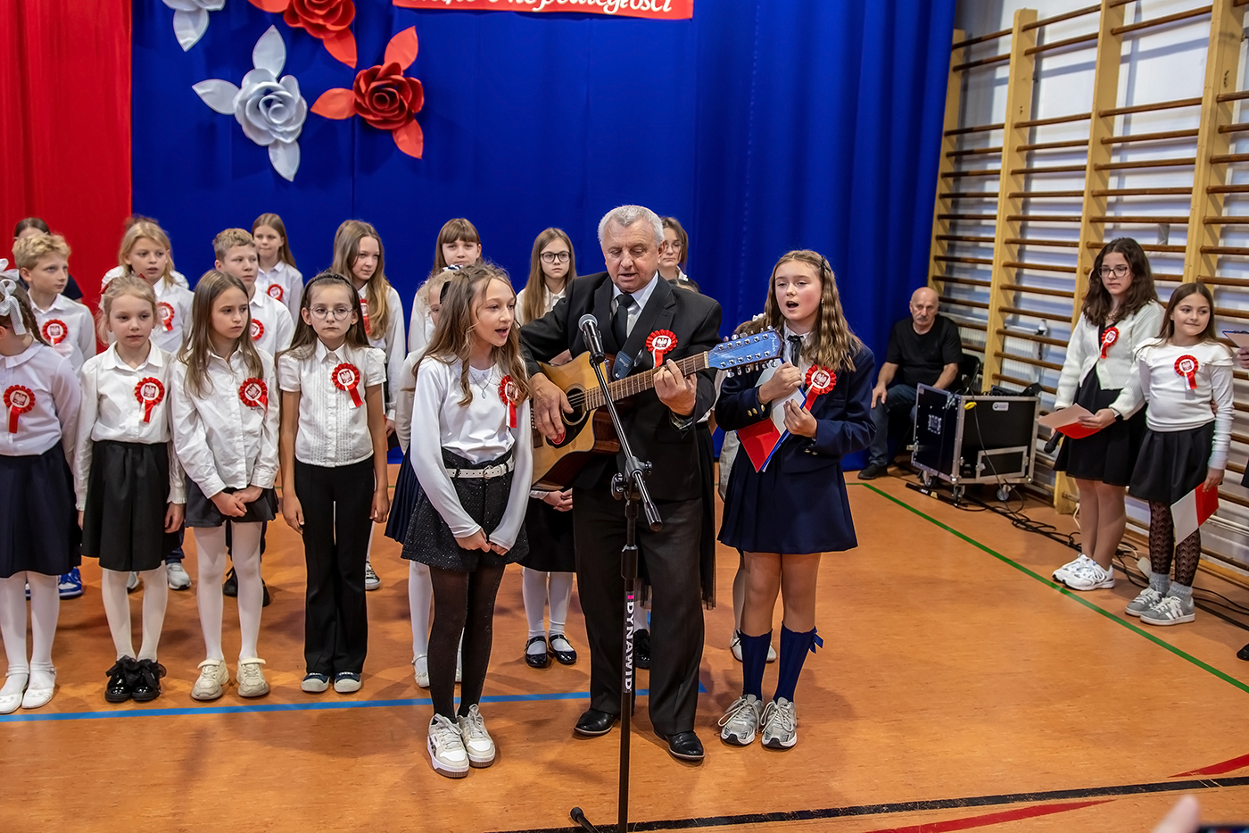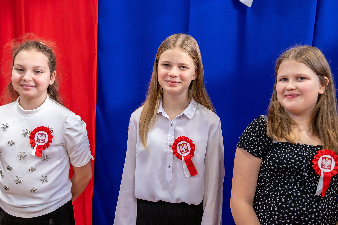 Szczególnym momentem akademii był występ p. Lucjana Sierkowskiego z wnuczkami, uczennicami naszej szkoły. Takie chwile najlepiej pokazują, że miłości do Ojczyzny uczymy się nie tylko na lekcjach, lecz przede wszystkim w naszych rodzinach.