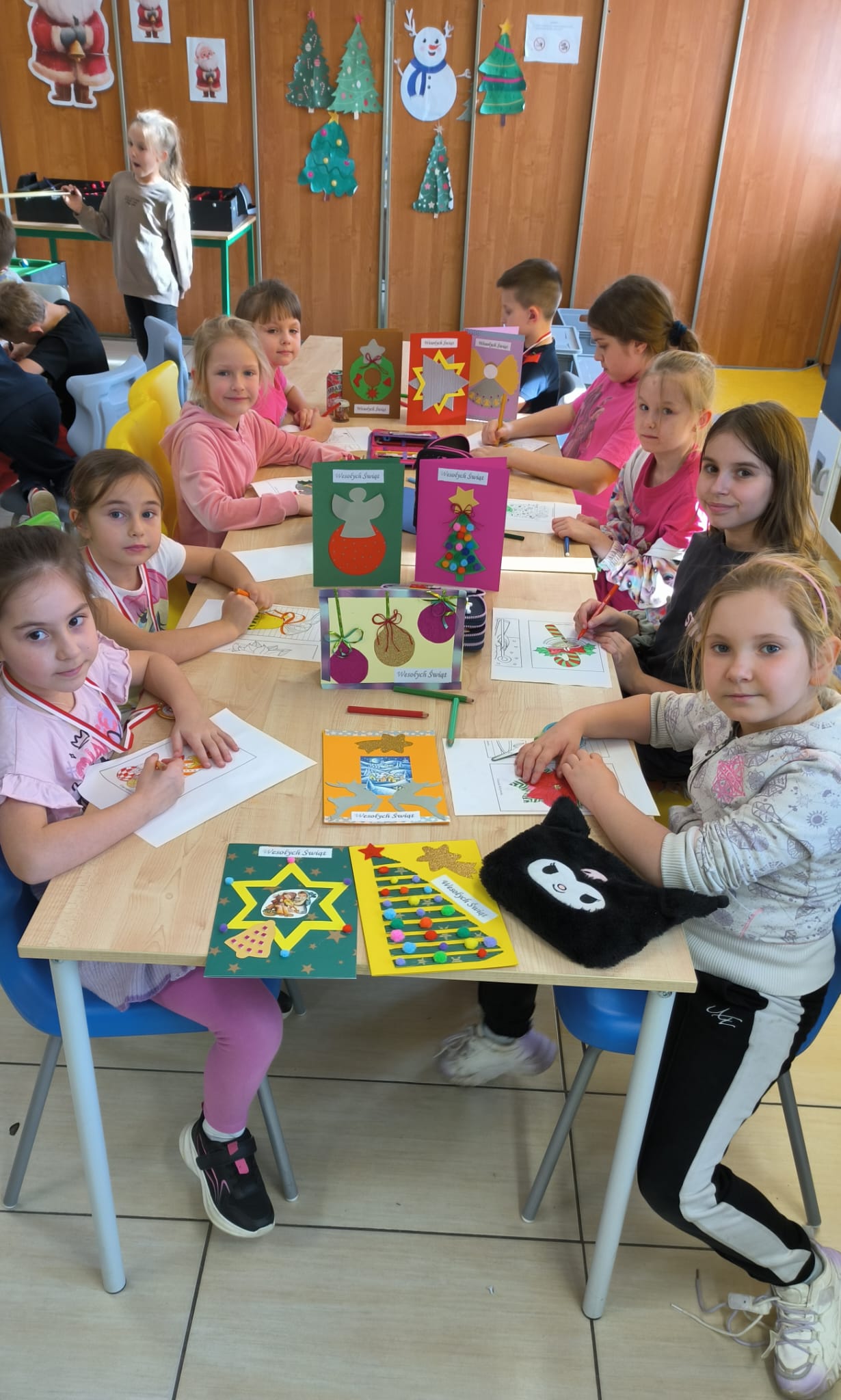 Głównym jej celem była zbiórka kredek i kolorowanek dla najmłodszych pacjentów Oddziału Pediatrycznego w Zamościu, którzy czas zbliżających się Świąt Bożego Narodzenia spędzą w szpitalu. Poza tym uczniowie świetlicy szkolnej pod opieką p. Eweliny Sienickiej w trakcie zajęć plastycznych wykonali własnoręcznie piękne kartki świąteczne z życzeniami dla chorych dzieci.