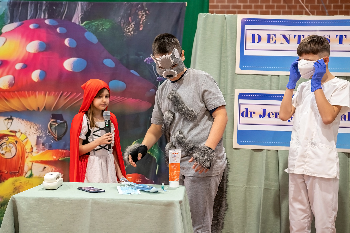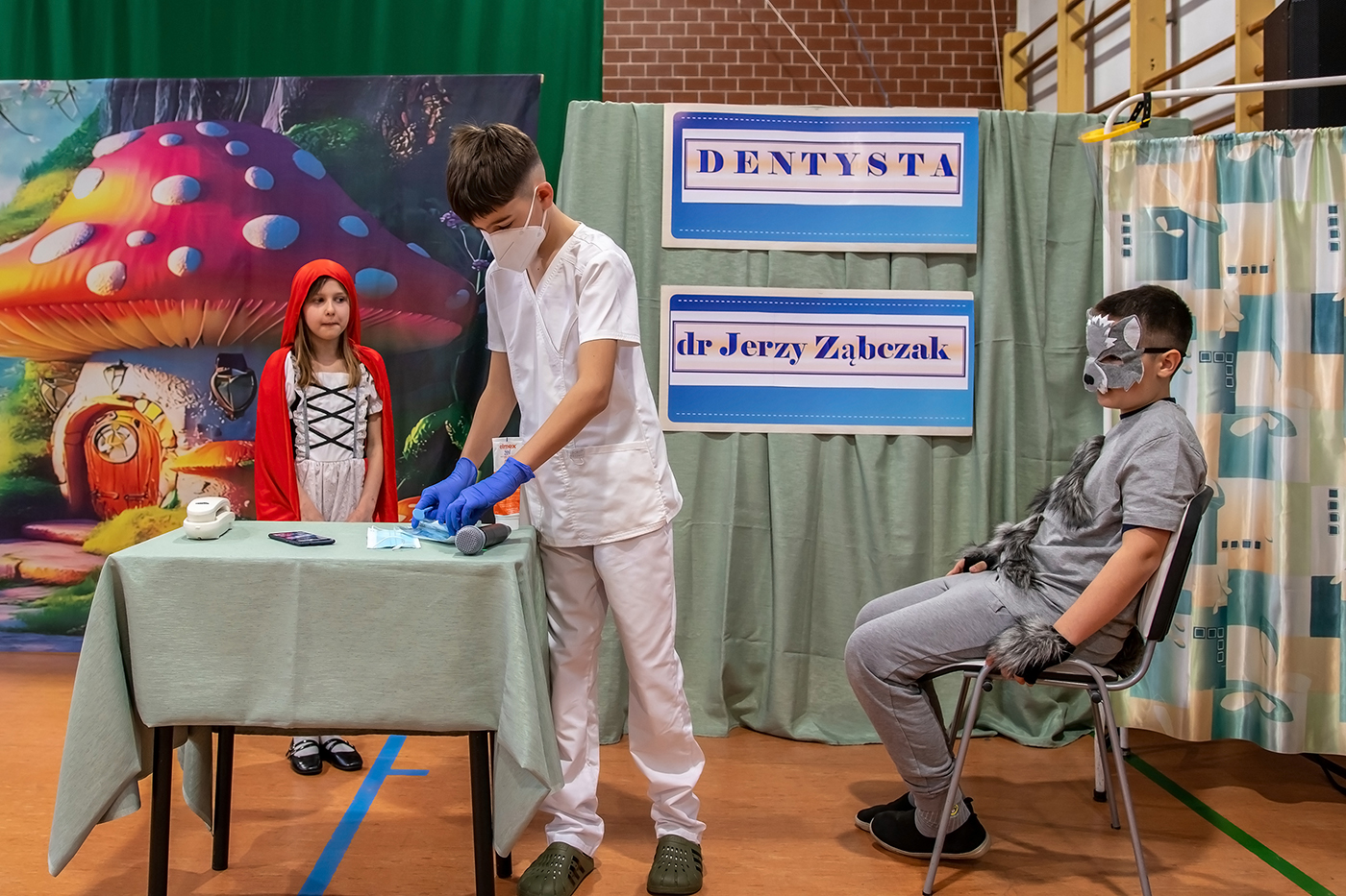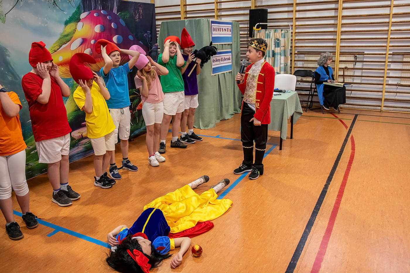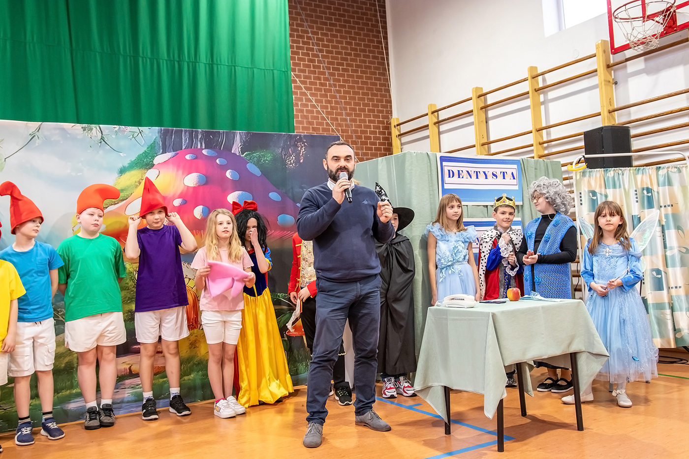 Spektakl składał się z trzech krótkich scenek, które w przystępny i ciekawy sposób poruszały ważne tematy dotyczące zdrowia i codziennych nawyków. Pierwsza scenka przypominała o konieczności dokładnego mycia owoców przed ich spożyciem, druga zwracała uwagę na znaczenie higieny osobistej, natomiast trzecia podkreślała, jak ważne jest dbanie o zdrowie zębów. Każda z nich niosła ze sobą wartościowy morał, sporą dawkę humoru i była zaprezentowana z dużym zaangażowaniem młodych aktorów. Uczniowie wykazali się odwagą sceniczną, kreatywnością oraz umiejętnością współpracy. Barwne stroje i przygotowana scenografia dodatkowo uatrakcyjniły występ, a publiczność nagrodziła młodych artystów gromkimi brawami.