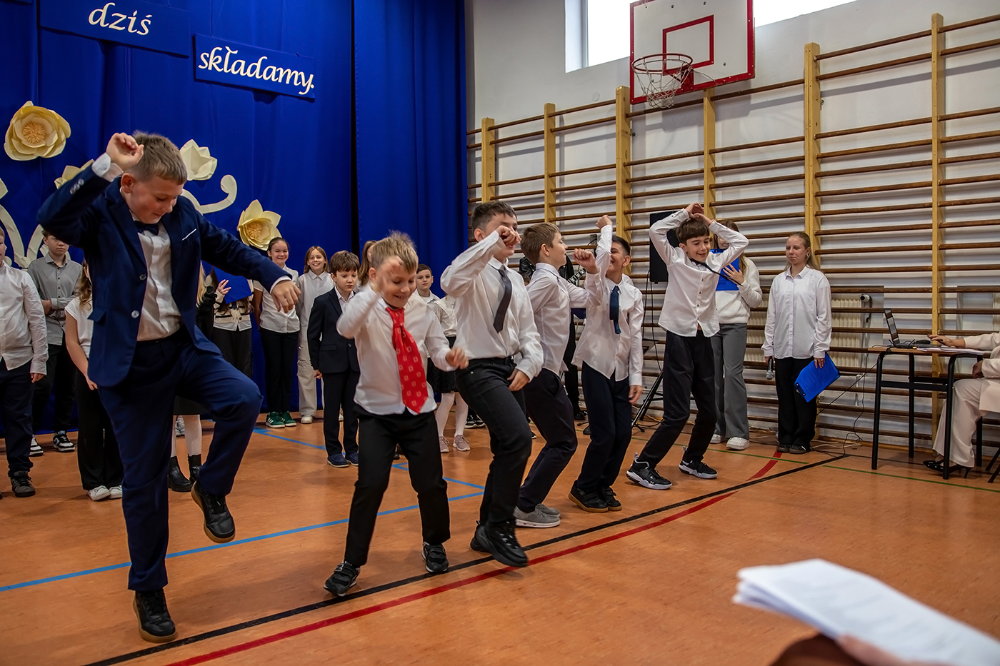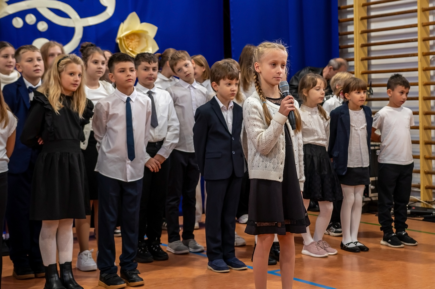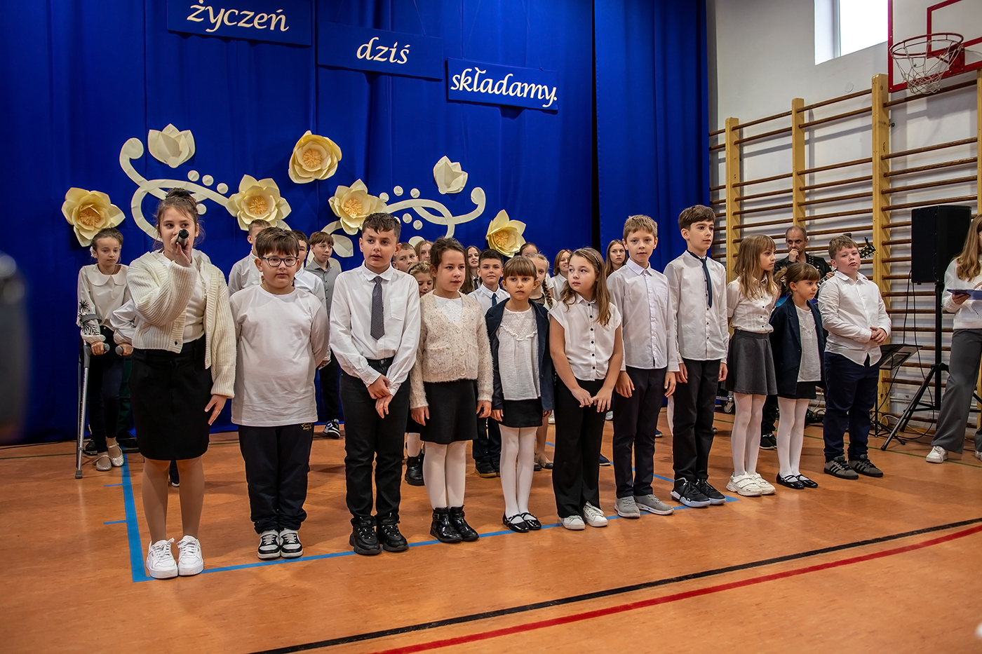 Tego dnia zgromadzili siÄ™ wszyscy tworzÄ…cy szkolnÄ… spoÅ‚eczność - uczniowie, grono pedagogiczne, szanowni emeryci oraz pracownicy szkoÅ‚y - aby wspólnie cieszyć siÄ™ tym Å›wiÄ™tem.