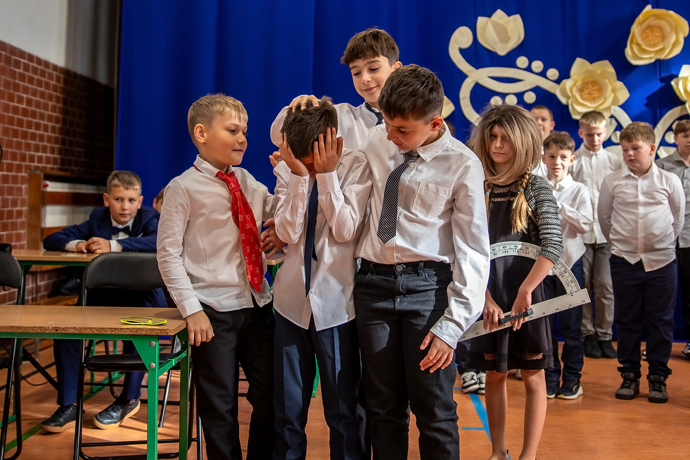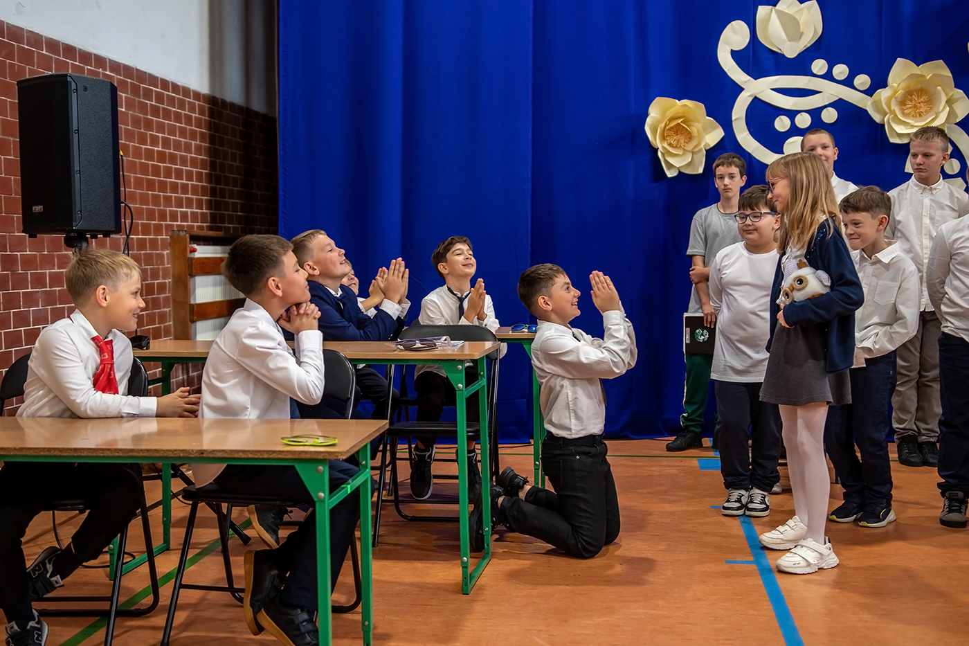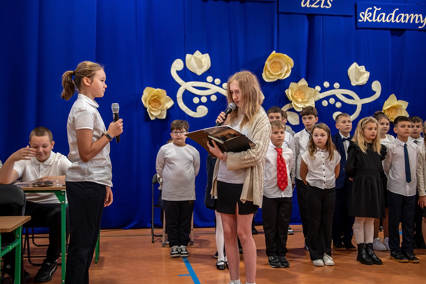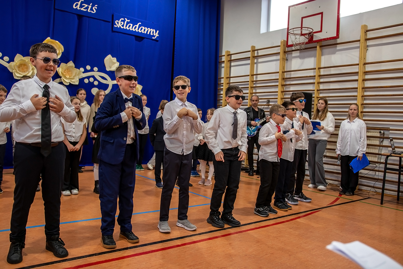 Tego dnia zgromadzili siÄ™ wszyscy tworzÄ…cy szkolnÄ… spoÅ‚eczność - uczniowie, grono pedagogiczne, szanowni emeryci oraz pracownicy szkoÅ‚y - aby wspólnie cieszyć siÄ™ tym Å›wiÄ™tem.