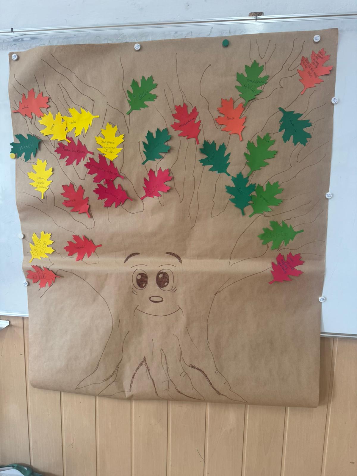 Na zakoÅ„czenie wspólnie stworzyliÅ›my Drzewo Dobrych SÅ‚ów – przyklejaliÅ›my kolorowe listki, na których zapisywaliÅ›my nasze „ciepÅ‚e i puchate”, którymi chcielibyÅ›my dzielić siÄ™ z innymi.