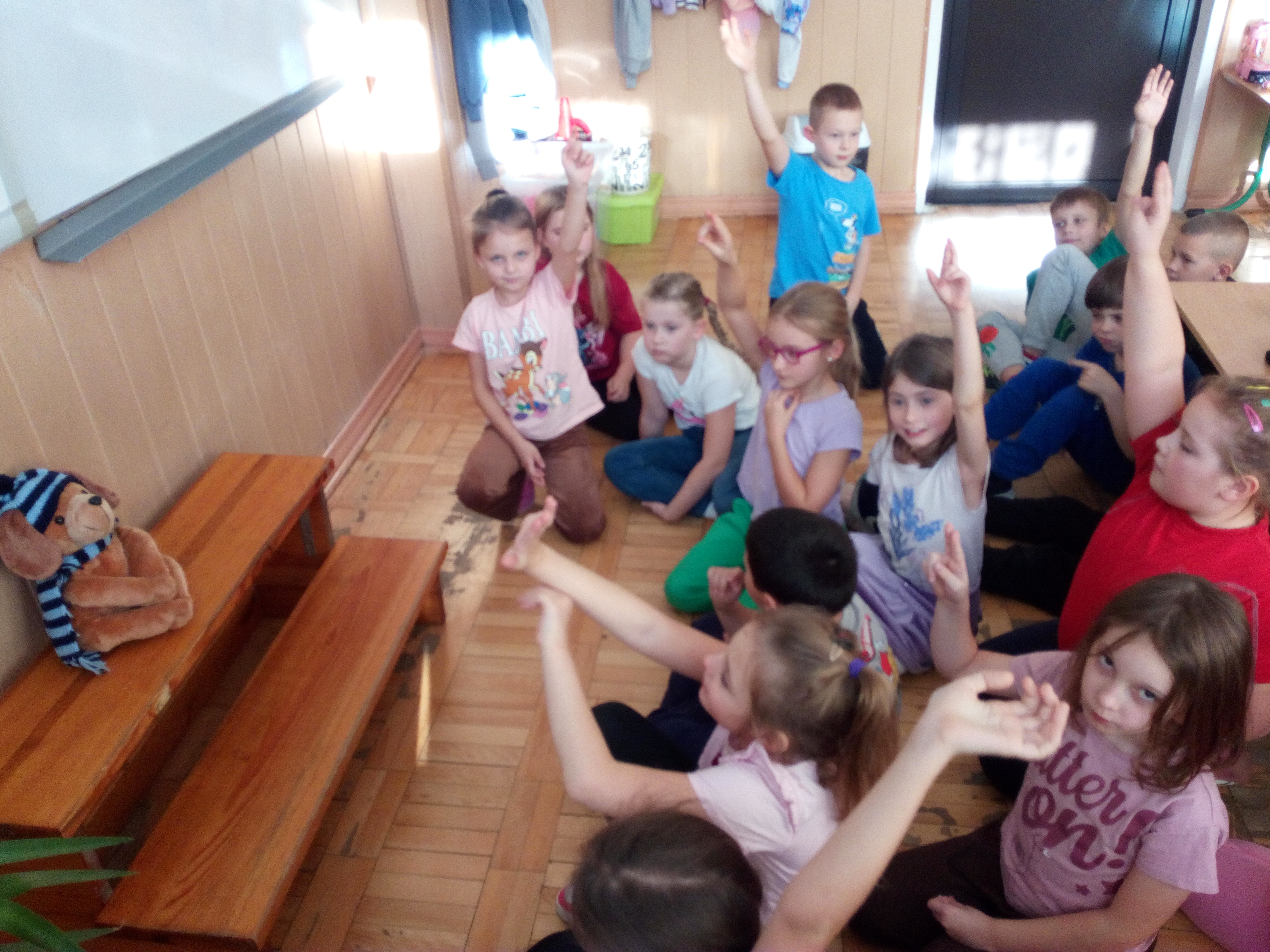 DrugoklasiÅ›ci z zaciekawieniem wysÅ‚uchali bajki „O CiepÅ‚ym i Puchatym”, która staÅ‚a siÄ™ inspiracjÄ… do wielu przemyÅ›leÅ„. Rozmowa o tym, jakie sÅ‚owa i zachowania sÄ… „ciepÅ‚e i puchate”, a jakie „zimne i kolczaste” uÅ›wiadomiÅ‚a wszystkim, że sÅ‚owa, które wypowiadamy do innych mogÄ… sprawić wiele radoÅ›ci, ale również mogÄ… zranić. Swoje umiejÄ™tnoÅ›ci dawania „ciepÅ‚ego i puchatego” ćwiczyliÅ›my, kierujÄ…c odpowiednie sÅ‚owa do pluszowego misia, który czuÅ‚ siÄ™ samotny, zapomniaÅ‚ przyborów szkolnych, pÅ‚akaÅ‚ i miaÅ‚ problemy z wykonaniem ćwiczenia sportowego. DoÅ›wiadczenie to pokazaÅ‚o nam, jak wiele radoÅ›ci i pozytywnych uczuć wywoÅ‚aÅ‚o w nas dawanie „ciepÅ‚ych i puchatych”.