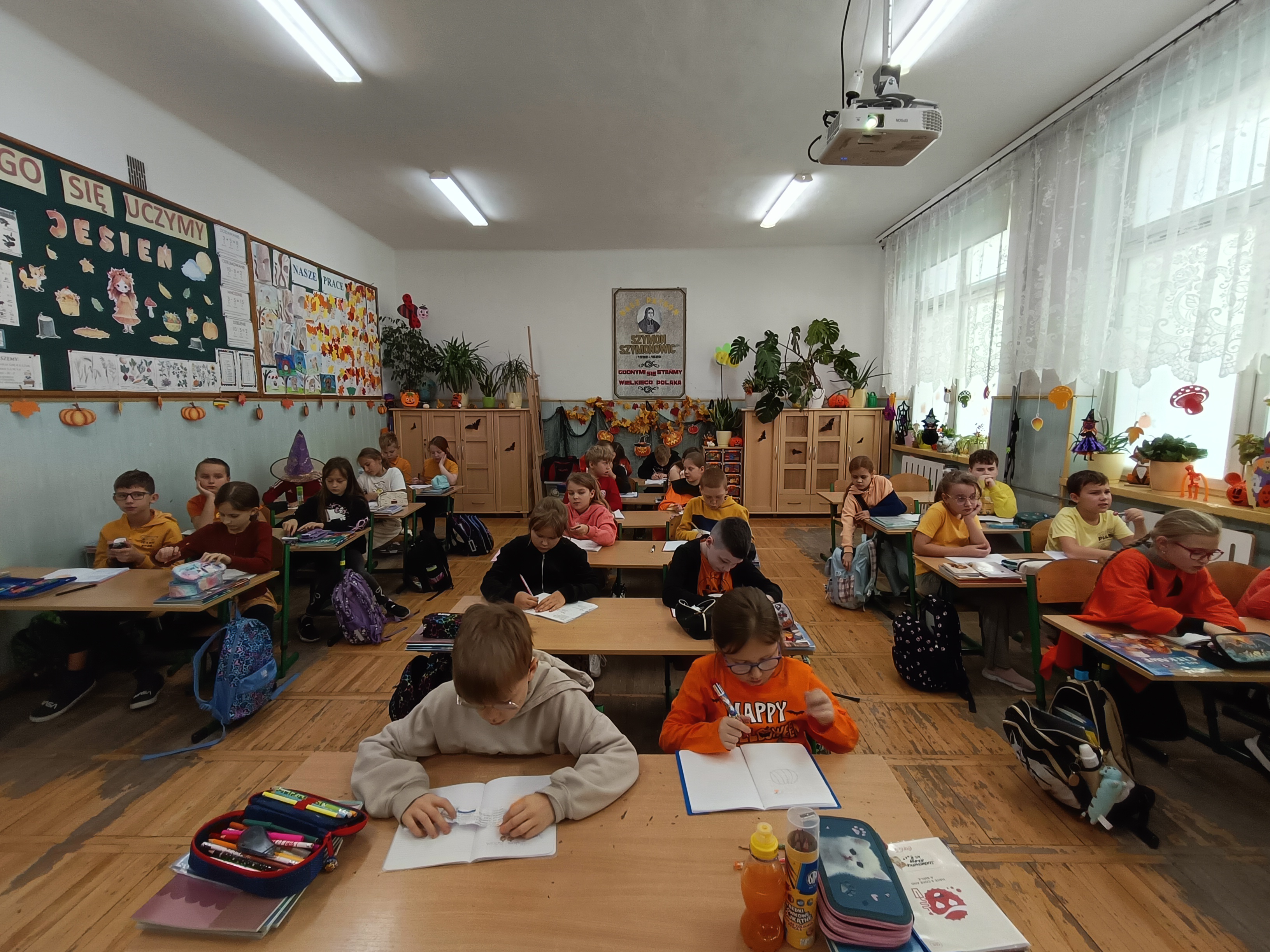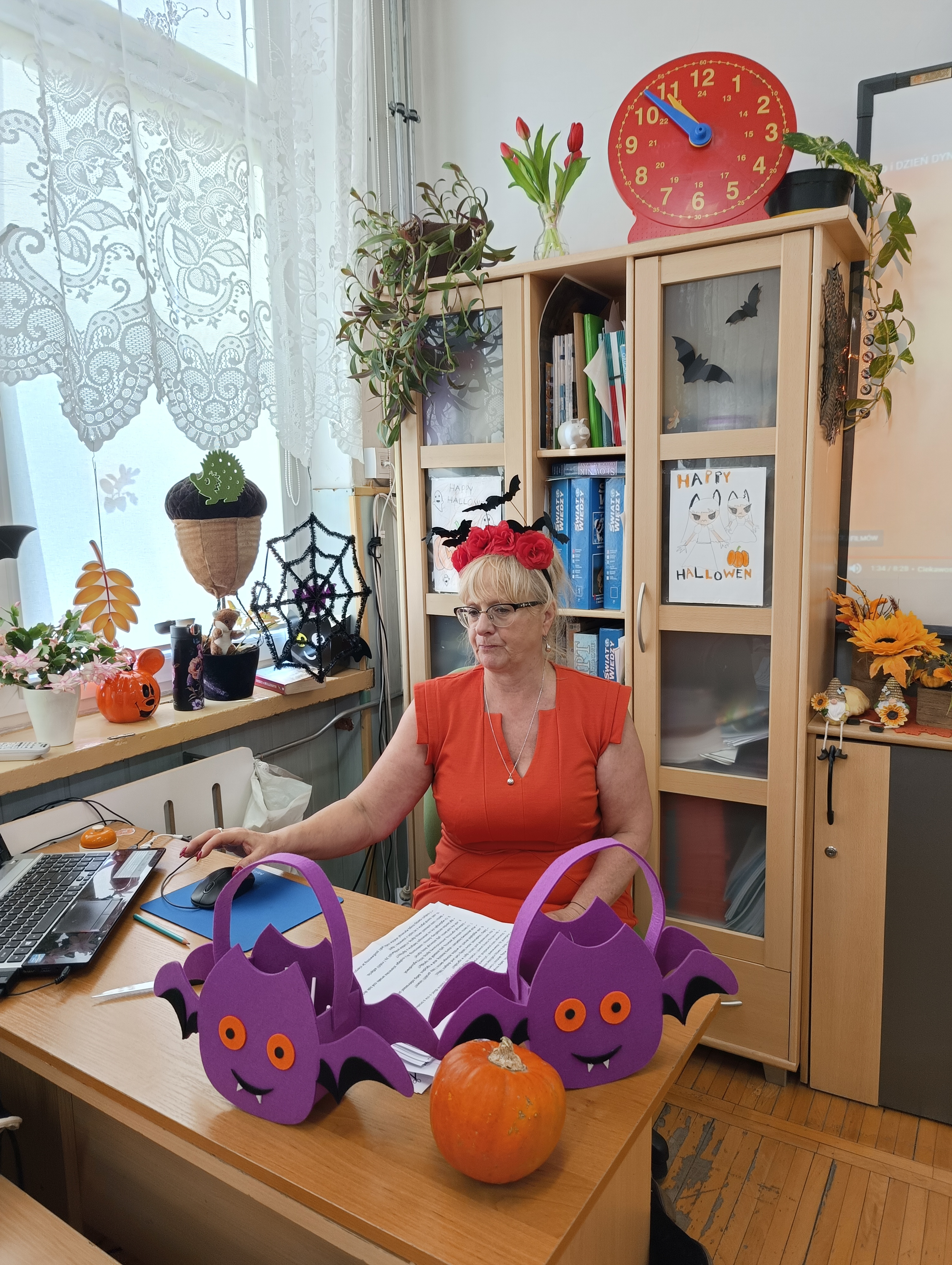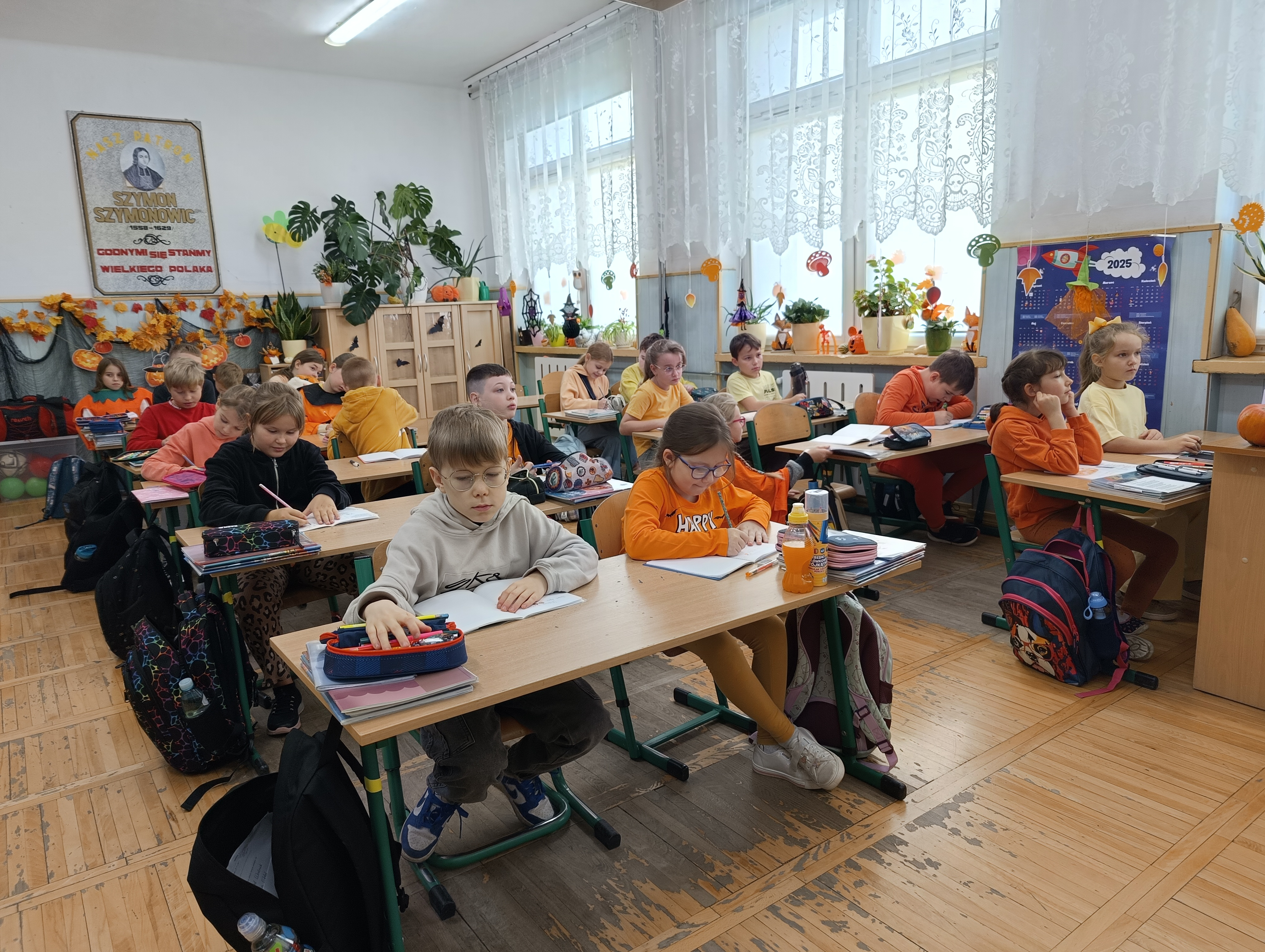Święto Dyni obchodzone jest zazwyczaj 31 października, w dniu powiązanym z Halloween. Jest to czas celebrowania jesiennych warzyw, organizowania zabaw dla dzieci i dorosłych, takich jak np. rzeźbienie w dyniach. Chociaż nie jest to oficjalne święto narodowe, wiele szkół organizuje związane z nim obchody i wydarzenia. Po raz drugi nasza klasa zorganizowała Dzień Dyni. Dzieci i panie ubrały się w kolor pomarańczowy. Na początek Pani podała hasło: „Cukierek albo psikus”. Wybraliśmy oczywiście słodycze i każde z nas dostało po lizaku. Panie przybrały całą klasę w różne śmieszne rzeczy związane z tym świętem. Na zajęciach Pani wyświetliła nam film o dyni o jej rozwoju i tradycjach związanych z tym warzywem. Na zajęciach pani pokazała na przekrój dyni i mogliśmy zobaczyć i skosztować tego warzywa. Wiemy już z tamtego roku ile można zrobić smacznych potraw z dyni. Następnie utrwalaliśmy części mowy opisując dynię i porównując ją do „wielkich zwierząt np. żyrafy. Na koniec na zajęciach technicznych malowaliśmy dynie ze śmiesznymi minami. Powstały dynie złe, groźne i uśmiechnięte. Było przy tym trochę śmiechu i zabawy. Był to udany dzień trochę słodyczy, zabawy i nauki razem!