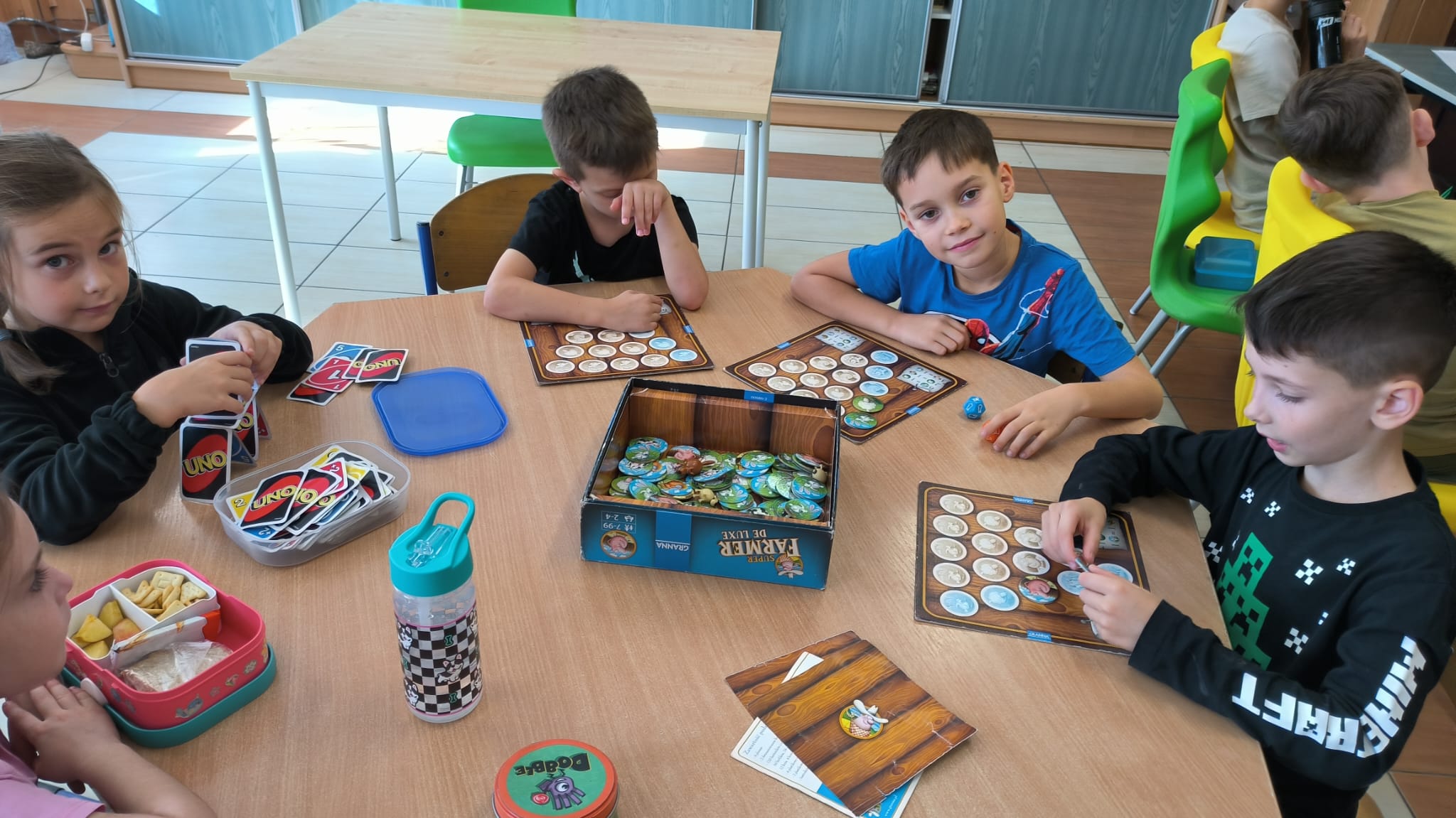 10 października wypada wyjÄ…tkowe Å›wiÄ™to – DzieÅ„ Gier Planszowych, a wiÄ™c coroczne Å›wiÄ™to miÅ‚oÅ›ników planszówek. Z okazji tego dnia w Å›wietlicy szkolnej odbyÅ‚y siÄ™ zajÄ™cia edukacyjne poÅ›wiÄ™cone tej tematyce. Uczniowie w trakcie zajęć Å›wietlicowych wysÅ‚uchali krótkiej pogadanki na temat przeglÄ…du i zasad tworzenia gier planszowych. Grali z rówieÅ›nikami w swoje ulubione planszówki. Ponadto ich zadaniem byÅ‚a praca grupowa, wÅ‚asnorÄ™czne wykonanie gry planszowej. Uczniowie z dużym zaangażowanie i entuzjazmem zabrali siÄ™ do konstruowania gier. Wspólnie z rówieÅ›nikami wybierali temat i fabułę, wykonali ciekawe plansze z zaznaczonÄ… trasÄ… oraz opracowali jasne i proste zasady gry. Na koniec testowali swoje gry. ZajÄ™cia byÅ‚y nie tylko Å›wietnÄ… zabawÄ…, ale też wspaniałą lekcjÄ… integracji, planowania, przewidywania, logicznego myÅ›lenia, zrÄ™cznoÅ›ci, spostrzegawczoÅ›ci, liczenia i zasad fair play.