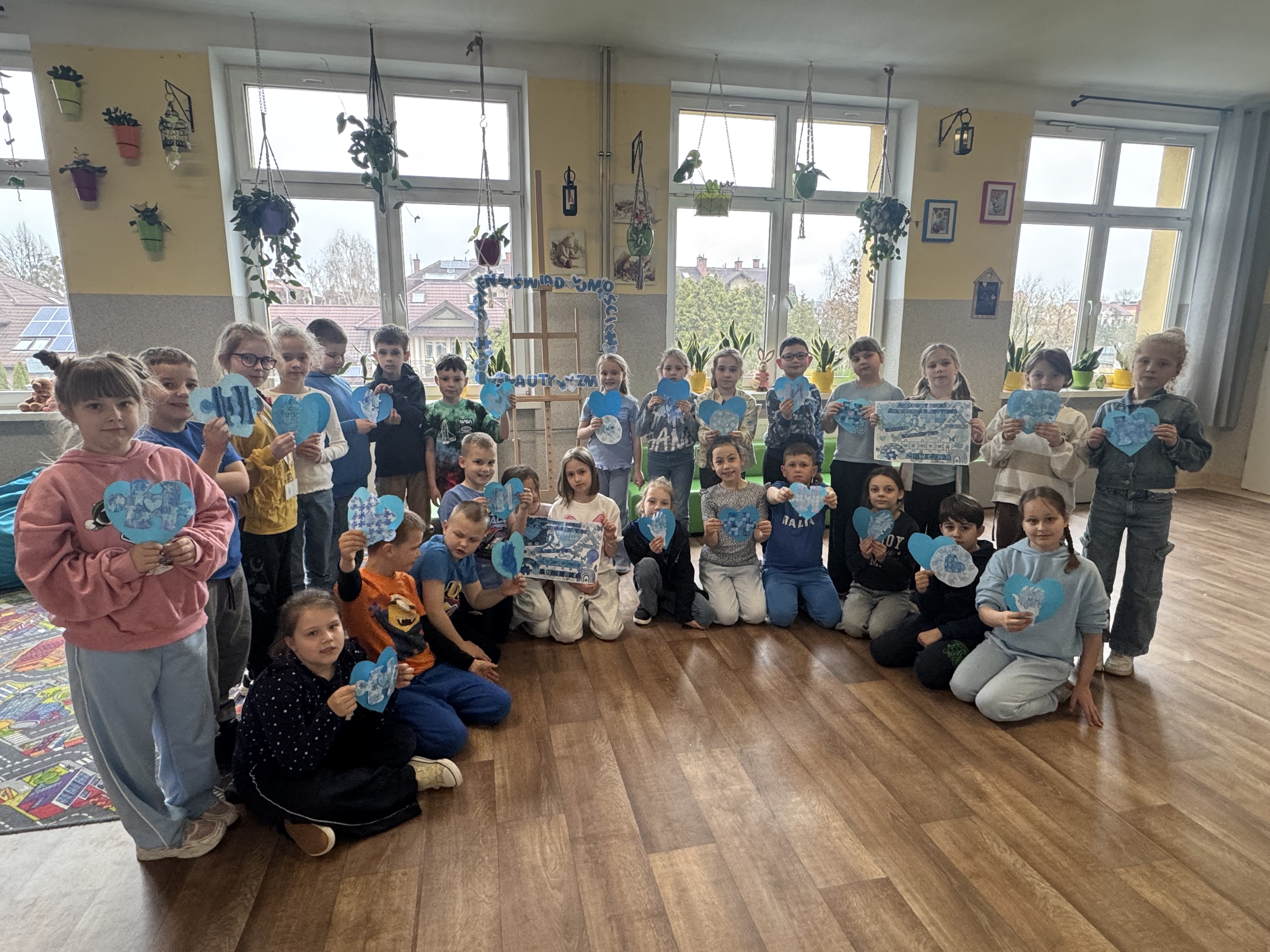 Uczniowie klas 1–3 przyszli ubrani na niebiesko i wzięli udział w kreatywnych aktywnościach: