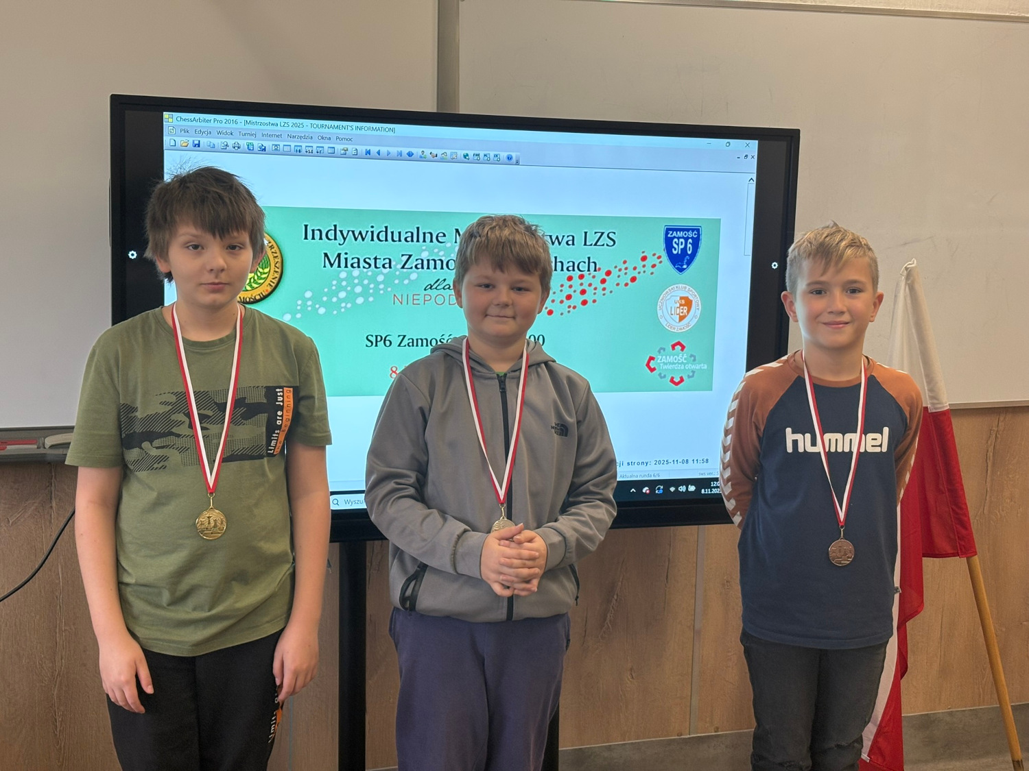 W sobotę 8 listopada 2025 roku w Szkole Podstawowej Nr 6 w Zamościu odbyły się Indywidualne Mistrzostwa Miasta Zamość LZS w Szachach na rok 2025 „DLA NIEPODLEGŁEJ”. 107 rocznicę Odzyskania przez Polskę Niepodległości postanowiło upamiętnić 23 zawodników turnieju szachowego. Naszą szkołę reprezentowało 11 uczniów – Rachwał Antoni (1b), Babiarz Sebastian (2b), Adam Mitura (1b), Unifantowicz Maksymilian (3a), Kmieć Lena (3b), Bosiak Pola (4a), Koluch Wiktor (4a), Tchórz Oliwier (4a), Hołys Zenon (6b), Kovryzhyn Illia (8b), Sniharov Mykyta (8b).