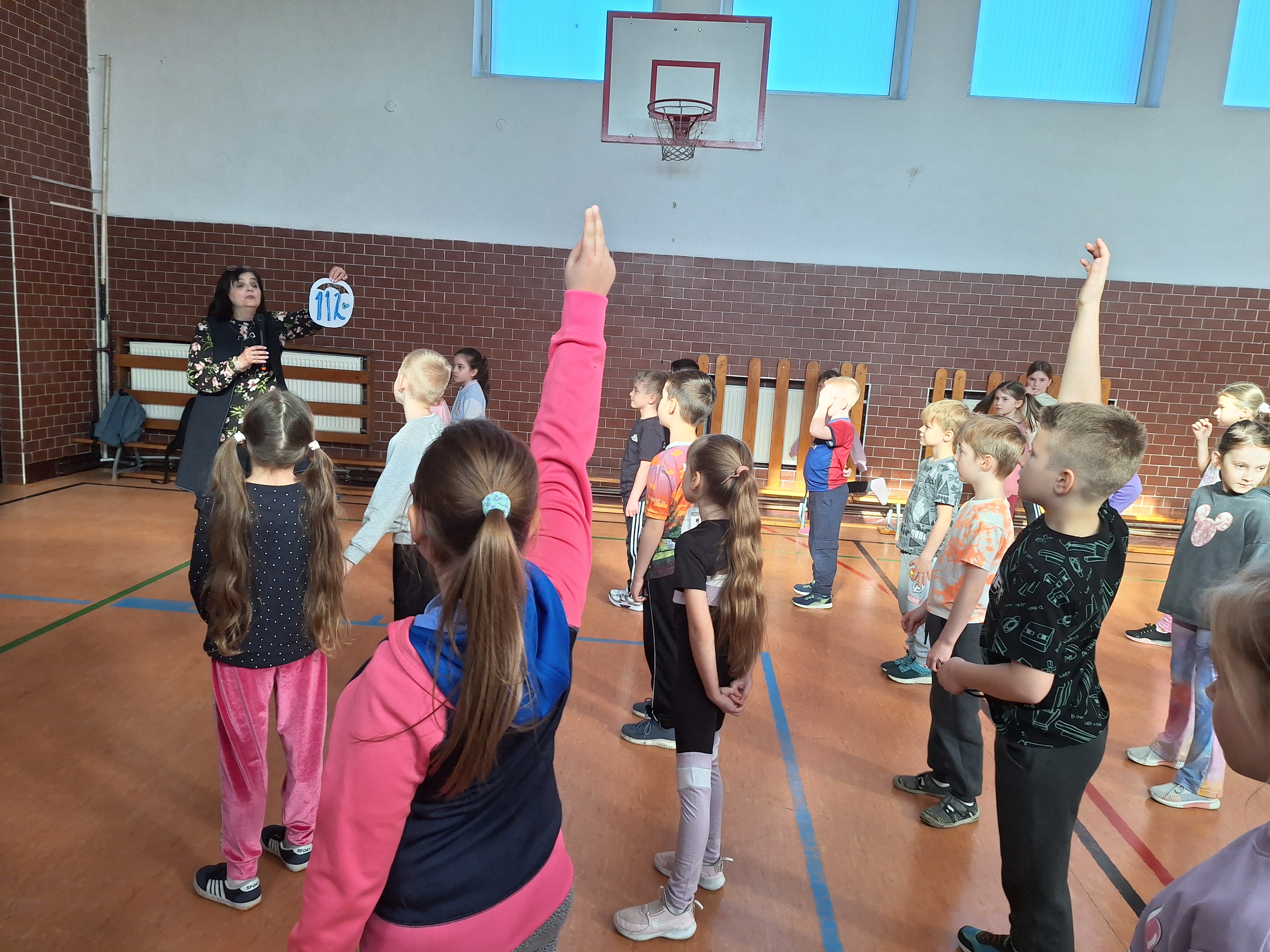 Myślą przewodnią była integracja klas młodszych i starszych podczas wspólnej zabawy oraz bezpieczeństwo, które powinno być podstawą każdych zabaw ruchowych. Przy okazji tego spotkania uczniowie przypomnieli ważność numeru 112 do służb ratowniczych, eksponując go na planszach kolorowanek.