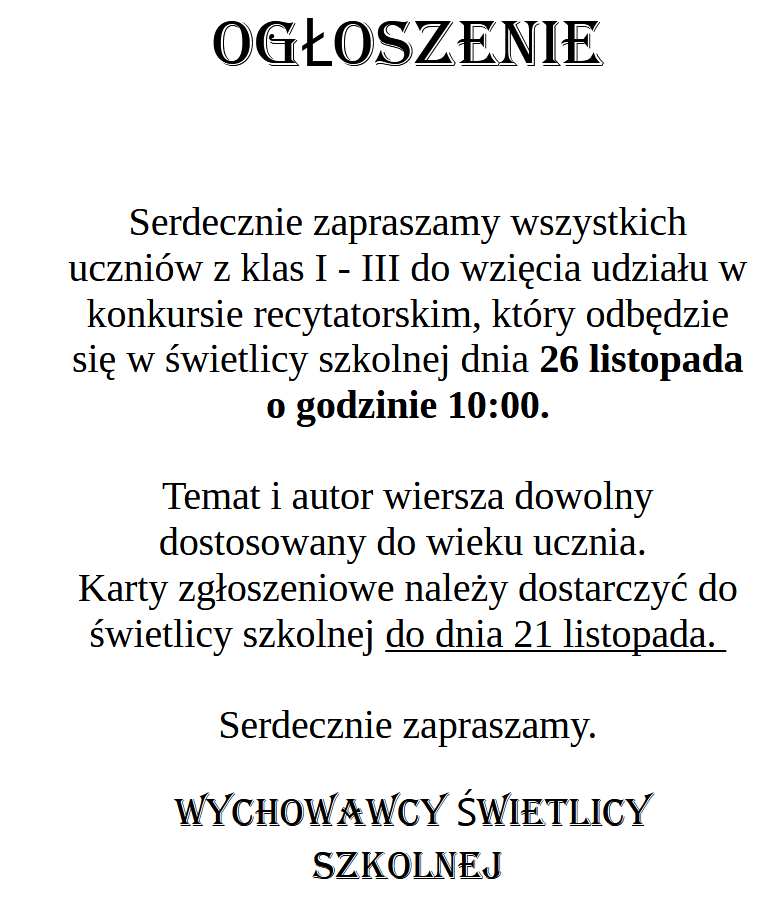 Konkurs recytatorski !!