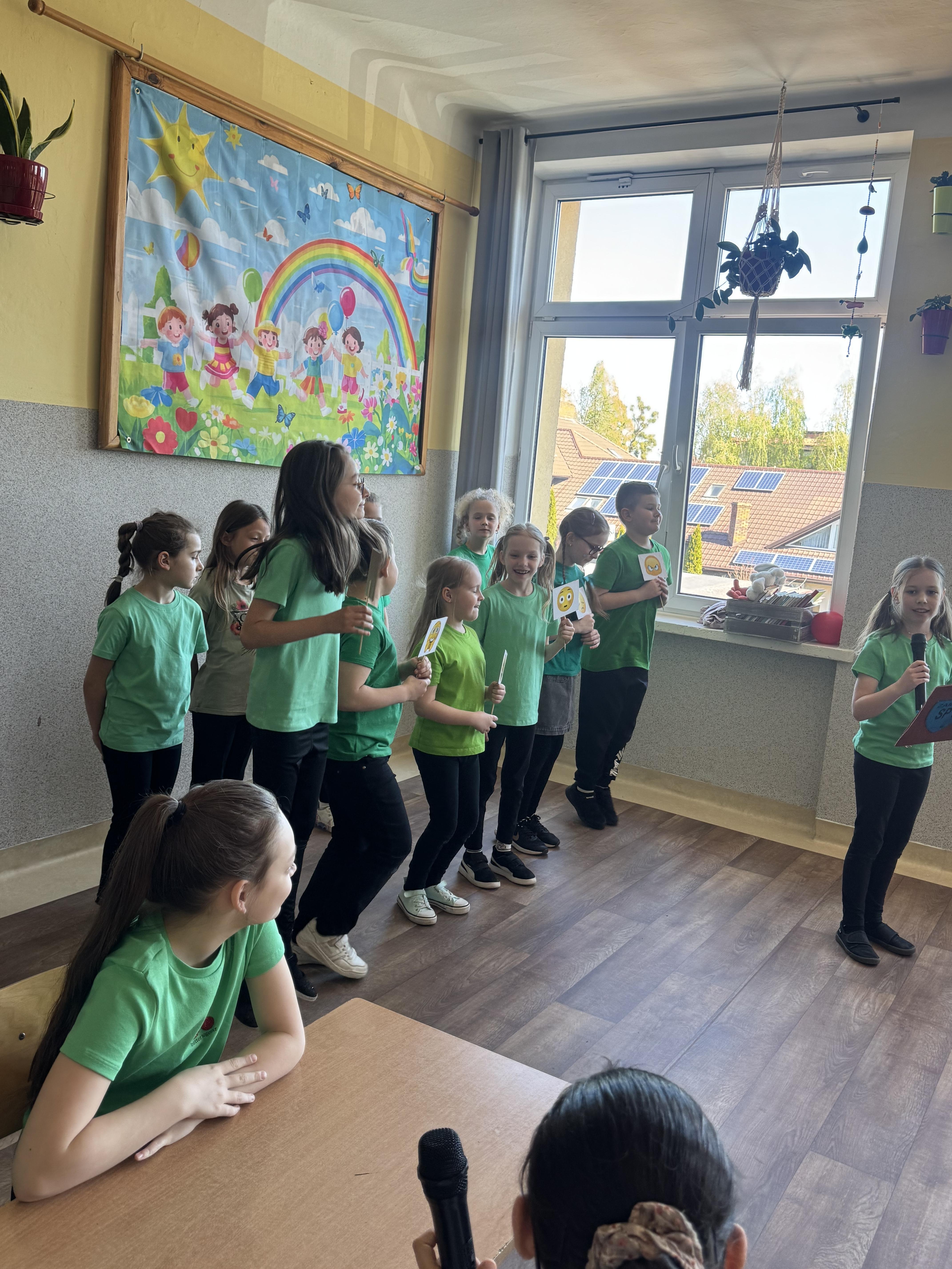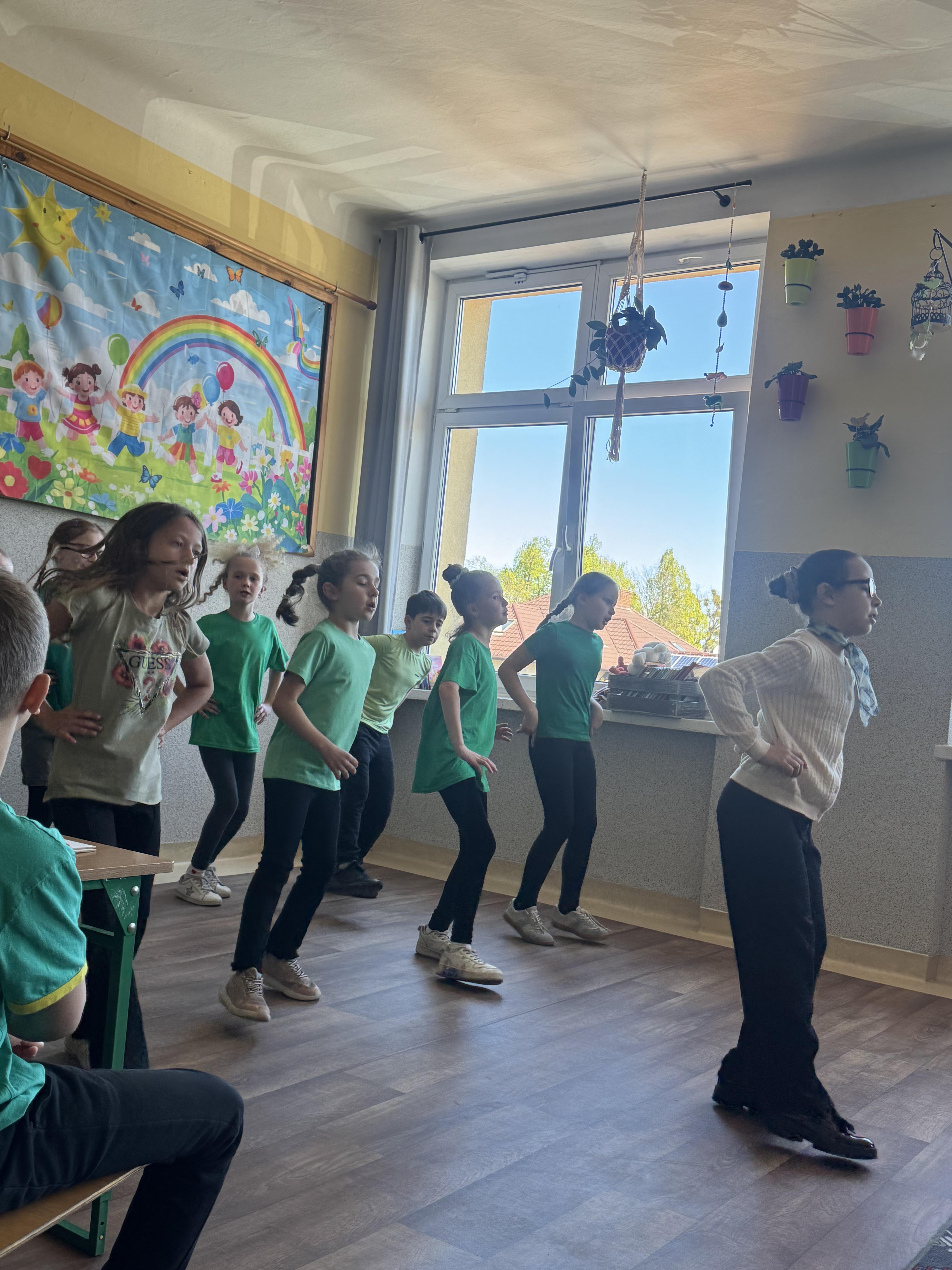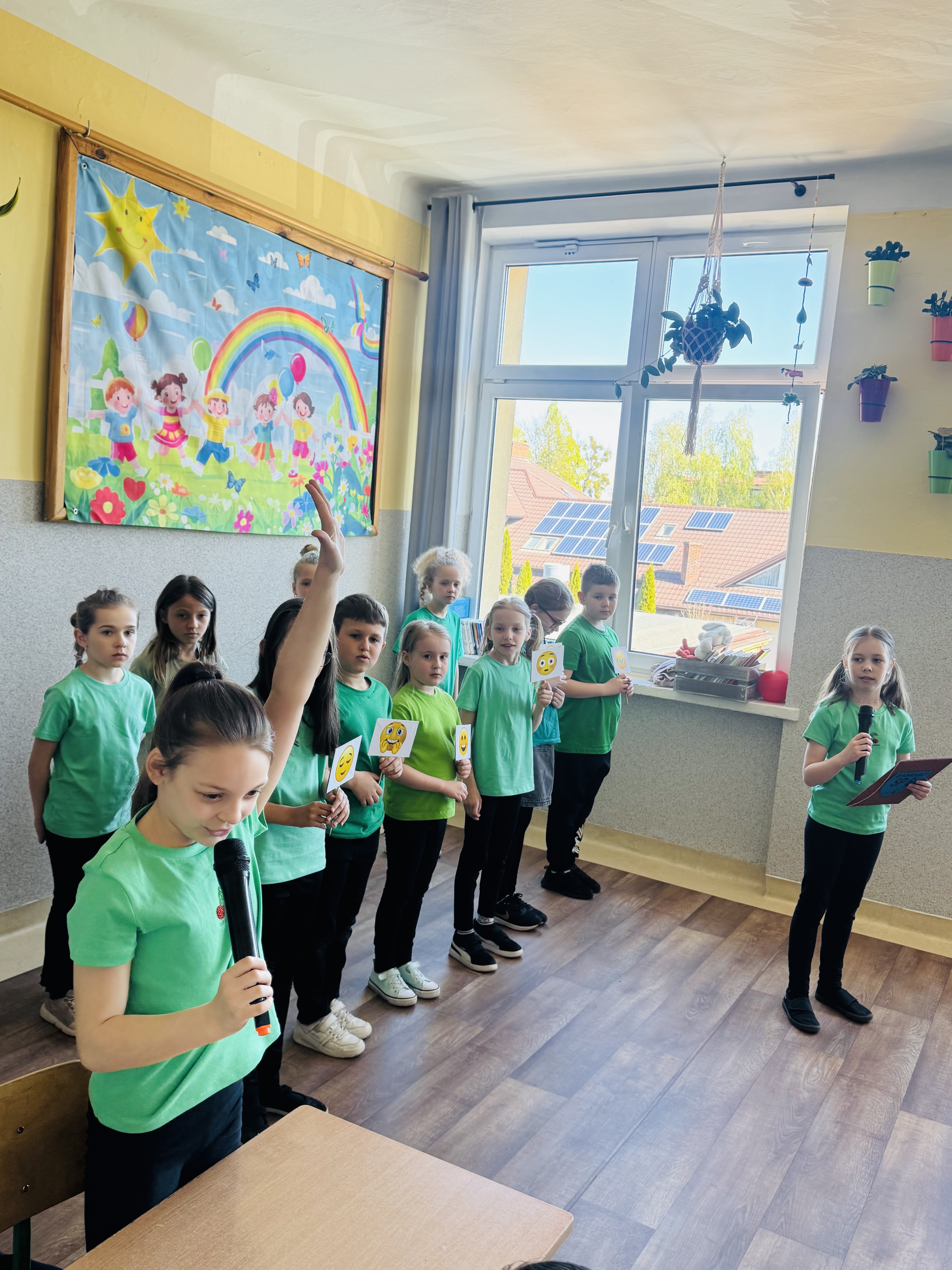 Dnia 27 kwietnia odbyło się przedstawienie pt. „Moje emocje” w ramach innowacji pedagogicznej, przygotowane przez Panie Katarzynę Hanulak oraz Małgorzatę Czajkowską. Występ został przygotowany przez klasę II B. Uczniowie zaprezentowali, jakie emocje towarzyszą nam w codziennym życiu – takie jak radość, smutek czy złość. Poprzez ruch, gest i mimikę w ciekawy sposób ukazali, czym są emocje oraz jak można je wyrażać. Program artystyczny wzbogacił również taniec przedstawiający różnorodność uczuć.