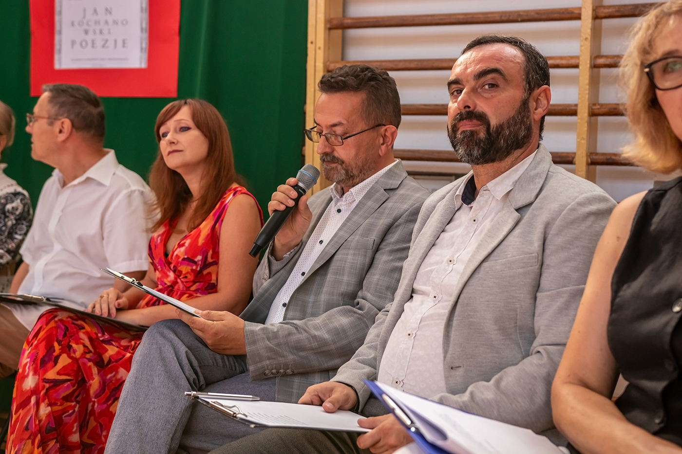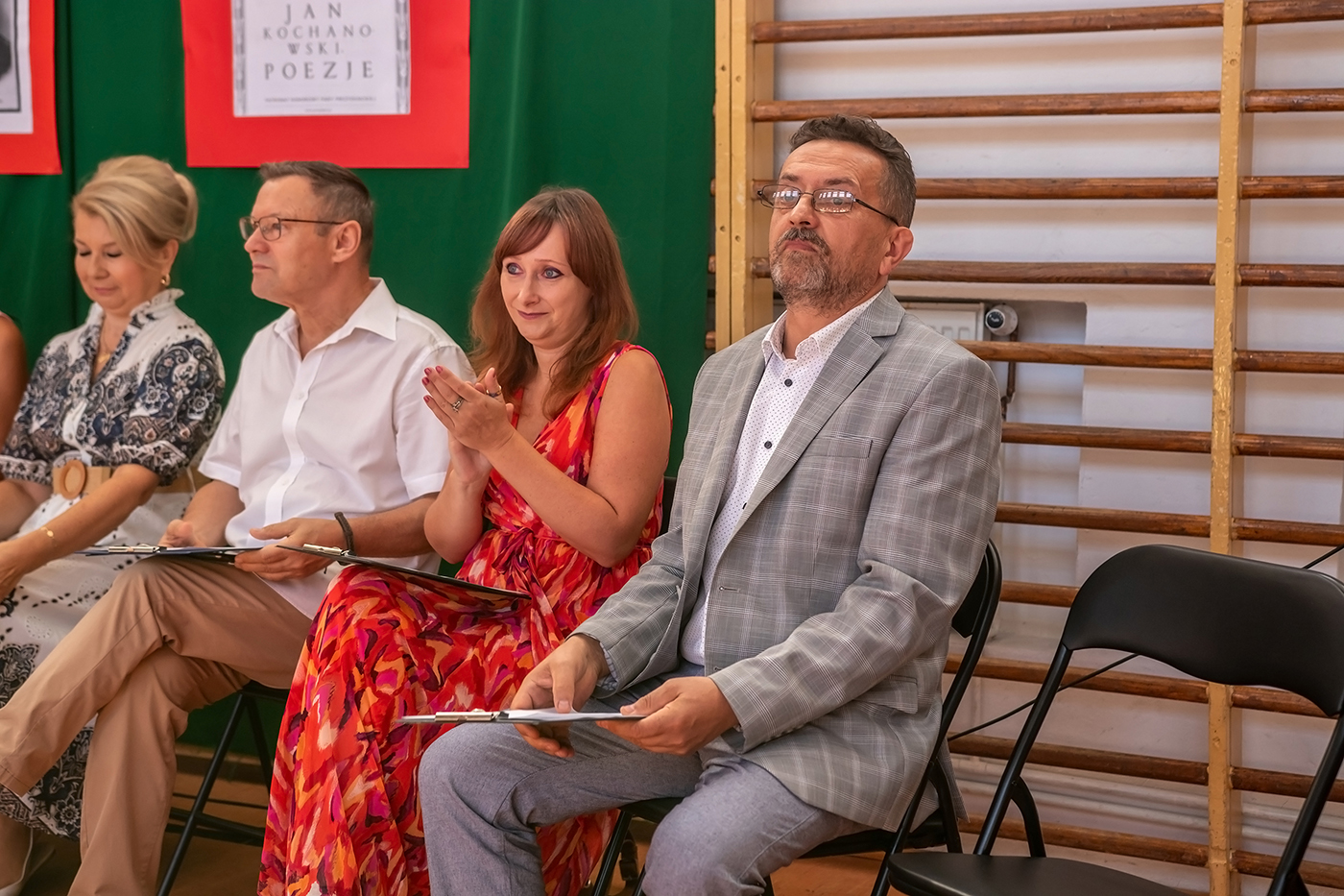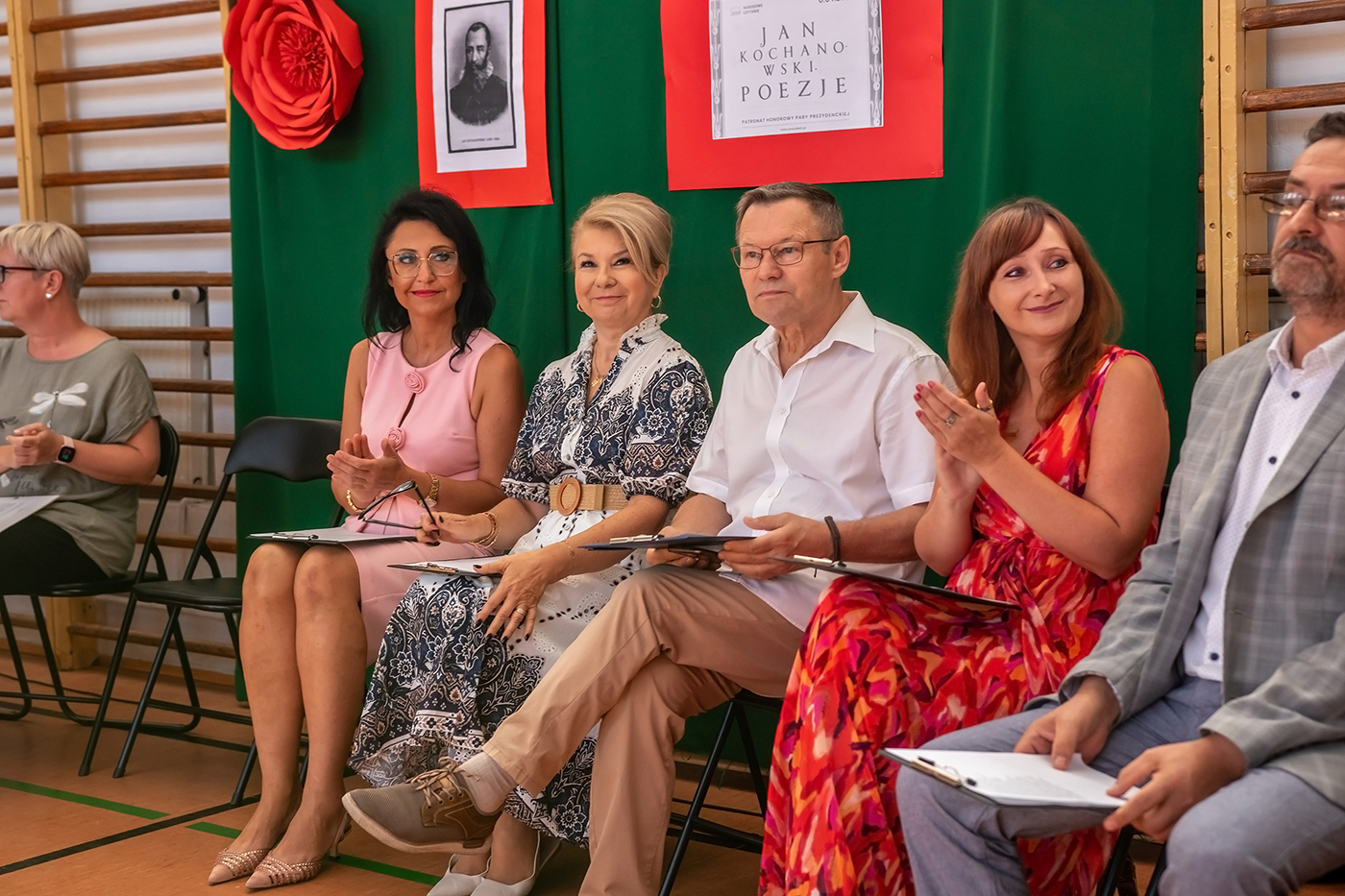 Na poczÄ…tku uroczystoÅ›ci dyrektor szkoÅ‚y, pan Sebastian Plewa, serdecznie powitaÅ‚ zaproszonych goÅ›ci: paniÄ… MonikÄ™ Å»ur, dyrektor WydziaÅ‚u OÅ›wiaty w ZamoÅ›ciu, pana Tadeusza SaÅ‚amachÄ™, zastÄ™pcÄ™ dyrektora Delegatury Kuratorium OÅ›wiaty w ZamoÅ›ciu, paniÄ… AleksandrÄ™ Baranowicz, dyrektor Przedszkola nr 7 w ZamoÅ›ciu, paniÄ… MagdalenÄ™ WirskÄ…, przewodniczÄ…cÄ… Rady Rodziców naszej szkoÅ‚y, pana Waldemara LeszczyÅ„skiego, dyrektora Bursy MiÄ™dzyszkolnej nr 2 w ZamoÅ›ciu , nauczycieli, uczniów oraz całą spoÅ‚eczność szkolnÄ…. Podczas uroczystoÅ›ci fragmenty poezji Jana Kochanowskiego – fraszki, pieÅ›ni oraz treny – czytali zarówno nauczyciele i uczniowie szkoÅ‚y, jak i zaproszeni goÅ›cie.