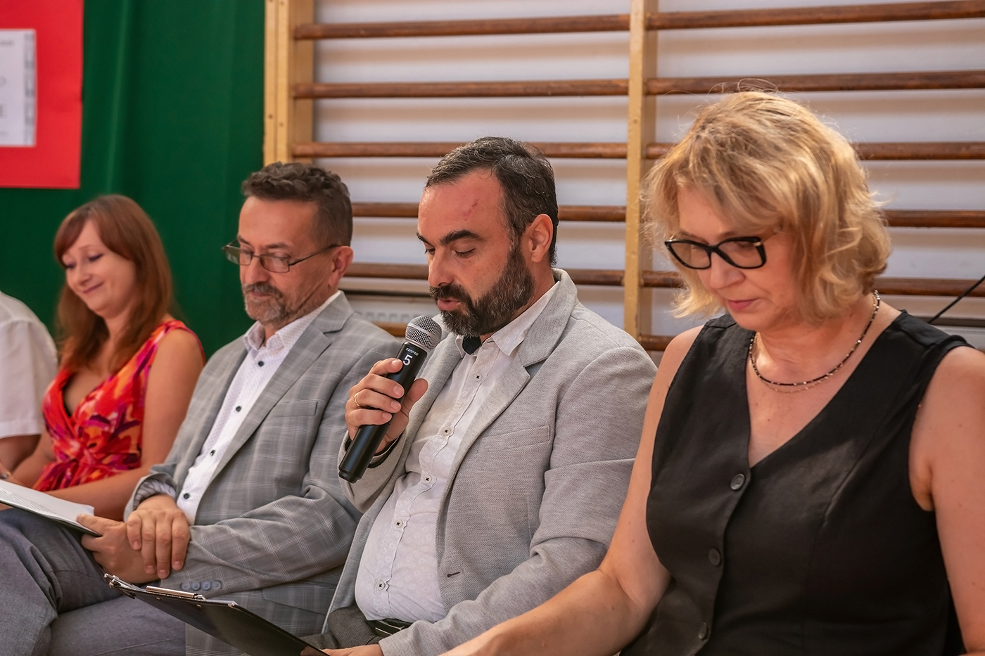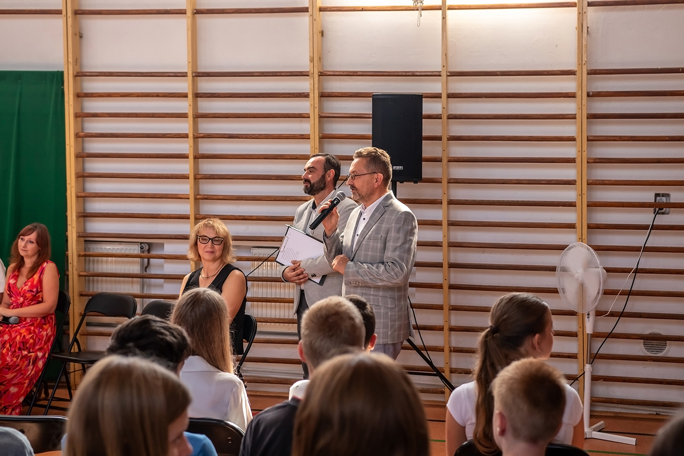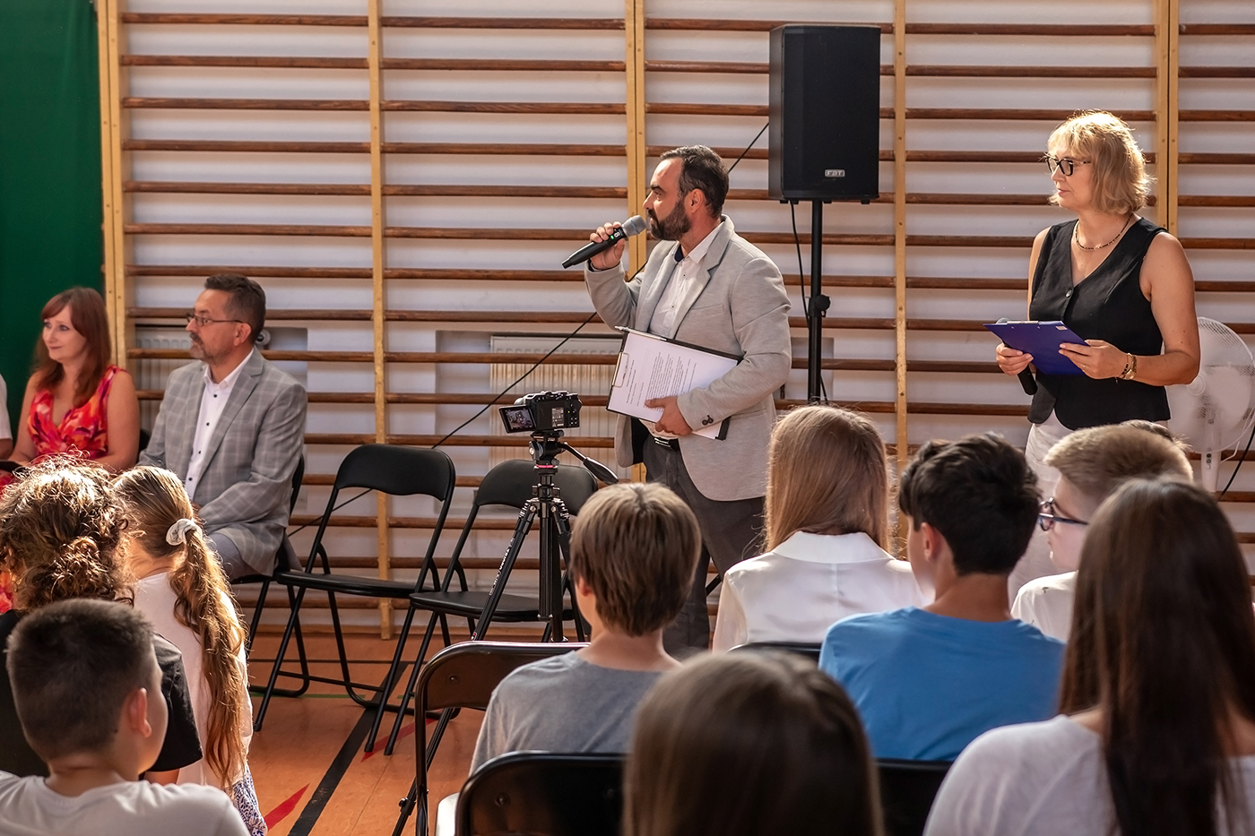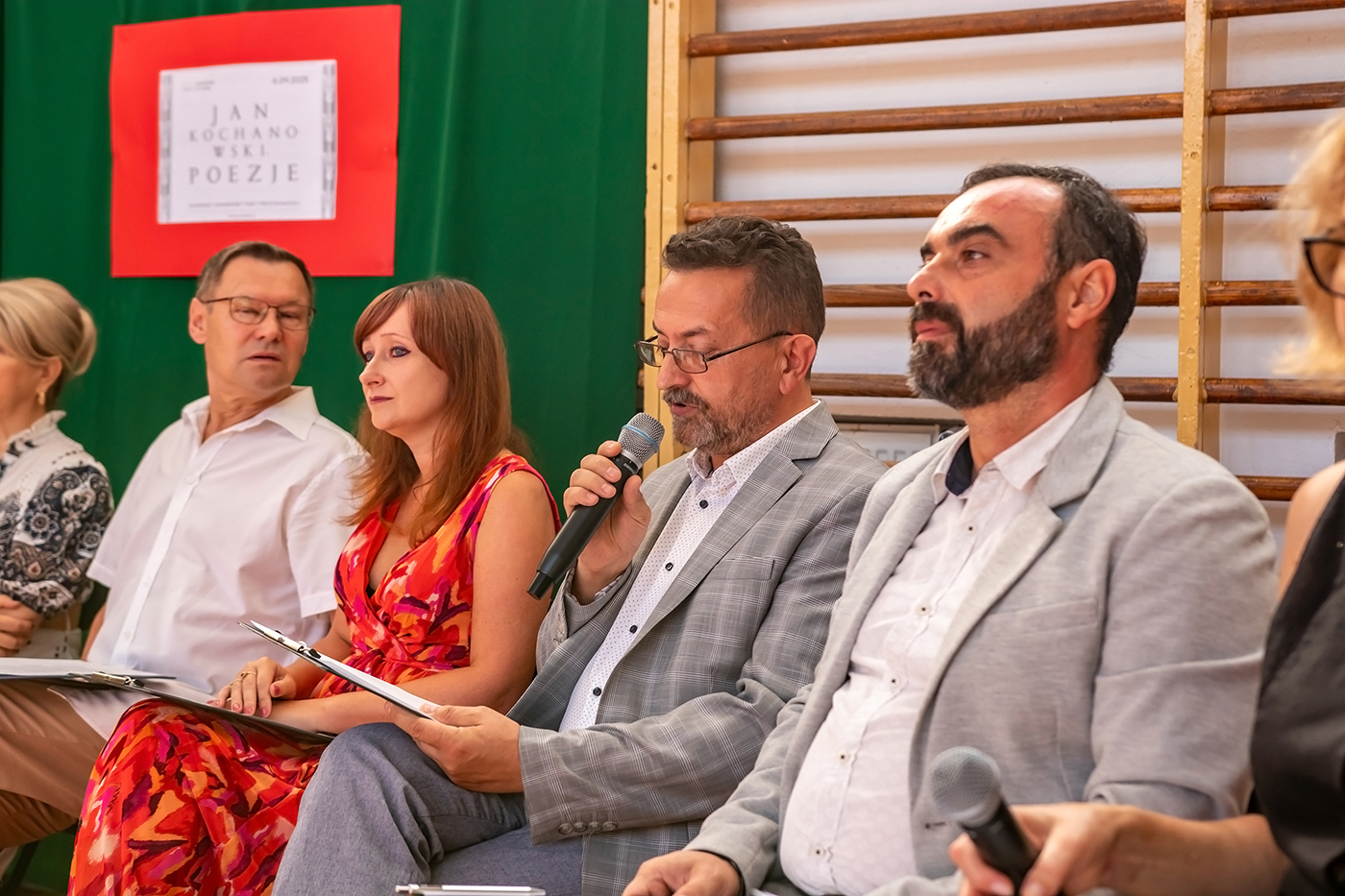 Na poczÄ…tku uroczystoÅ›ci dyrektor szkoÅ‚y, pan Sebastian Plewa, serdecznie powitaÅ‚ zaproszonych goÅ›ci: paniÄ… MonikÄ™ Å»ur, dyrektor WydziaÅ‚u OÅ›wiaty w ZamoÅ›ciu, pana Tadeusza SaÅ‚amachÄ™, zastÄ™pcÄ™ dyrektora Delegatury Kuratorium OÅ›wiaty w ZamoÅ›ciu, paniÄ… AleksandrÄ™ Baranowicz, dyrektor Przedszkola nr 7 w ZamoÅ›ciu, paniÄ… MagdalenÄ™ WirskÄ…, przewodniczÄ…cÄ… Rady Rodziców naszej szkoÅ‚y, pana Waldemara LeszczyÅ„skiego, dyrektora Bursy MiÄ™dzyszkolnej nr 2 w ZamoÅ›ciu , nauczycieli, uczniów oraz całą spoÅ‚eczność szkolnÄ…. Podczas uroczystoÅ›ci fragmenty poezji Jana Kochanowskiego – fraszki, pieÅ›ni oraz treny – czytali zarówno nauczyciele i uczniowie szkoÅ‚y, jak i zaproszeni goÅ›cie.