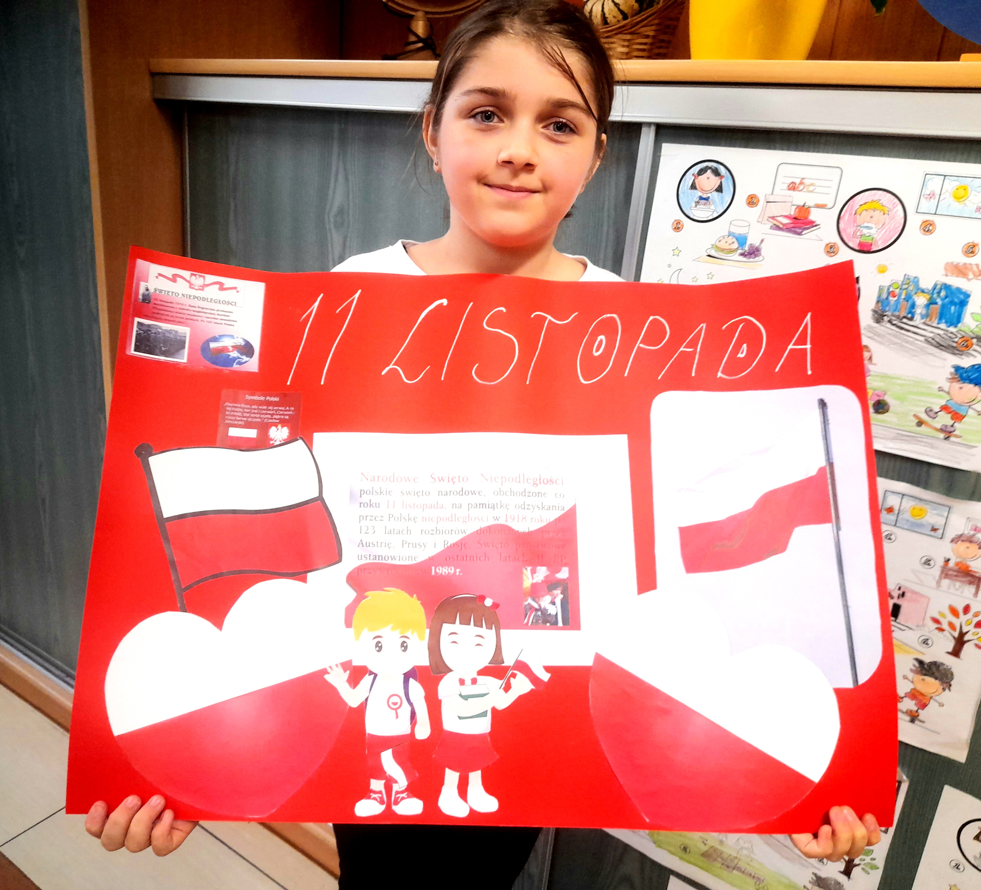 Powstały piękne prace plastyczne przedstawiające symbole narodowe, lapbooki tematyczne oraz plakat.