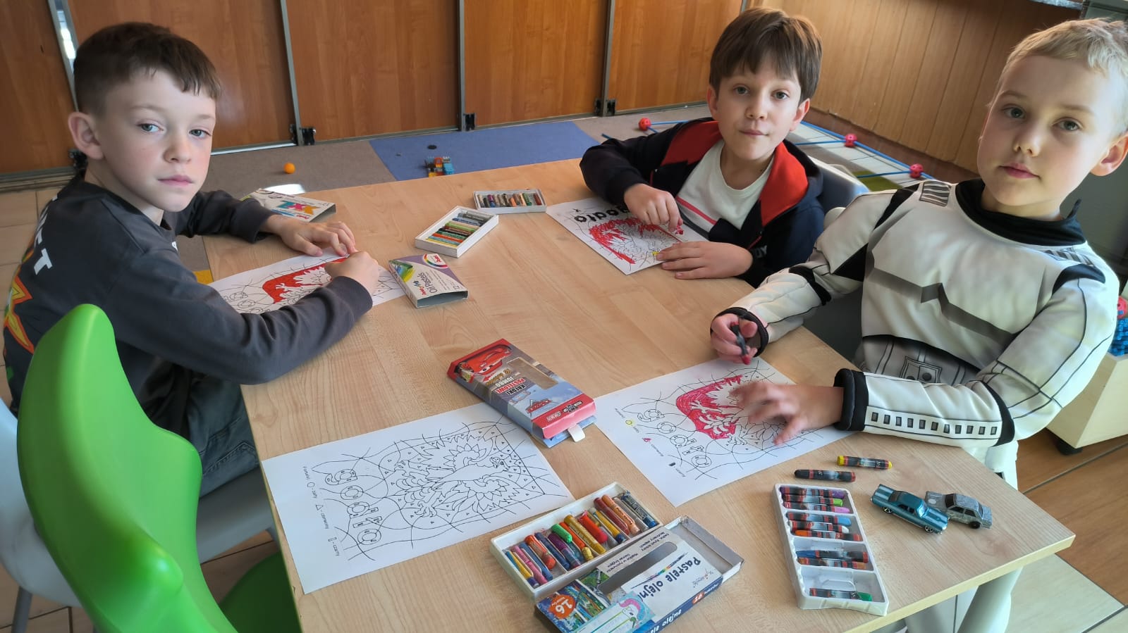 Uczniowie z wielkim zaangażowaniem i dumą prezentowali swoje prace, które ozdobiły naszą świetlicę szkolną, tworząc wyjątkową, patriotyczną atmosferę.