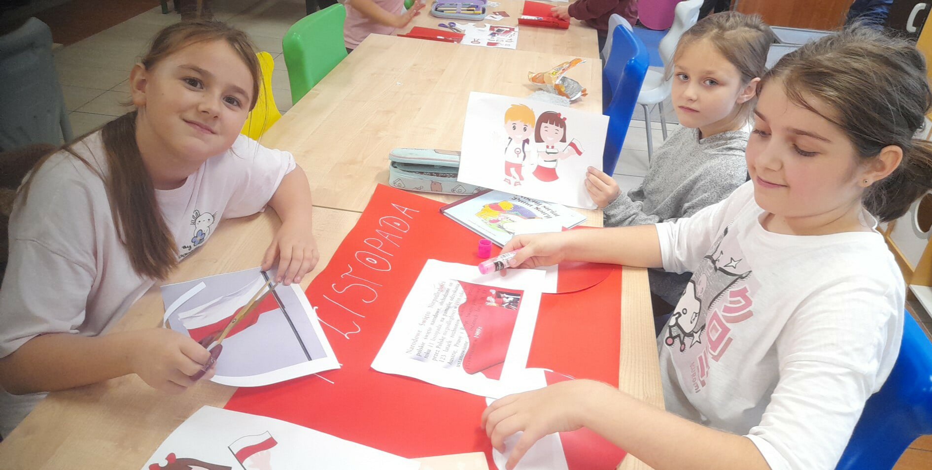 W naszej świetlicy szkolnej obchodziliśmy Narodowe Święto Niepodległości – wyjątkowy czas refleksji i rozmów o historii naszego kraju. Podczas zajęć odbyła się pogadanka na temat odzyskania przez Polskę niepodległości oraz znaczenia symboli narodowych – flagi, godła i hymnu. Uczniowie dowiedzieli się, dlaczego są one tak ważne dla każdego Polaka i jak przypominają nam o miłości do Ojczyzny.