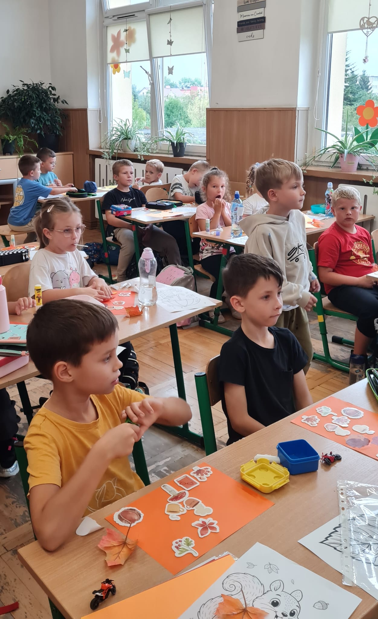 23 wrzeÅ›nia w naszej Å›wietlicy powitaliÅ›my pierwszy dzieÅ„ jesieni – porÄ™ roku peÅ‚nÄ… kolorów. Z tej okazji rozmawialiÅ›my o zmianach zachodzÄ…cych w przyrodzie – opadajÄ…cych liÅ›ciach, dojrzewajÄ…cych owocach, kasztanach, żołędziach i coraz chÅ‚odniejszych dniach. Uczniowie z dużym zaangażowaniem wykonali prace plastyczne inspirowane jesieniÄ…. W Å›wietlicy zrobiÅ‚o siÄ™ kolorowo, a każda praca pokazaÅ‚a, jak różnorodne i kreatywne mogÄ… być pomysÅ‚y naszych uczniów.