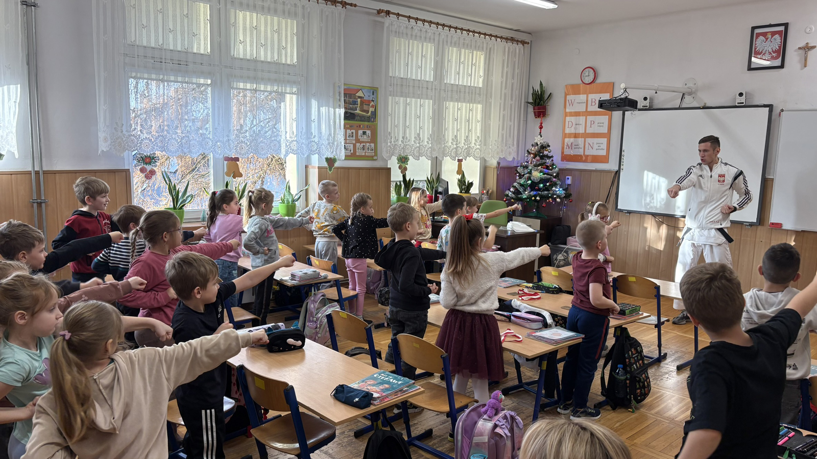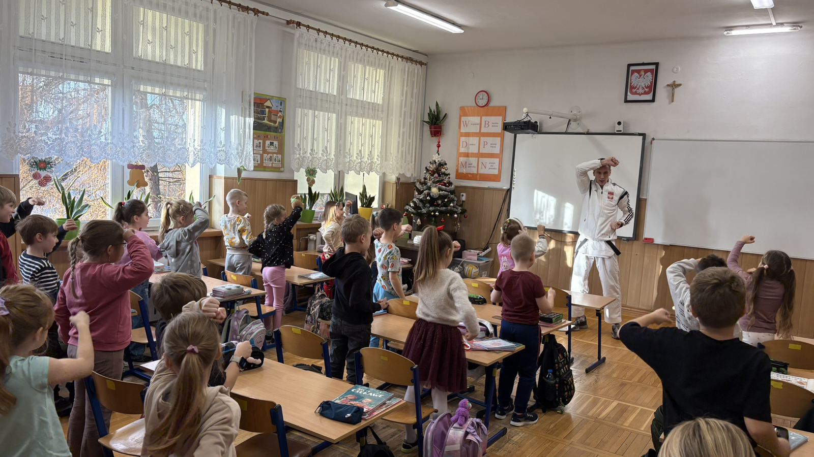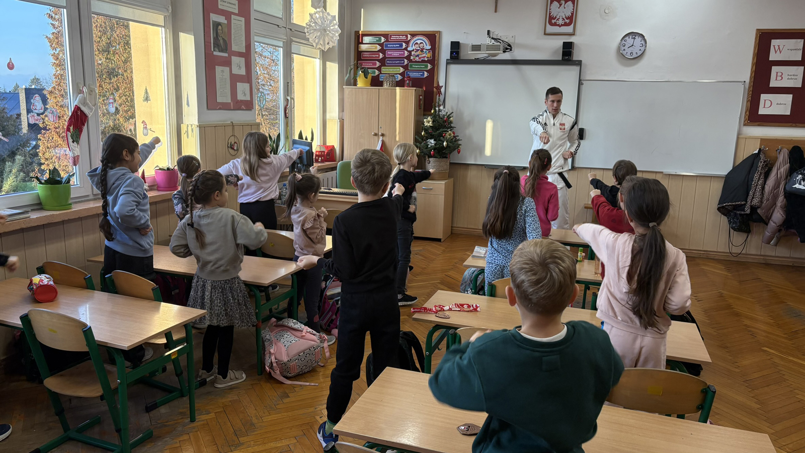 Przedświąteczny tydzień grudnia to podsumowanie Ogólnopolskiego Programu „Mały Mistrz” w naszej szkole. W dniach 15-17 grudnia 2025 roku odbyły się spotkania z „mistrzem” oraz impreza sportowo-rekreacyjna.