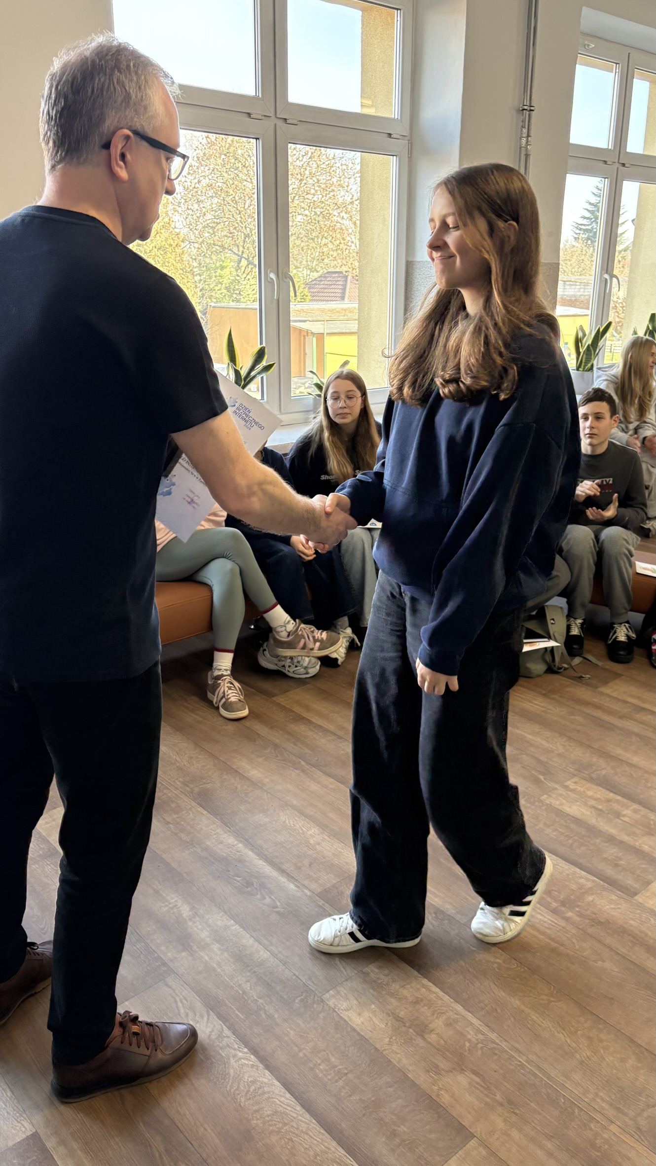 W czwartek 5 marca 2026 roku odbyło się uroczyste podsumowanie szkolnych i międzynarodowych inicjatyw informatycznych, które w ostatnich tygodniach angażowały naszą społeczność uczniowską. Centralnym punktem uroczystości było rozstrzygnięcie Szkolnego Konkursu Informatycznego, zorganizowanego z okazji Dnia Bezpiecznego Internetu.