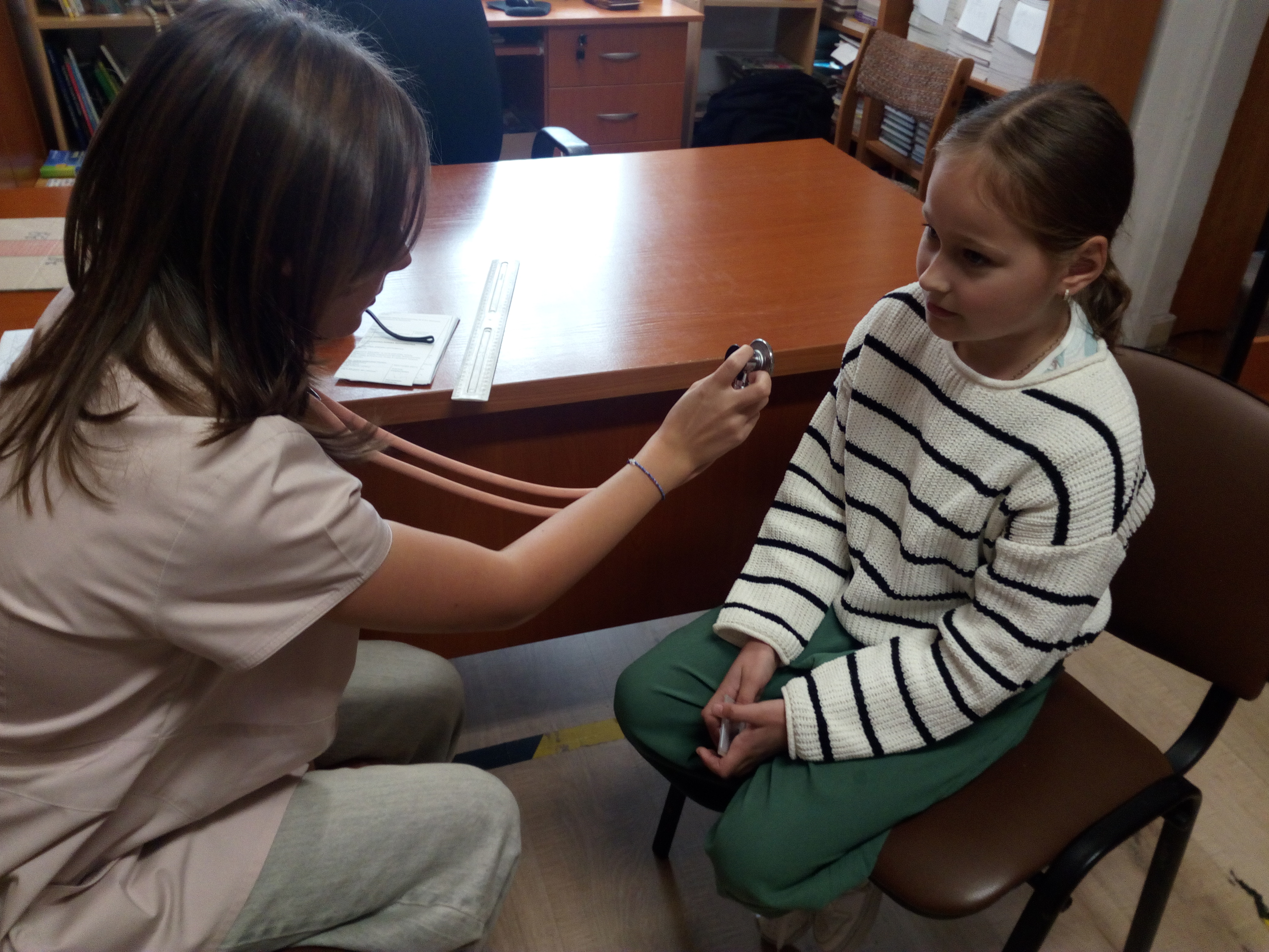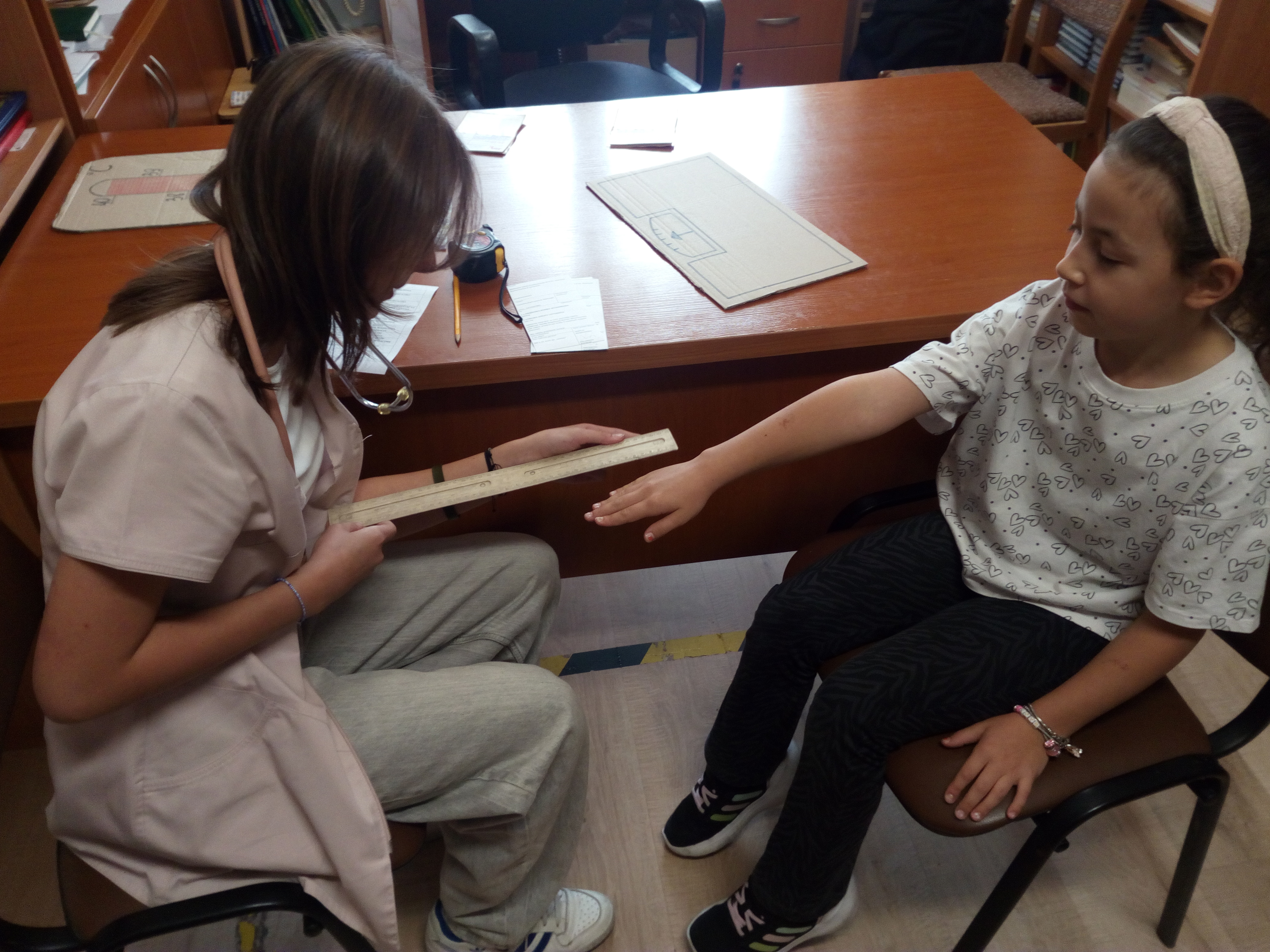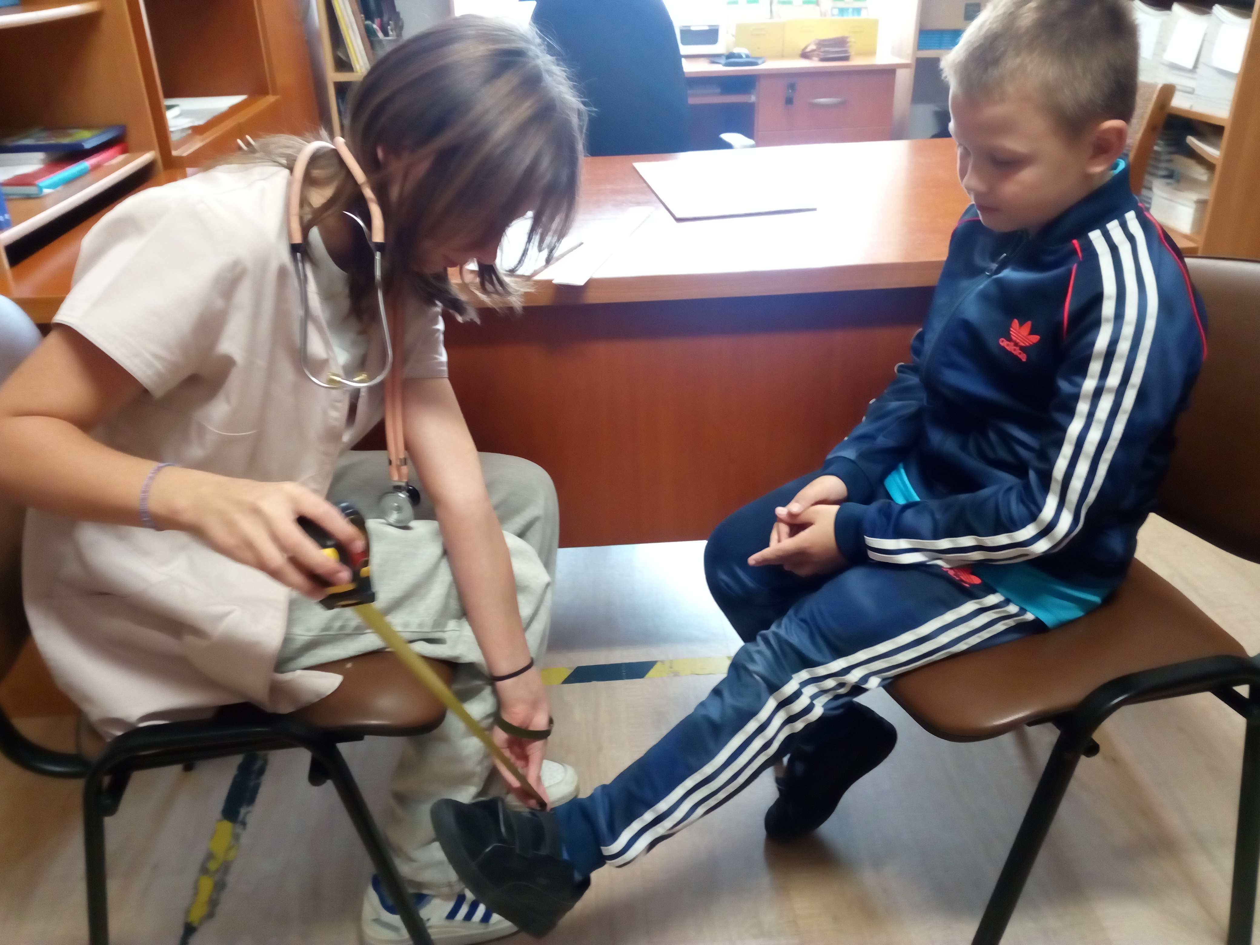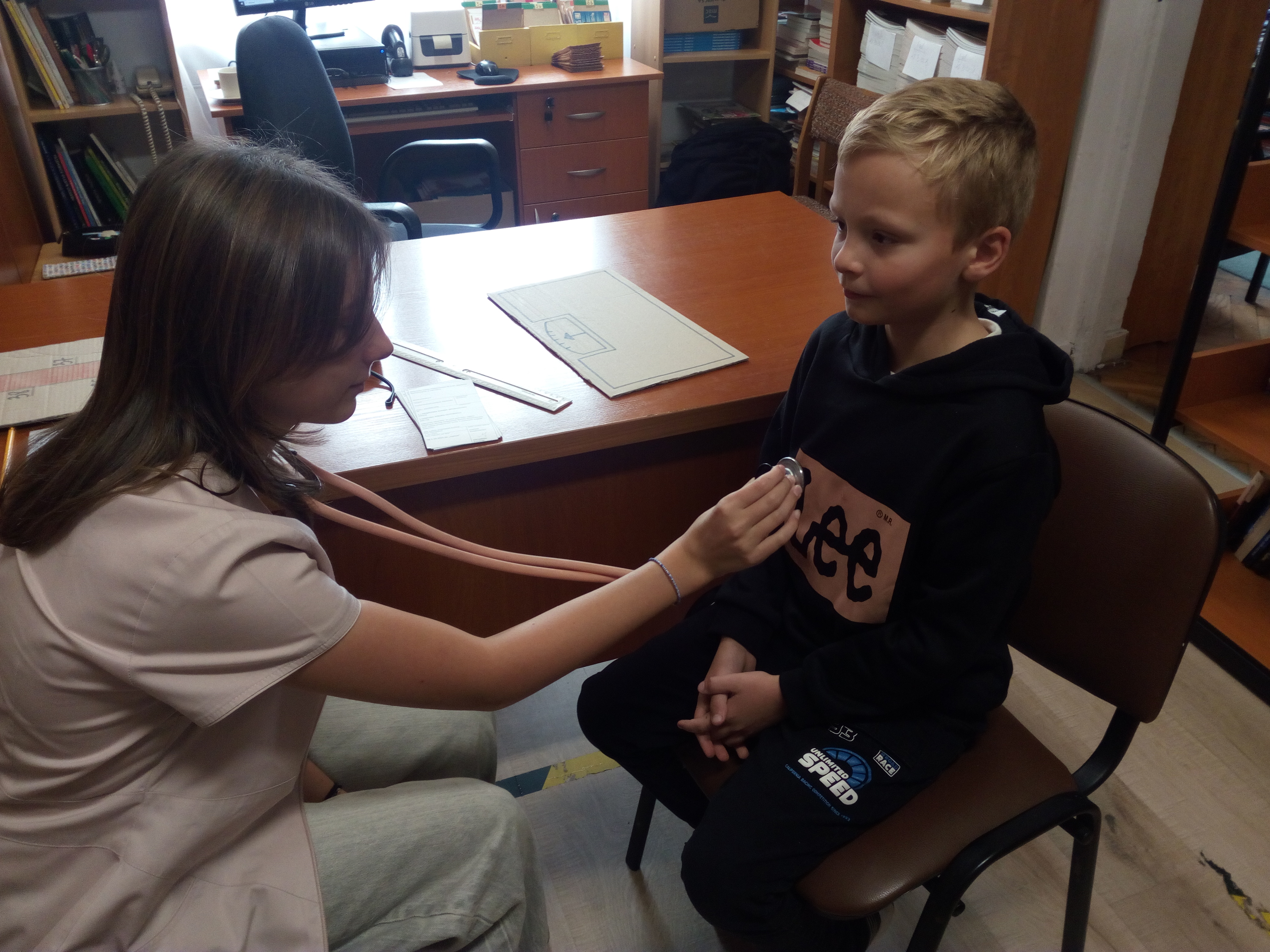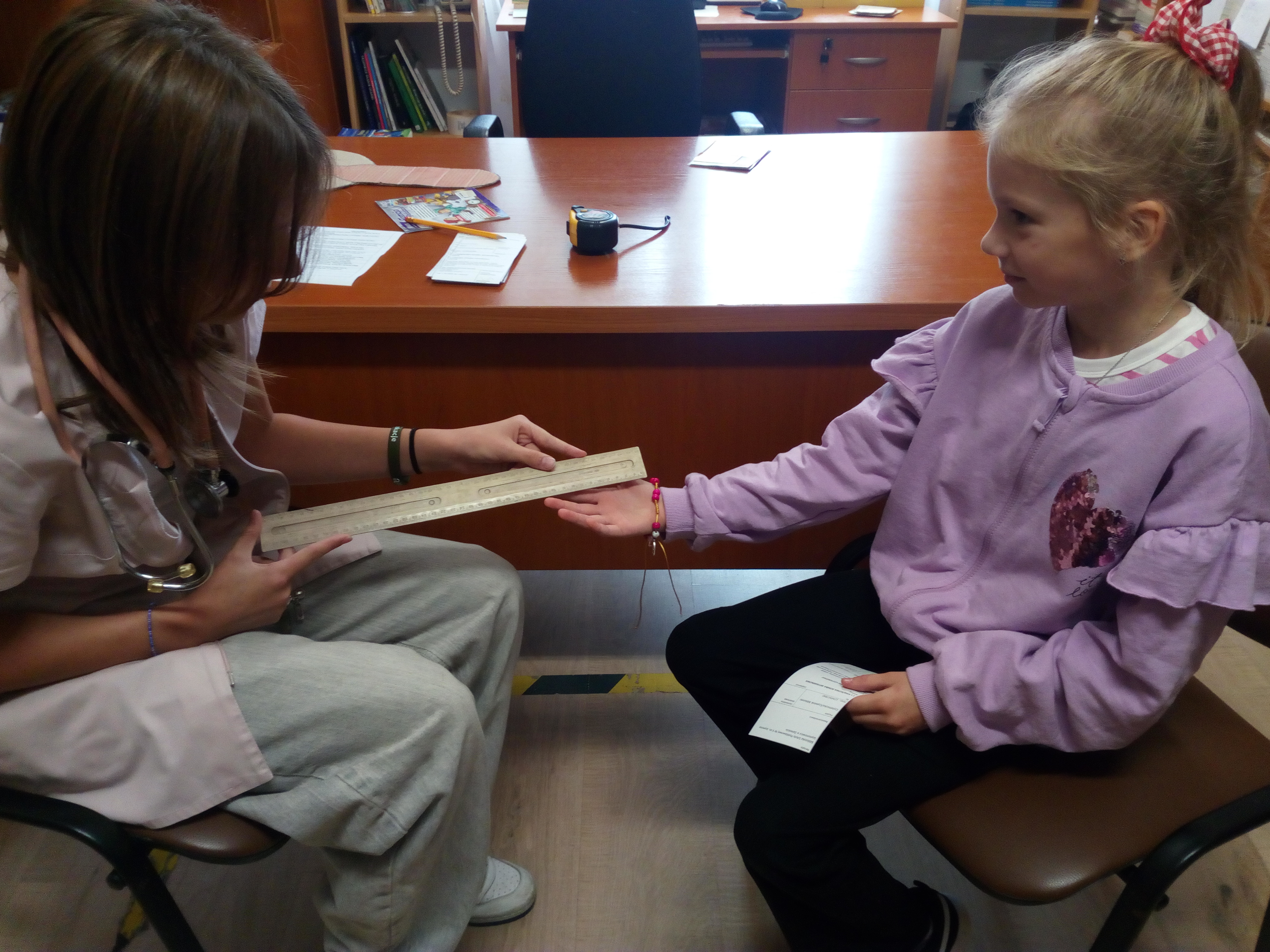 Akcja w stylu „na poważnie, ale z przymrużeniem oka” przyciÄ…gnęła do biblioteki rzeszÄ™ maÅ‚ych czytelników. Z okazji MiÄ™dzynarodowego MiesiÄ…ca Bibliotek Szkolnych, razem z uczennicami klasy 7a zorganizowaÅ‚yÅ›my prawdziwÄ… przychodniÄ™ czytelniczÄ…. Pani doktor (w tej roli wystÄ…piÅ‚a Magdalena WoÅ‚och) badaÅ‚a wszystko, co najważniejsze dla książkoholika: wzrok (czy dobrze widzi z daleka), rozmiar dÅ‚oni (czy da radÄ™ uchwycić czytanÄ… książkÄ™), rozmiar buta (jak daleko może zajść dziÄ™ki czytaniu), temperaturÄ™ czytelniczego zapaÅ‚u, a nawet wÅ‚osy na gÅ‚owie (czy nie bÄ™dÄ… siÄ™ jeżyć podczas czytania). A wszystko to w kontekÅ›cie „stopnia zaczytania”. Po przeprowadzonym badaniu pani doktor Książkowska wystawiaÅ‚a diagnozÄ™ wraz zaleceniami i receptÄ…. Zalecenia te byÅ‚y różne i bardzo indywidualne: na szumy w uszach – książki o muzyce, na sÅ‚aby wzrok – z dużą czcionkÄ…, a na ospaÅ‚ość – detektywistyczne lub maÅ‚y kryminaÅ‚ek. Każdy pacjent mógÅ‚ od razu zrealizować swojÄ… receptÄ™ u pani aptekarki ZakÅ‚adki (w rolÄ™ wcieliÅ‚a siÄ™ Nicola Parkitny). Do tego byÅ‚y rekwizyty: lekarskie kitle, stetoskop oraz wÅ‚asnorÄ™cznie wykonana waga i termometr.