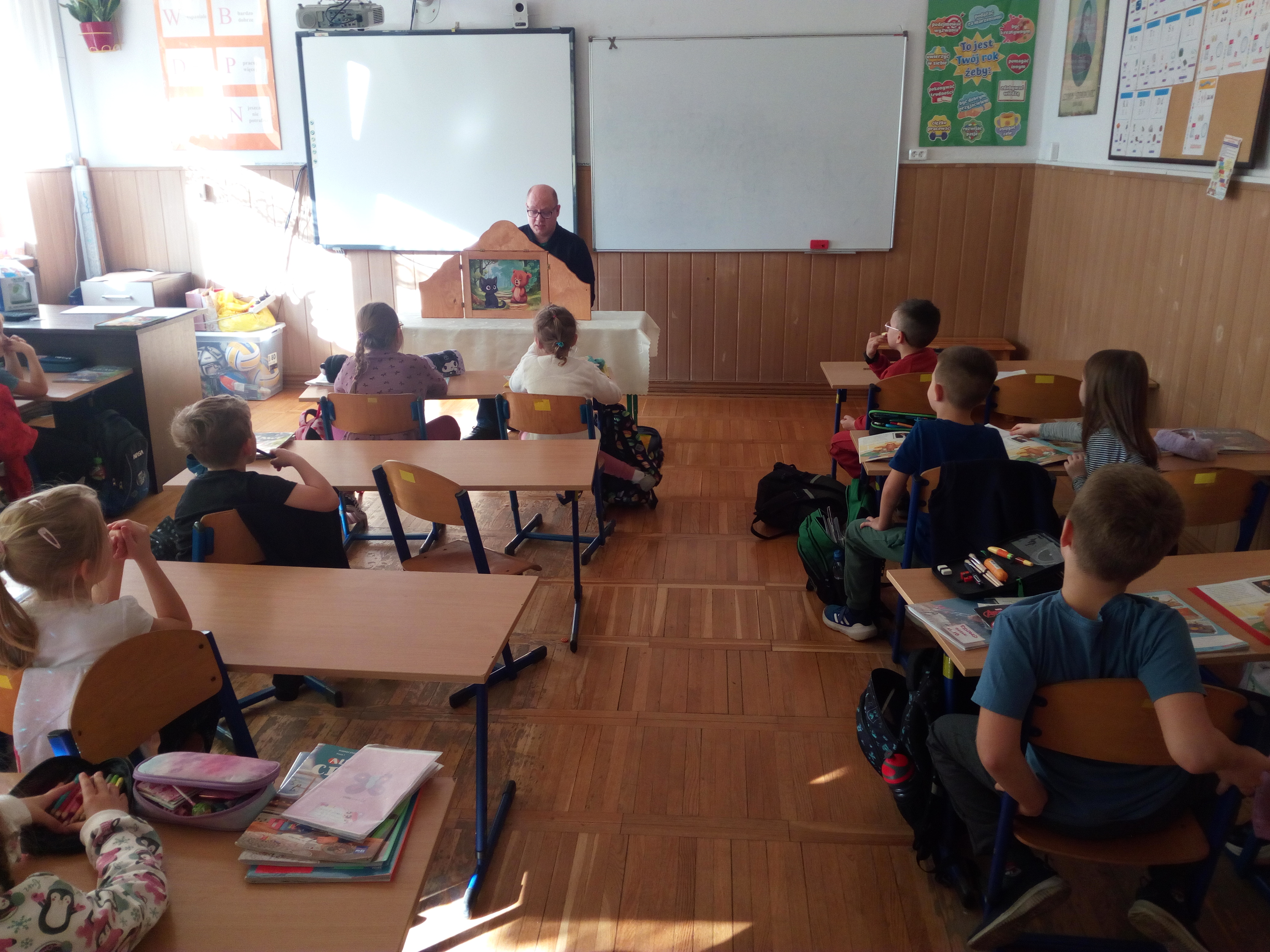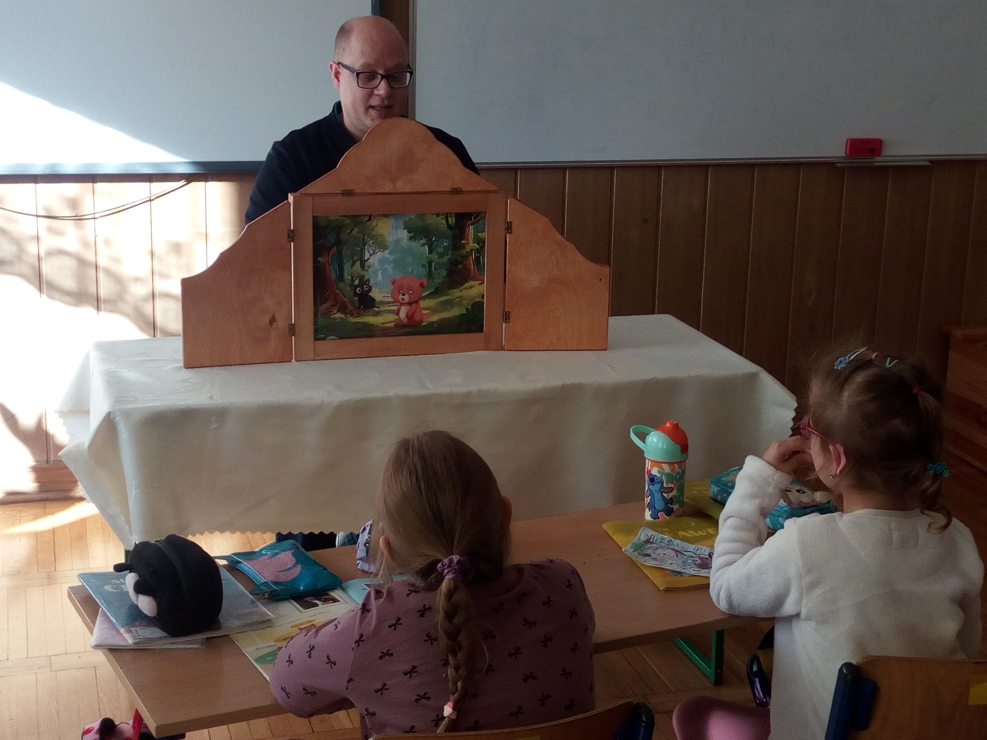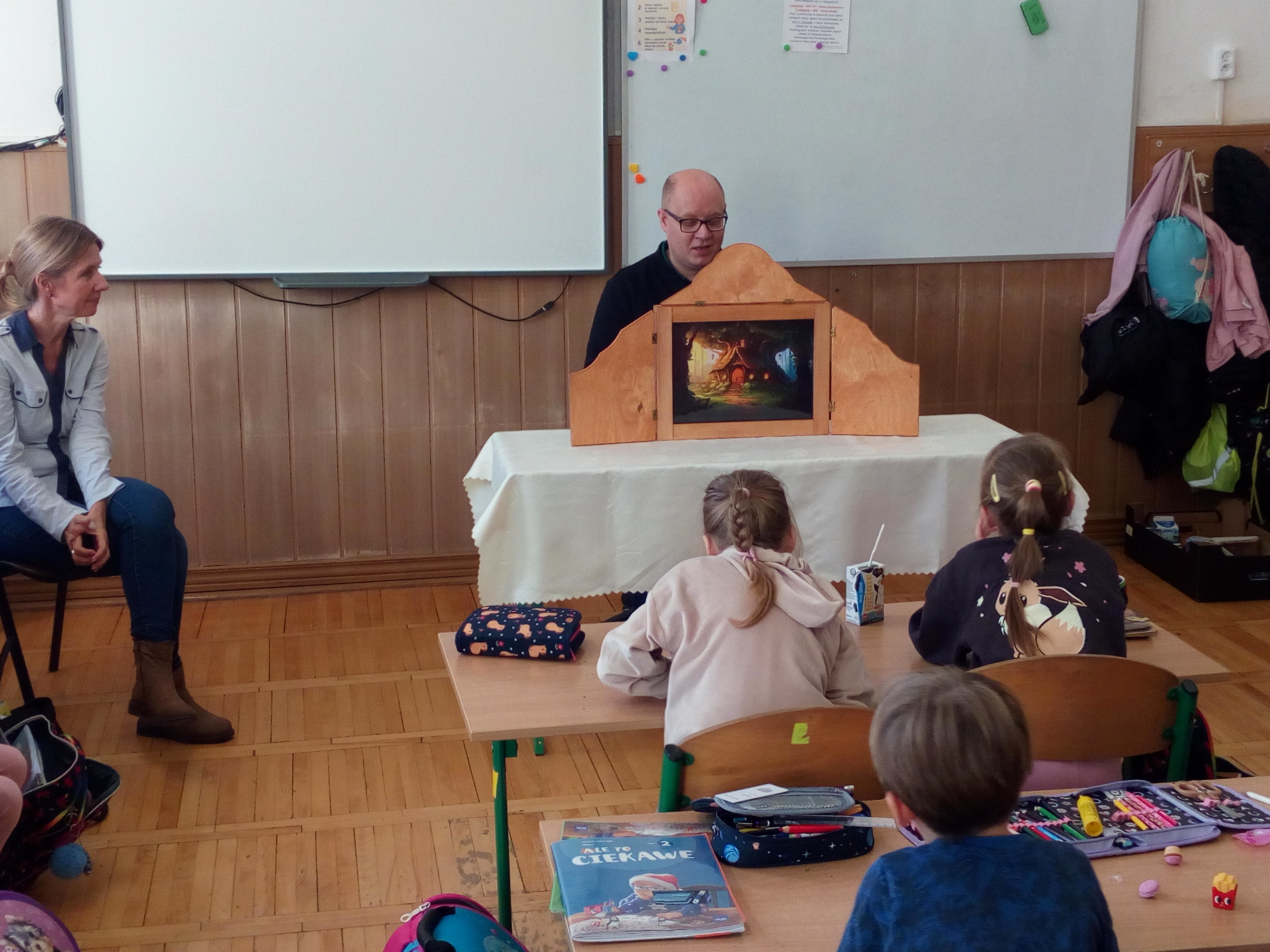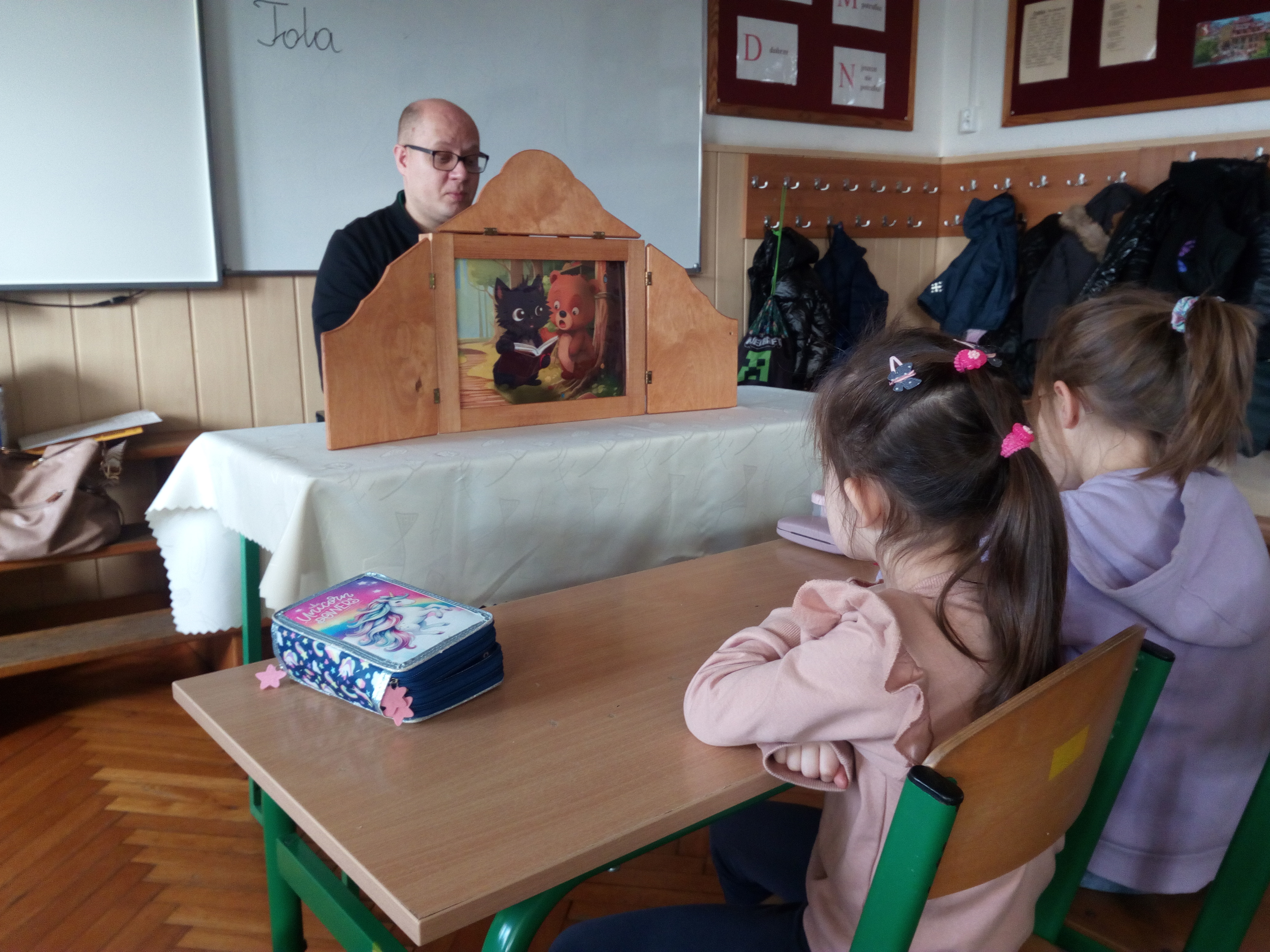 We wtorek, 18 listopada, uczniowie klas 1 mieli okazję wysłuchać opowieści „Serce Misia”, zaprezentowanej w formie kart narracyjno-obrazkowych przez bibliotekarzy – pracowników Biblioteki Pedagogicznej w Zamościu. Teatrzyk kamishibai jest tradycyjną japońską techniką opowiadania z pomocą ilustracji umieszczanych w drewnianej skrzynce.