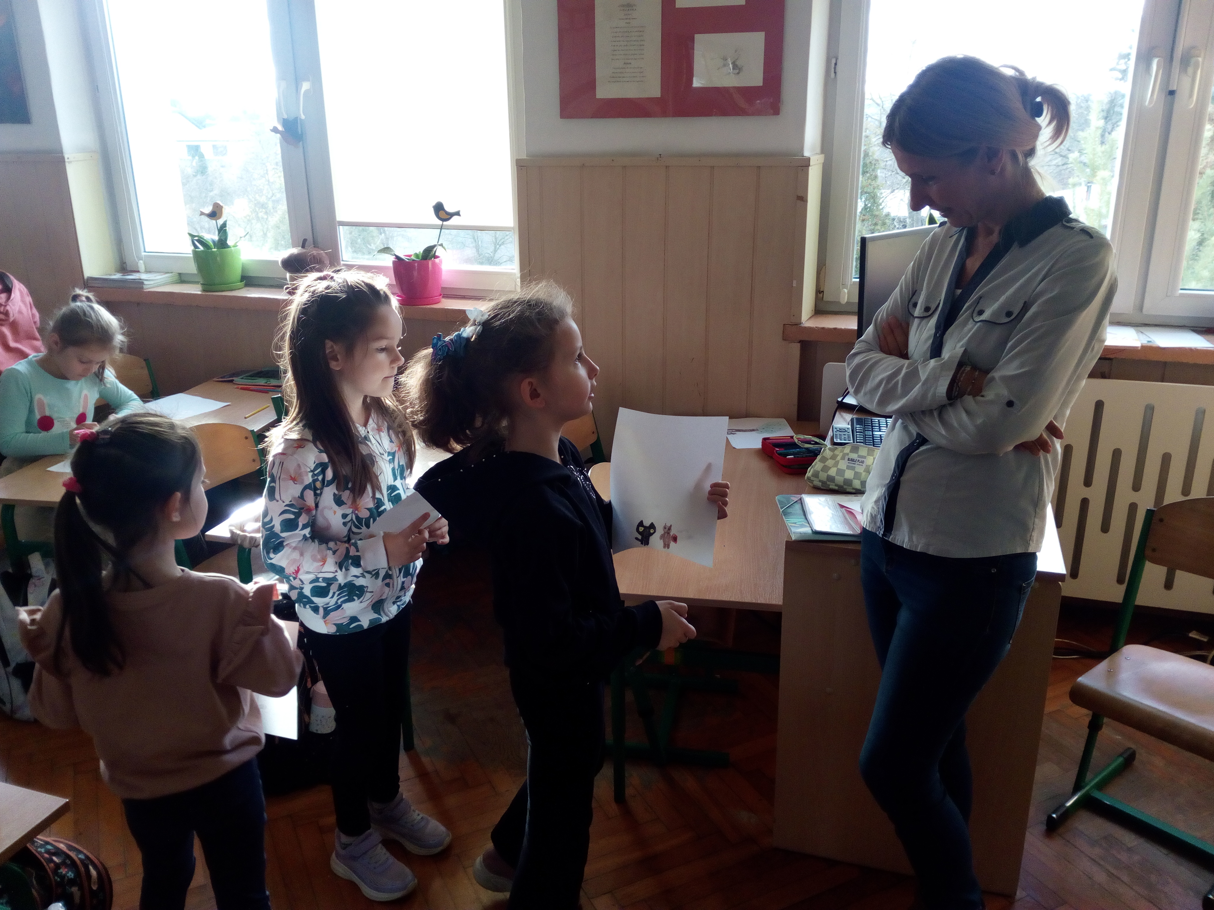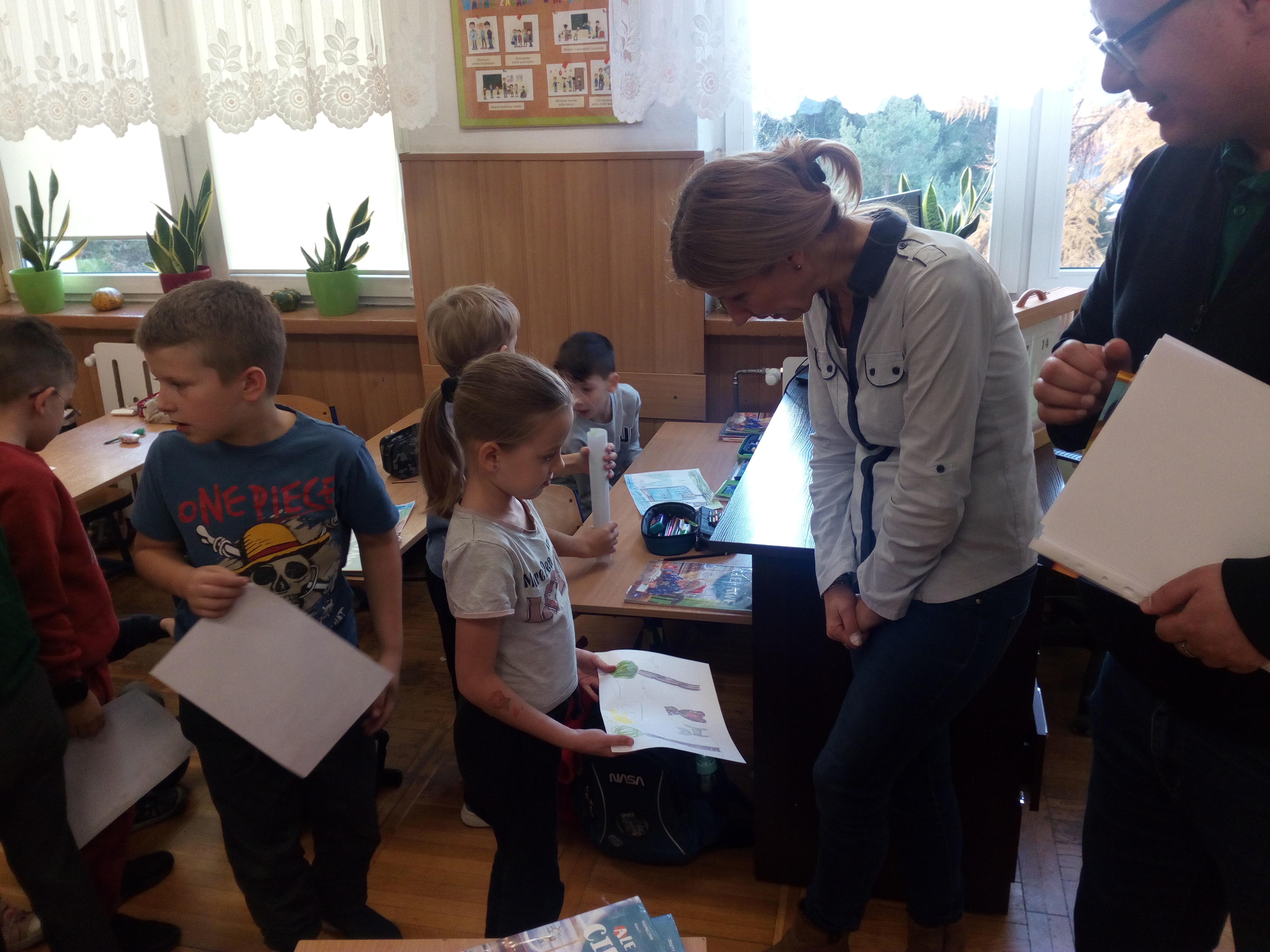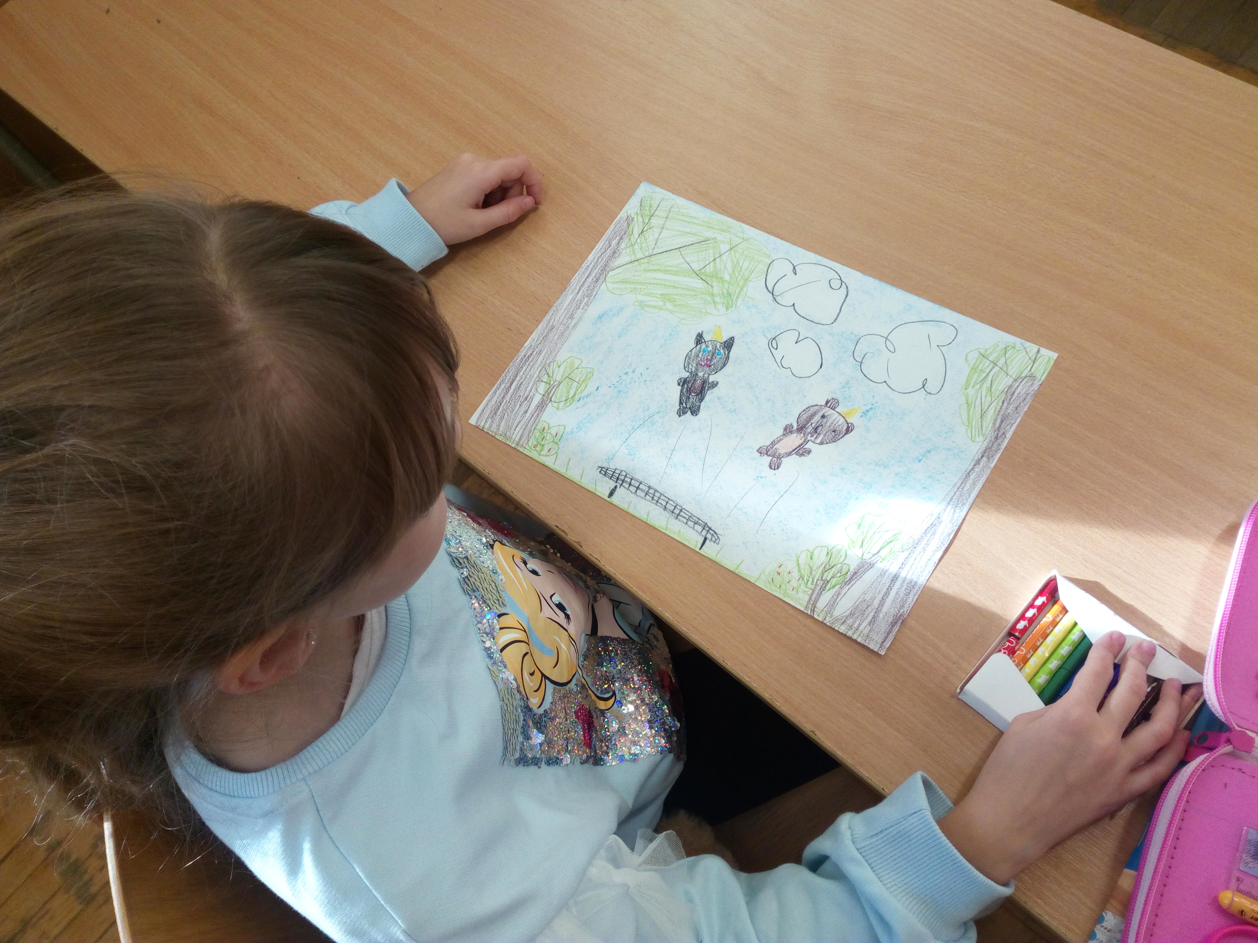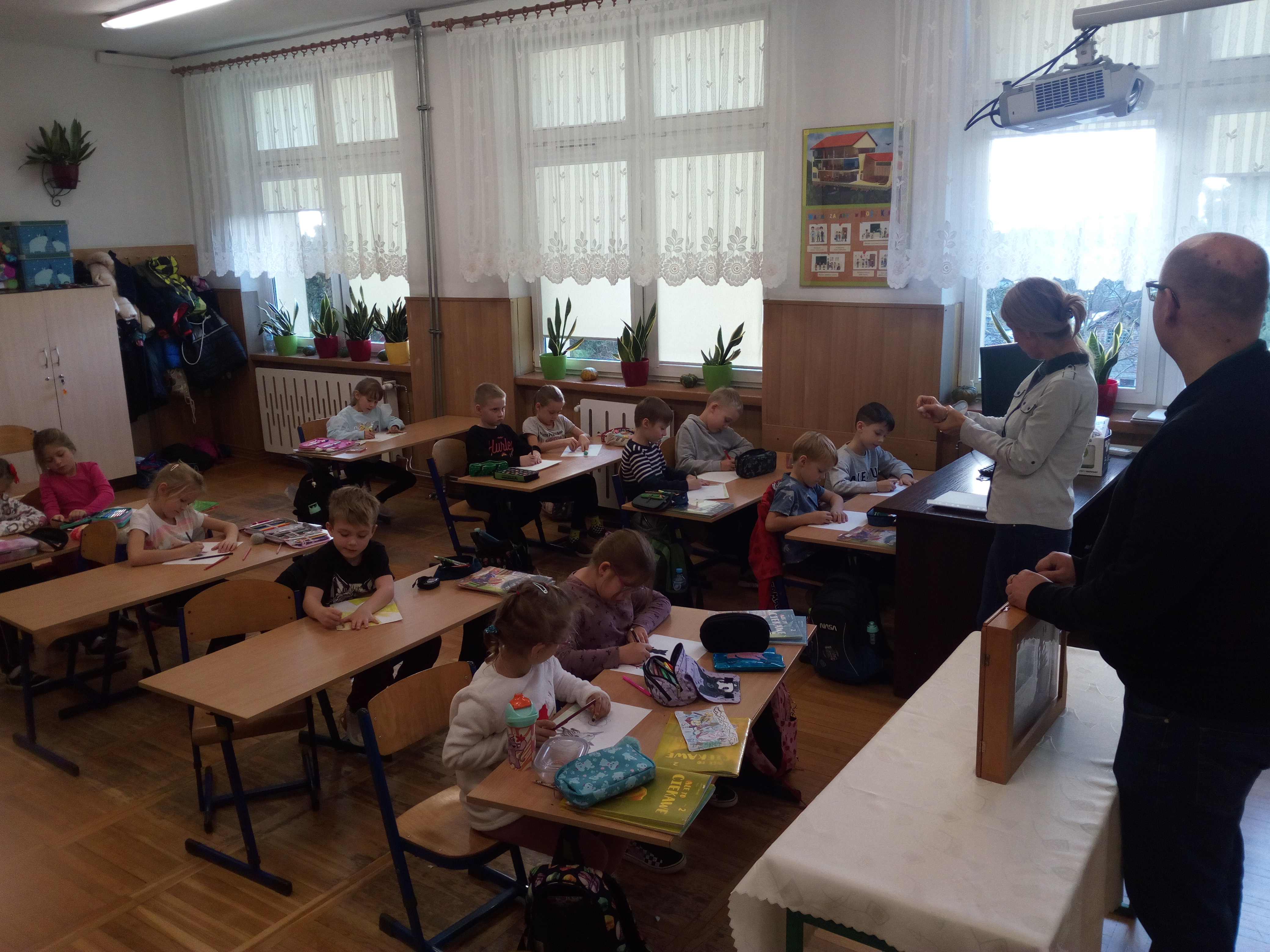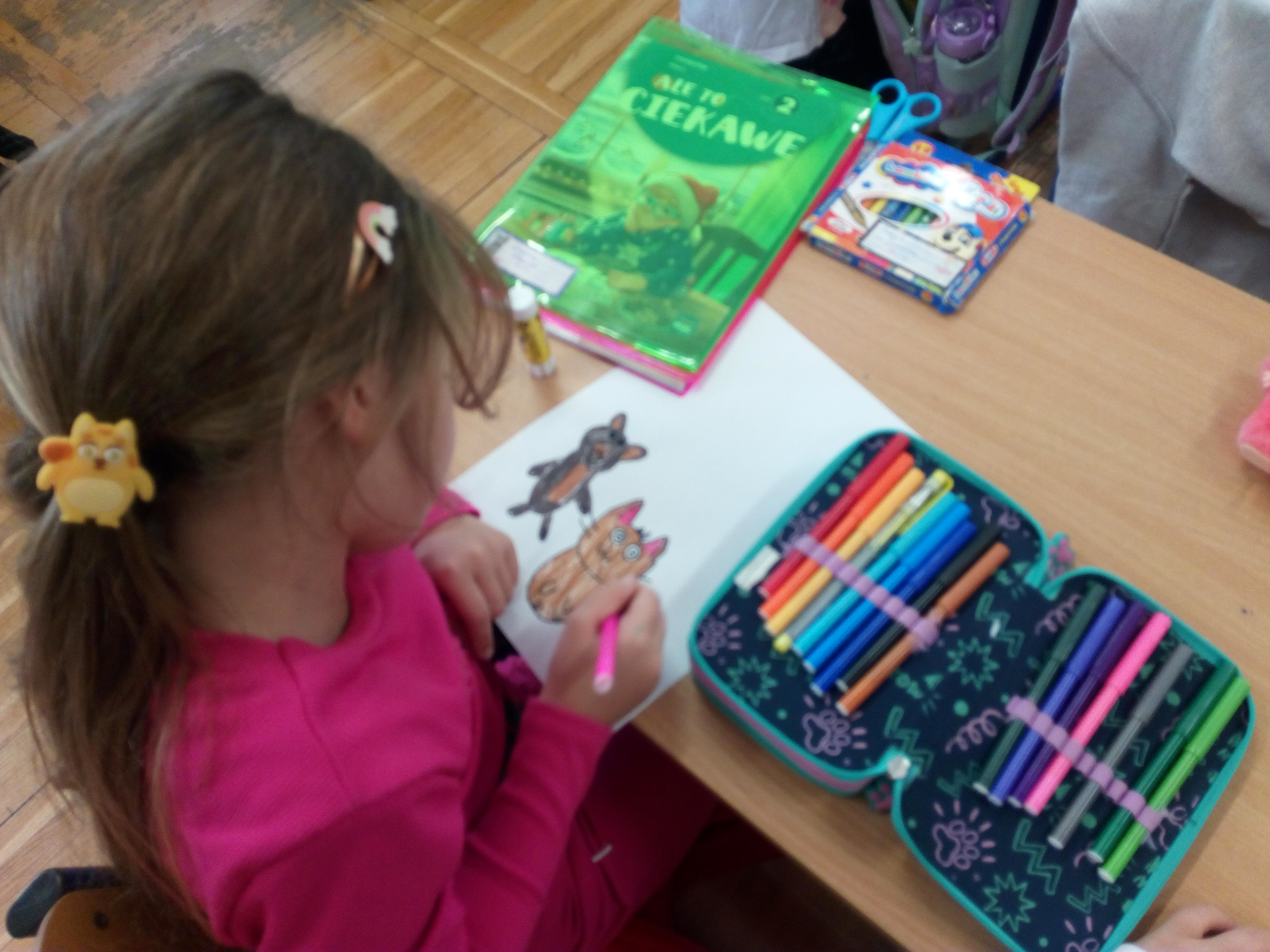 Ostatnim elementem zajęć były tworzone przez pierwszoklasistów ilustracje do wysłuchanej opowieści.