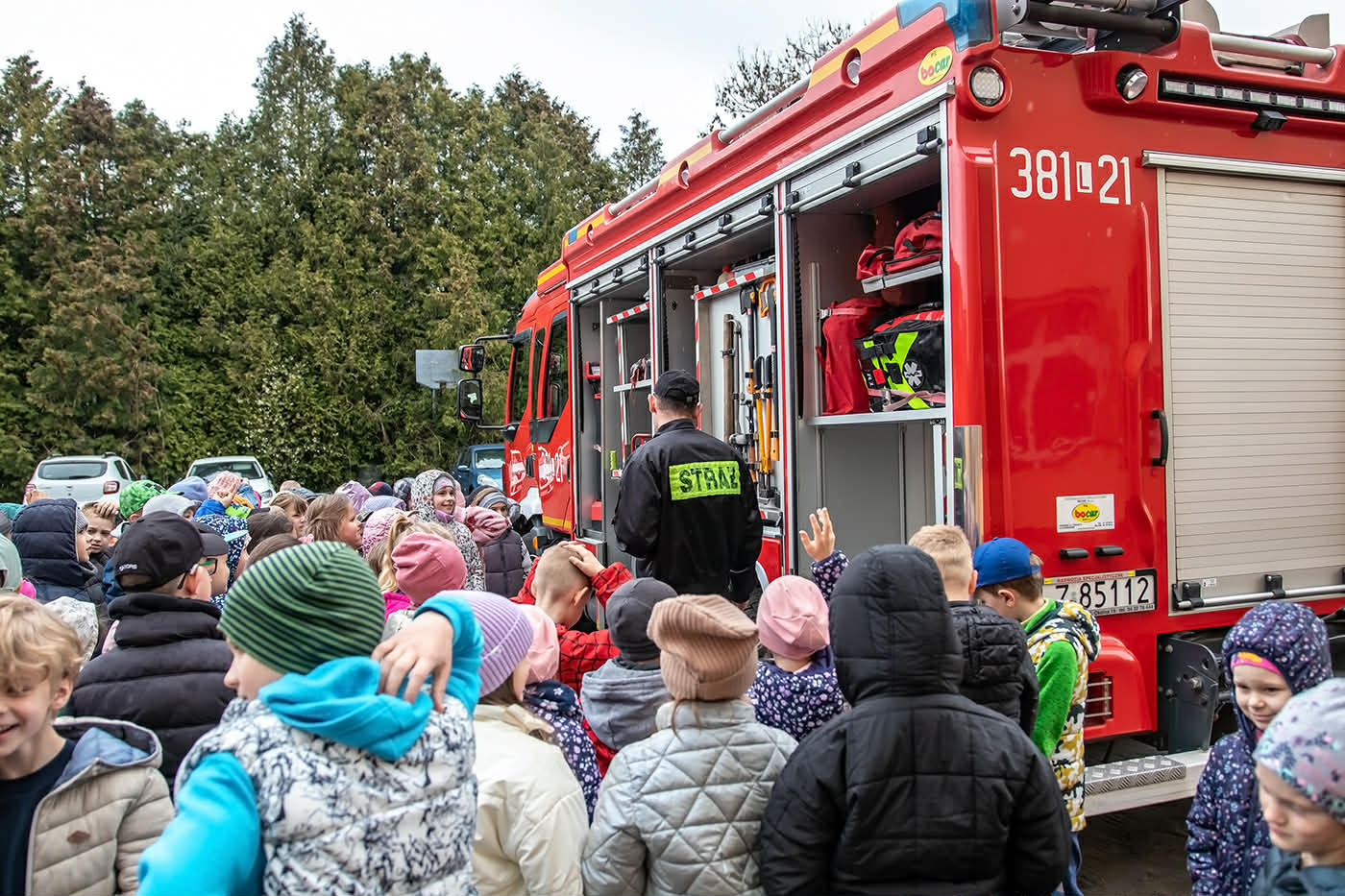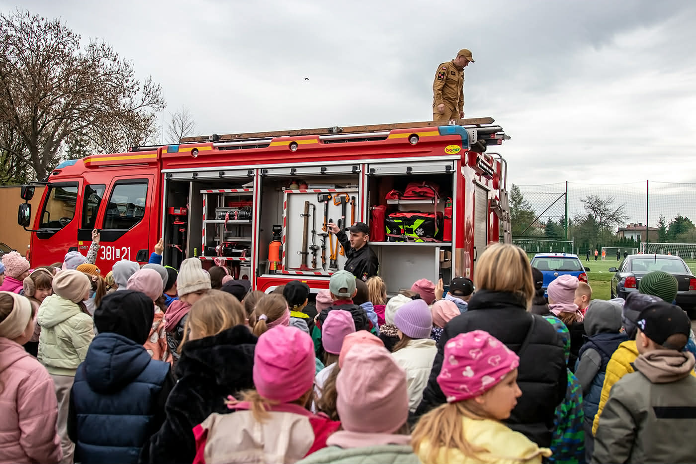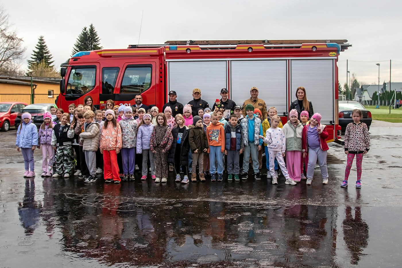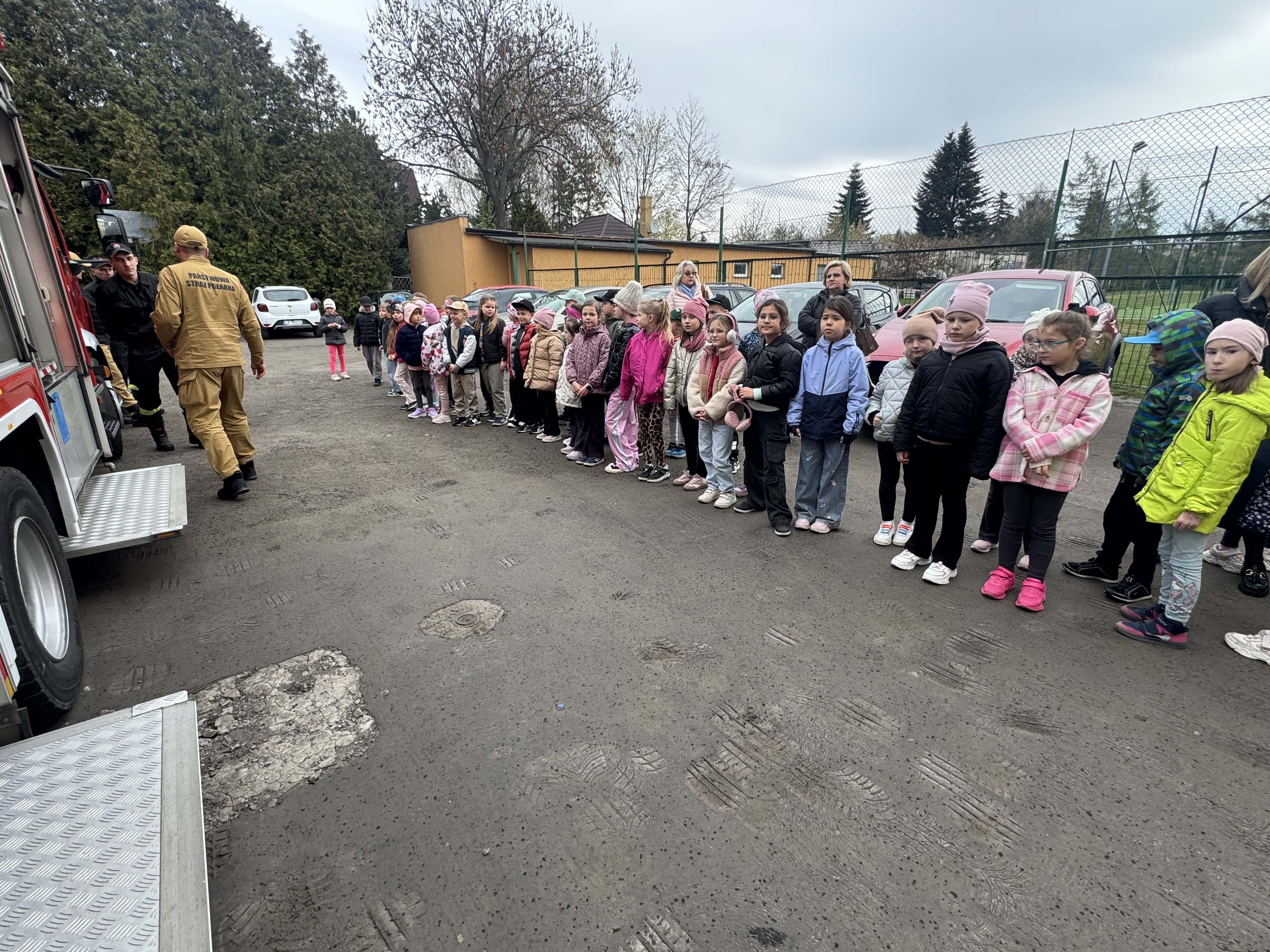 W dniu 15 kwietnia odbyło się spotkanie ze Strażakami PSP w Zamościu dla uczniów klas 1–3. Była to niezwykle cenna i interesująca lekcja, podczas której dzieci miały okazję poznać zasady bezpieczeństwa oraz dowiedzieć się, jak zachować się w sytuacjach zagrożenia. Dodatkową atrakcją była możliwość obejrzenia z bliska wozu strażackiego, co wzbudziło wśród uczniów ogromne zainteresowanie i radość.