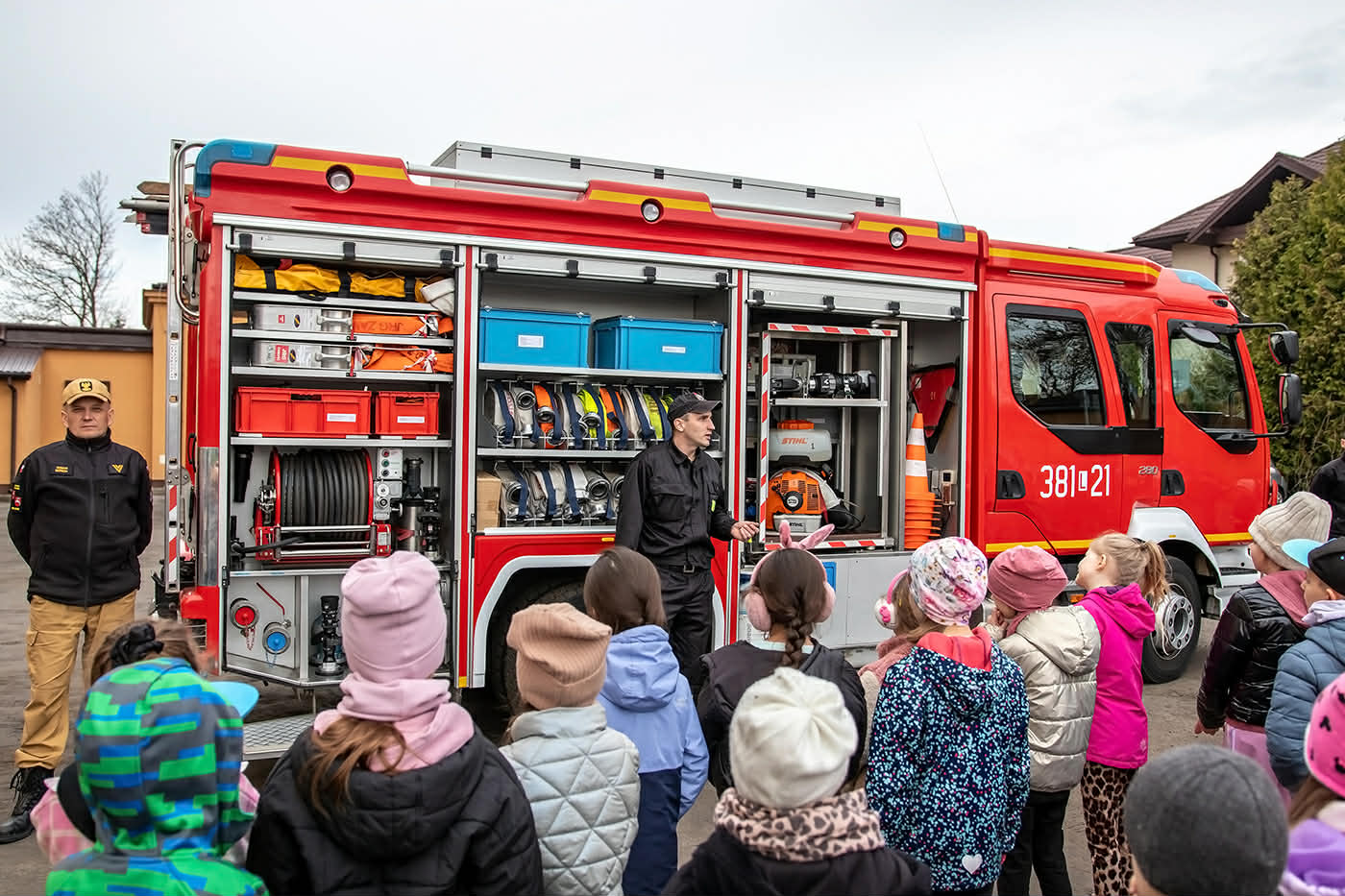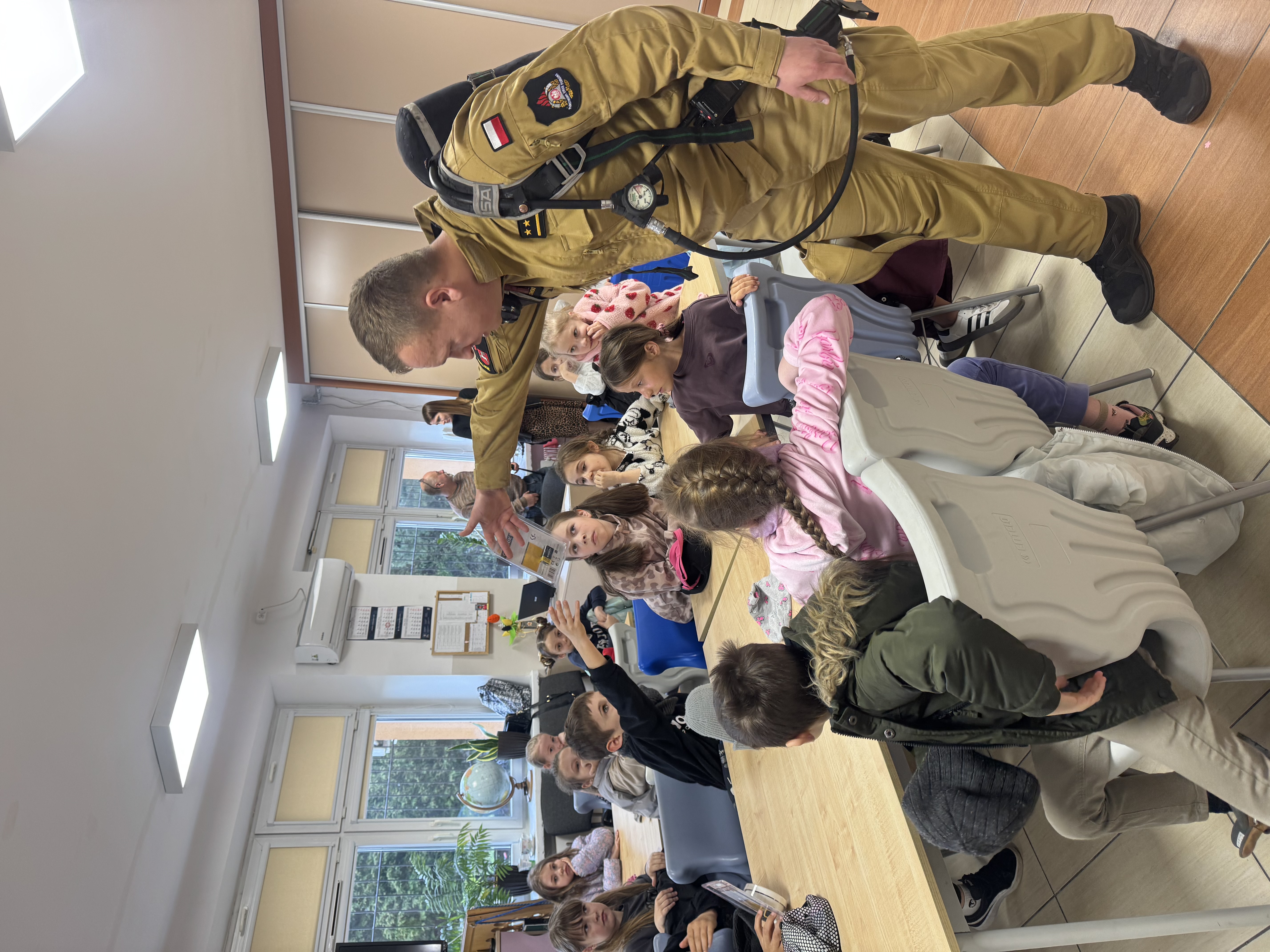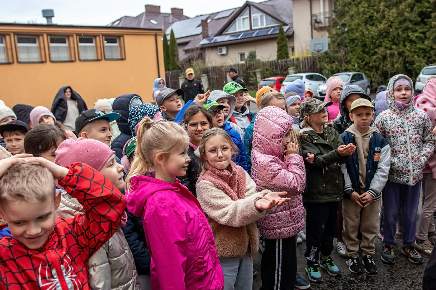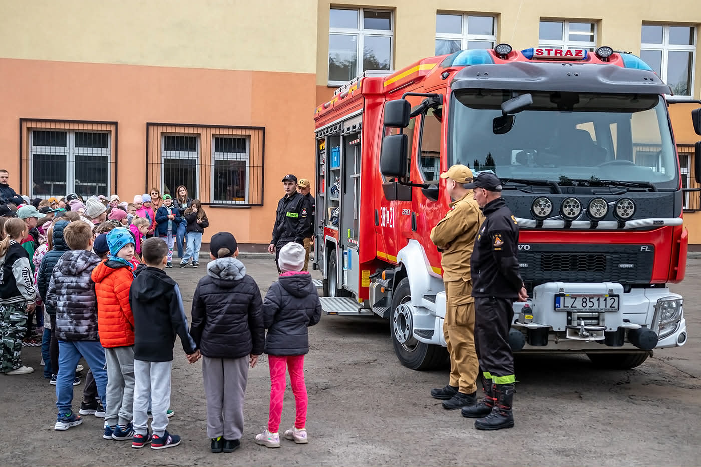 W dniu 15 kwietnia odbyło się spotkanie ze Strażakami PSP w Zamościu dla uczniów klas 1–3. Była to niezwykle cenna i interesująca lekcja, podczas której dzieci miały okazję poznać zasady bezpieczeństwa oraz dowiedzieć się, jak zachować się w sytuacjach zagrożenia. Dodatkową atrakcją była możliwość obejrzenia z bliska wozu strażackiego, co wzbudziło wśród uczniów ogromne zainteresowanie i radość.