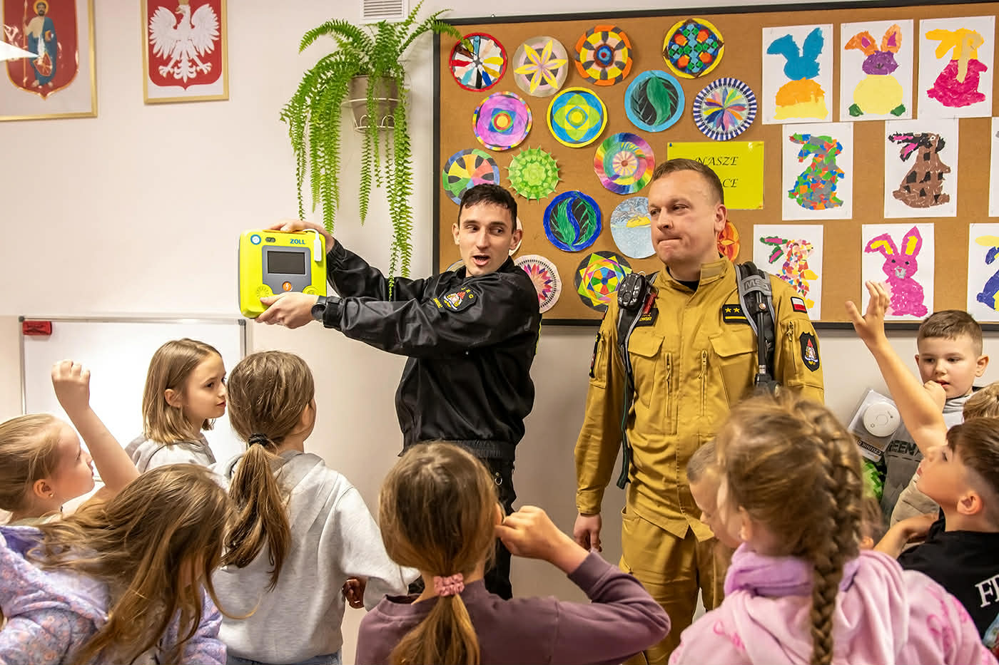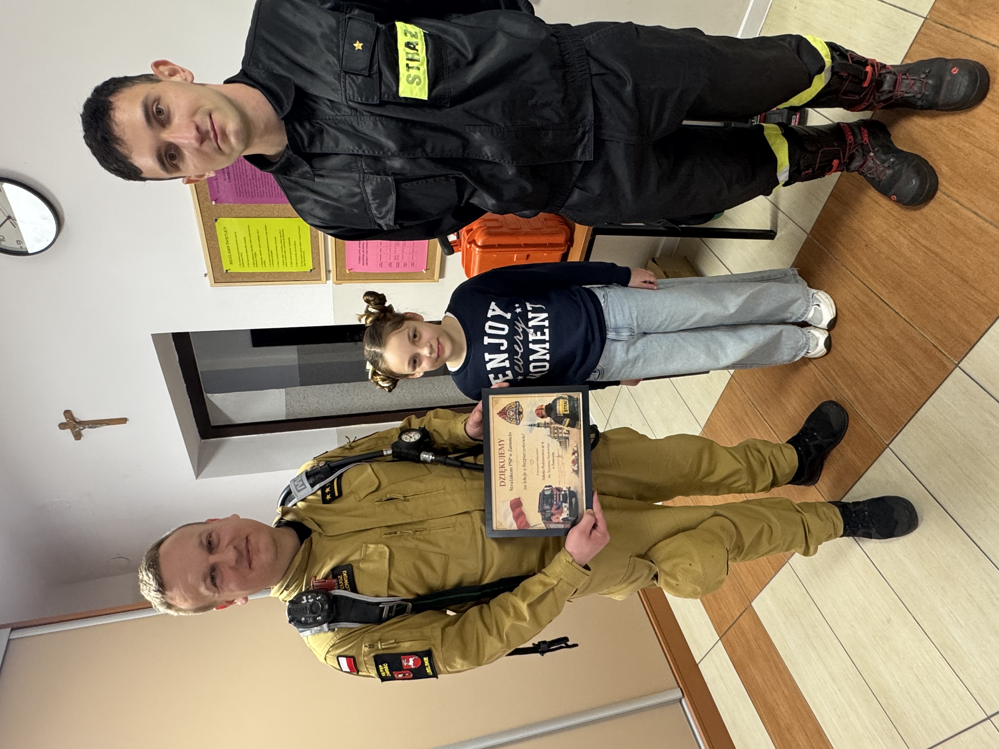 Po spotkaniu zorganizowany został konkurs, w którym uczniowie mogli sprawdzić swoją wiedzę zdobytą podczas zajęć. W ramach nagrody dzieci otrzymały czujniki dymu, co dodatkowo podkreśliło, jak ważne jest dbanie o bezpieczeństwo w domu.