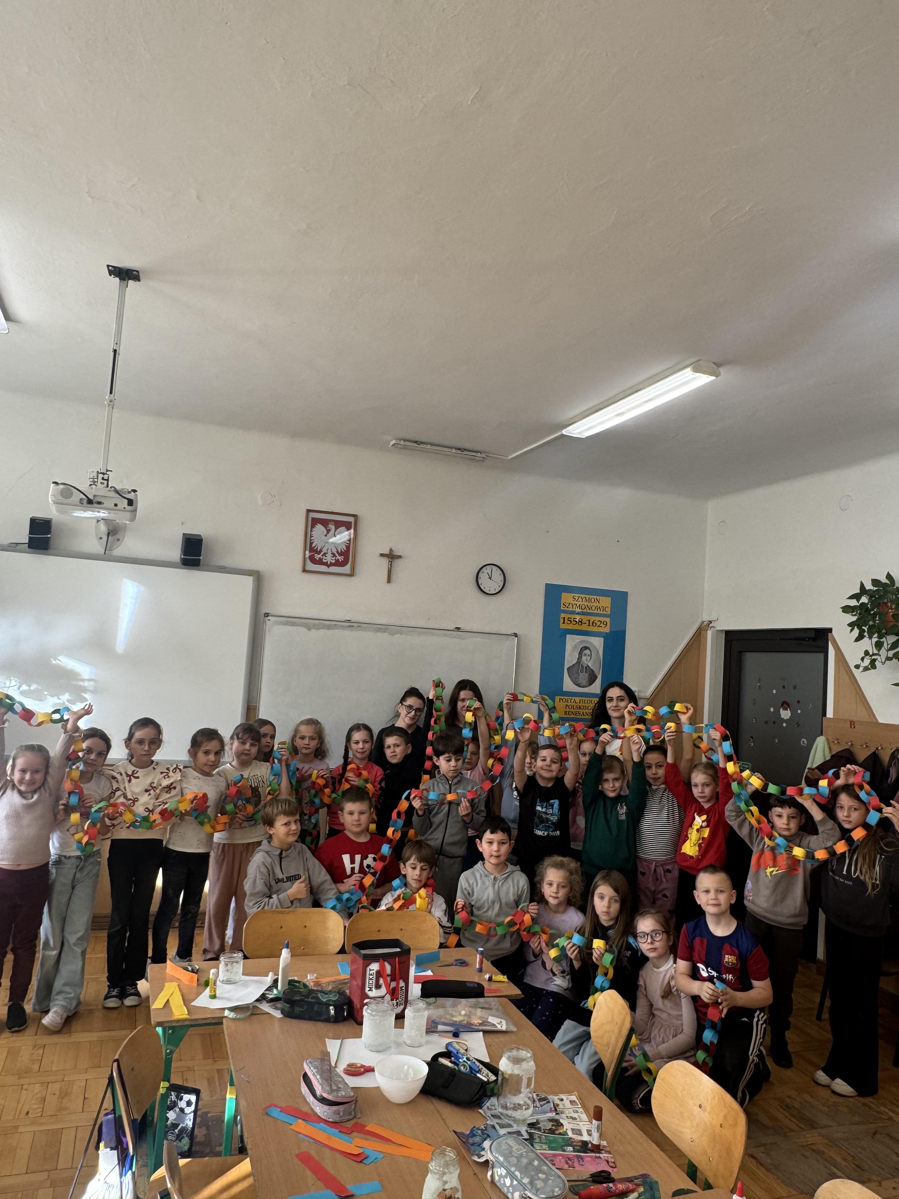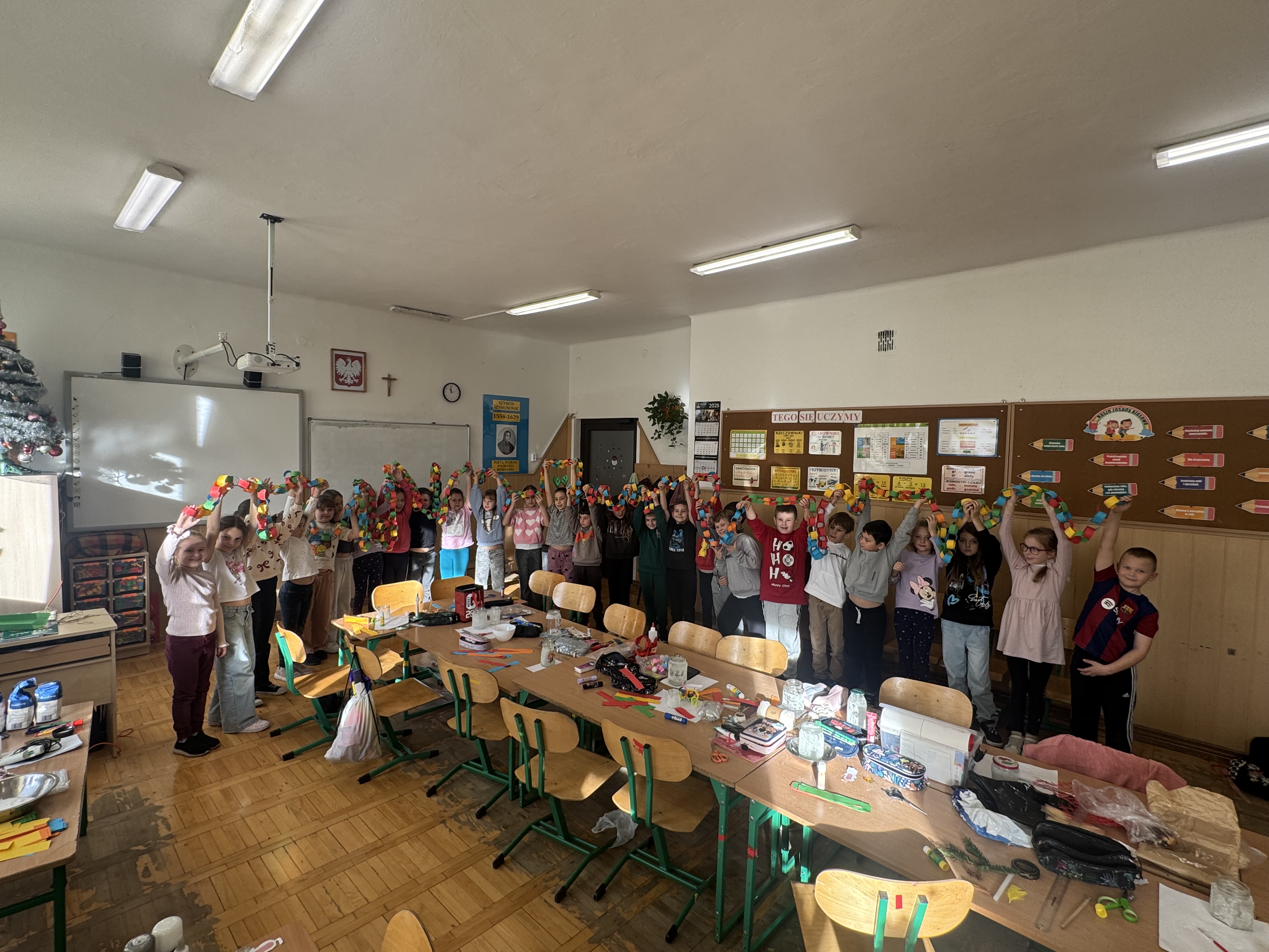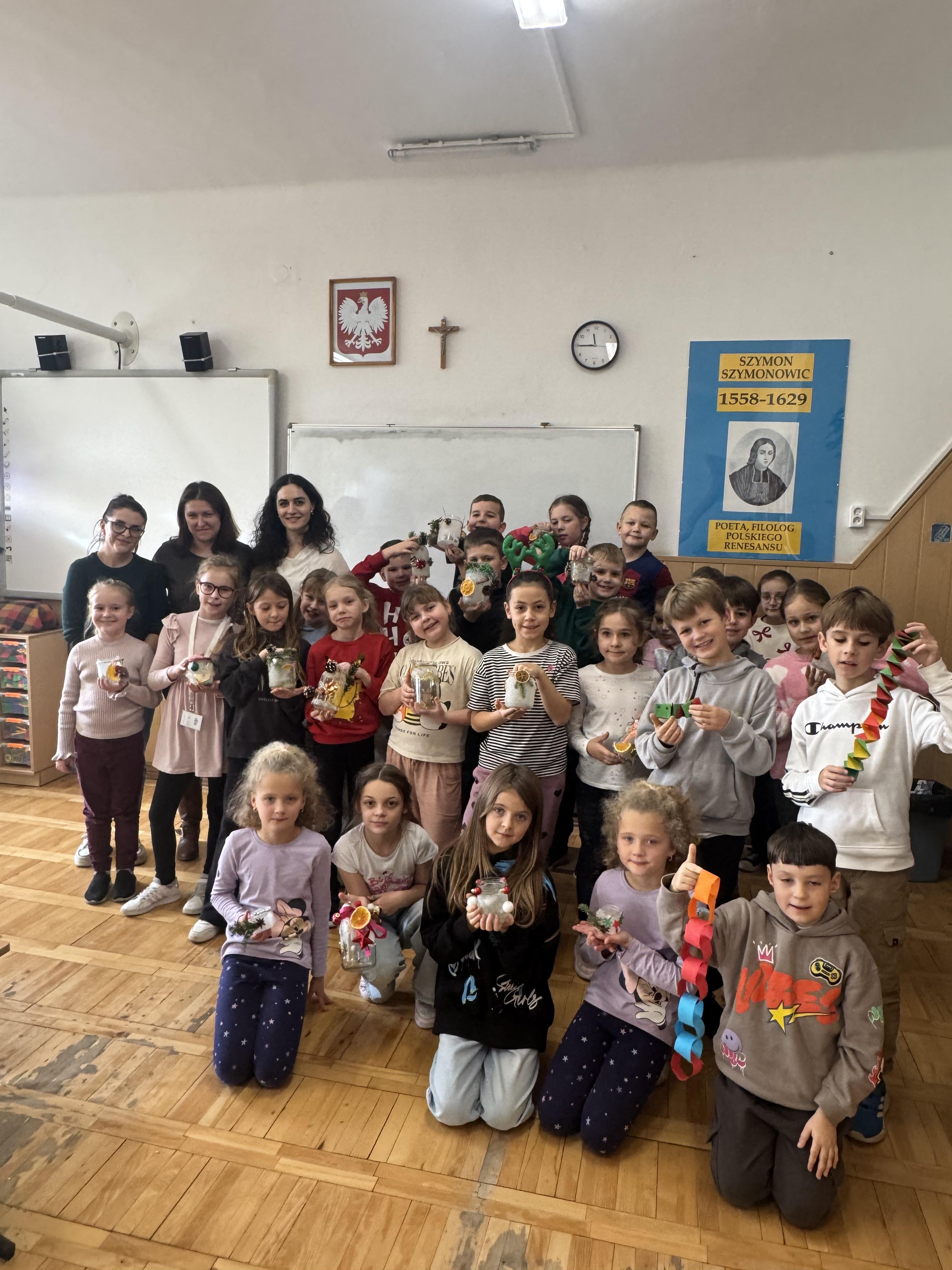 Dziś w klasie II B odbyły się świąteczne warsztaty, podczas których dzieci z radością i dużym zaangażowaniem tworzyły świąteczne dekoracje. Uczniowie wykonywali kolorowe łańcuchy oraz ozdabiali słoiki, rozwijając swoją kreatywność i zdolności manualne.
