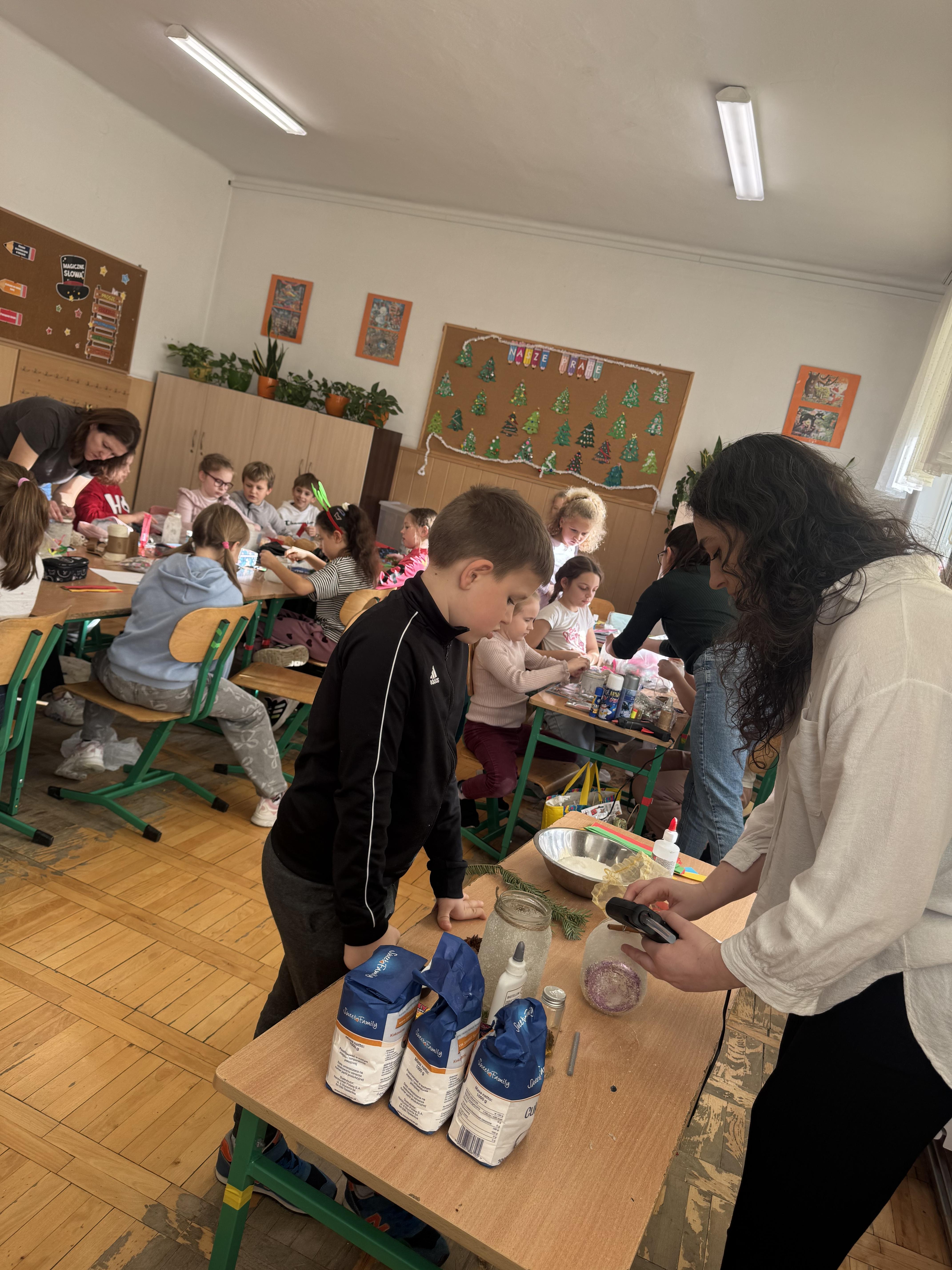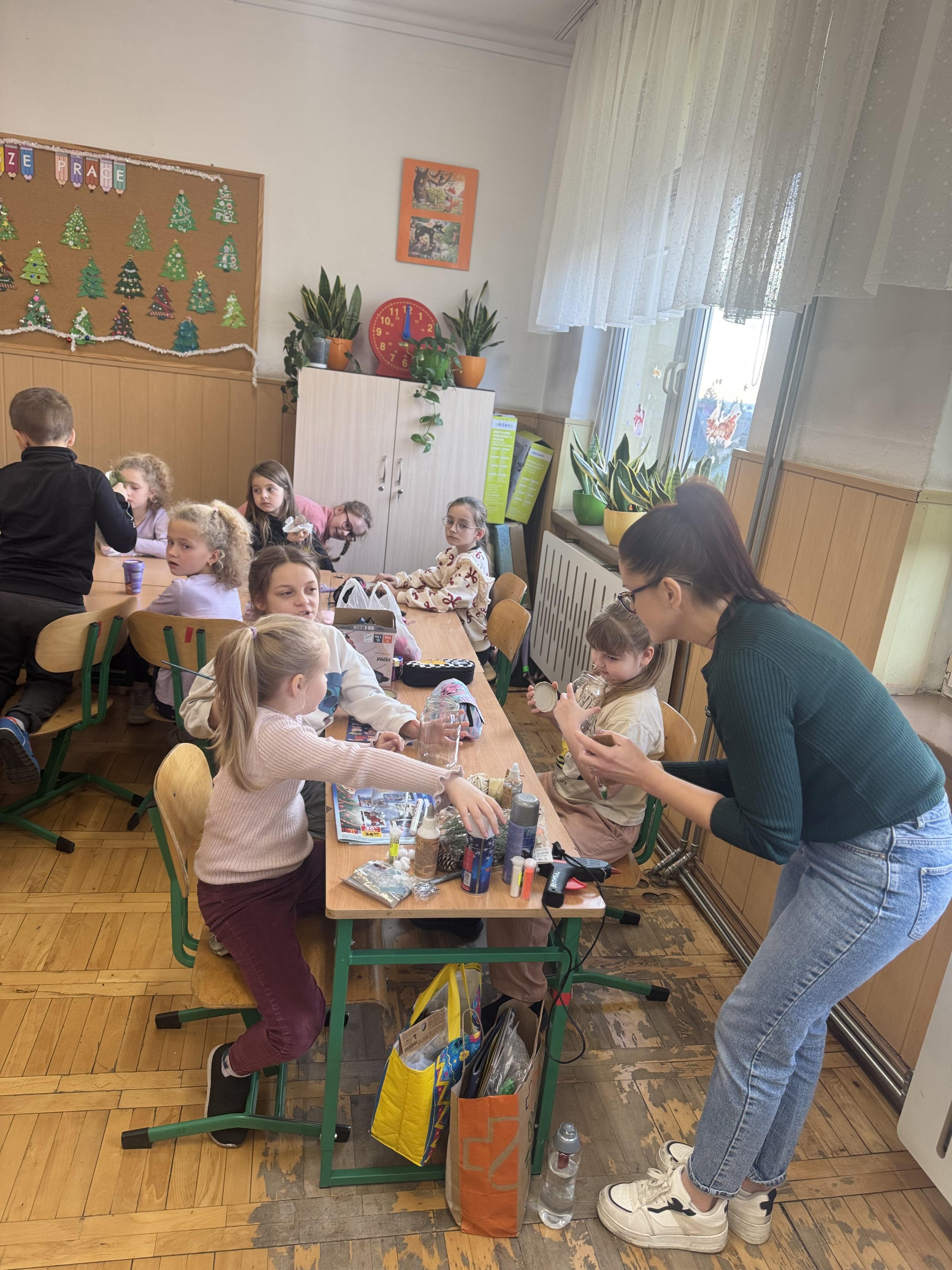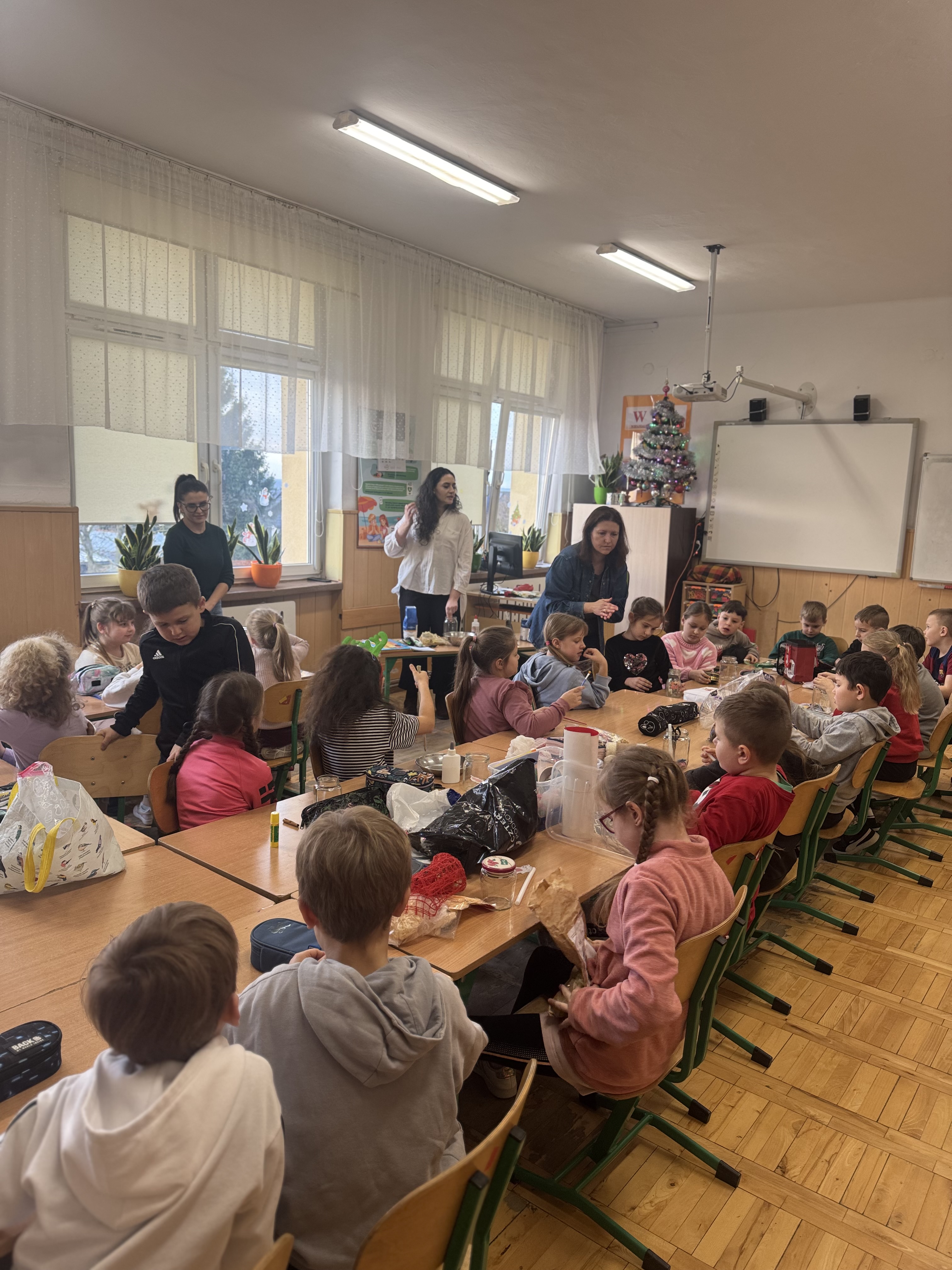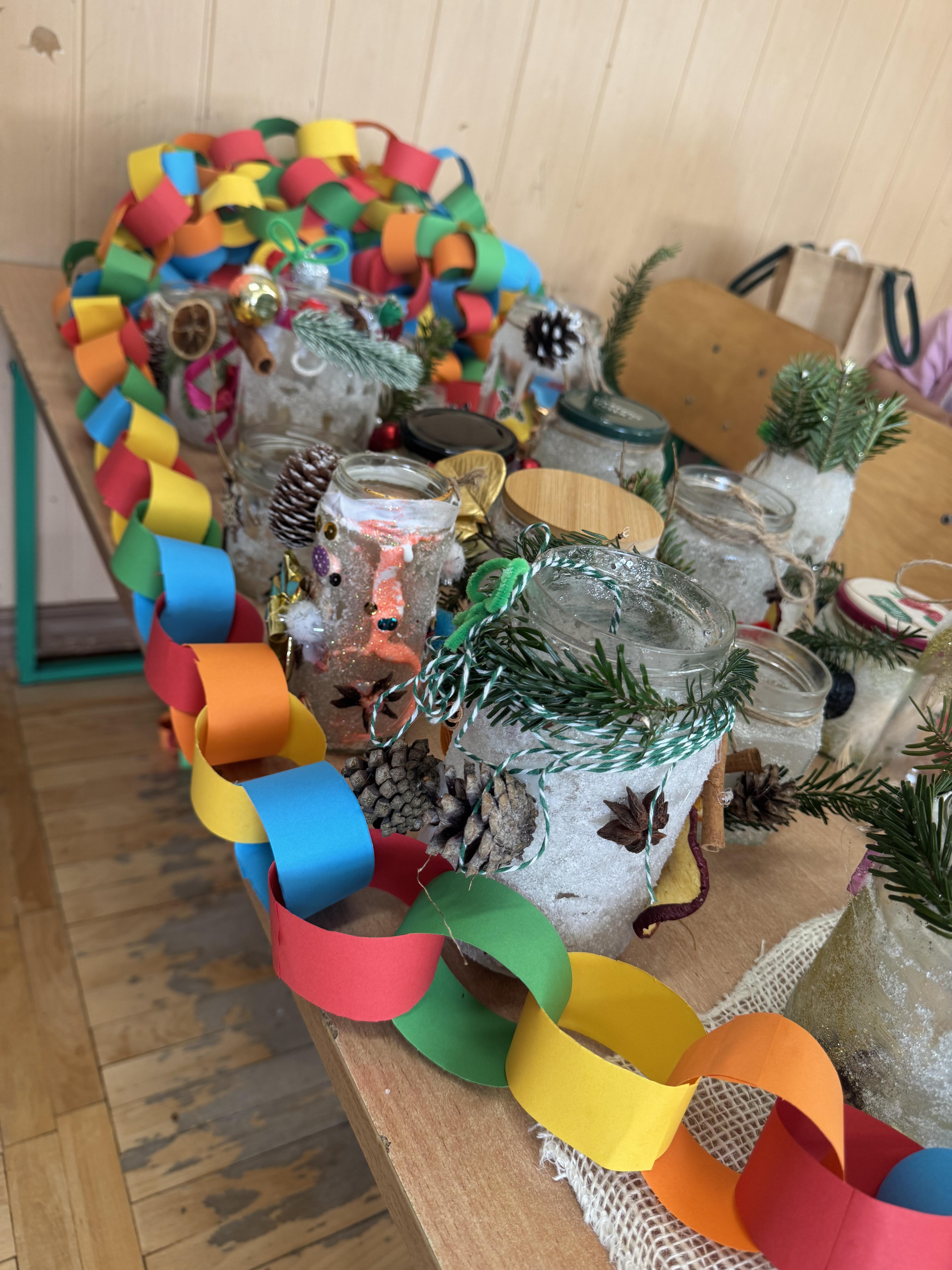 Dziś w klasie II B odbyły się świąteczne warsztaty, podczas których dzieci z radością i dużym zaangażowaniem tworzyły świąteczne dekoracje. Uczniowie wykonywali kolorowe łańcuchy oraz ozdabiali słoiki, rozwijając swoją kreatywność i zdolności manualne.