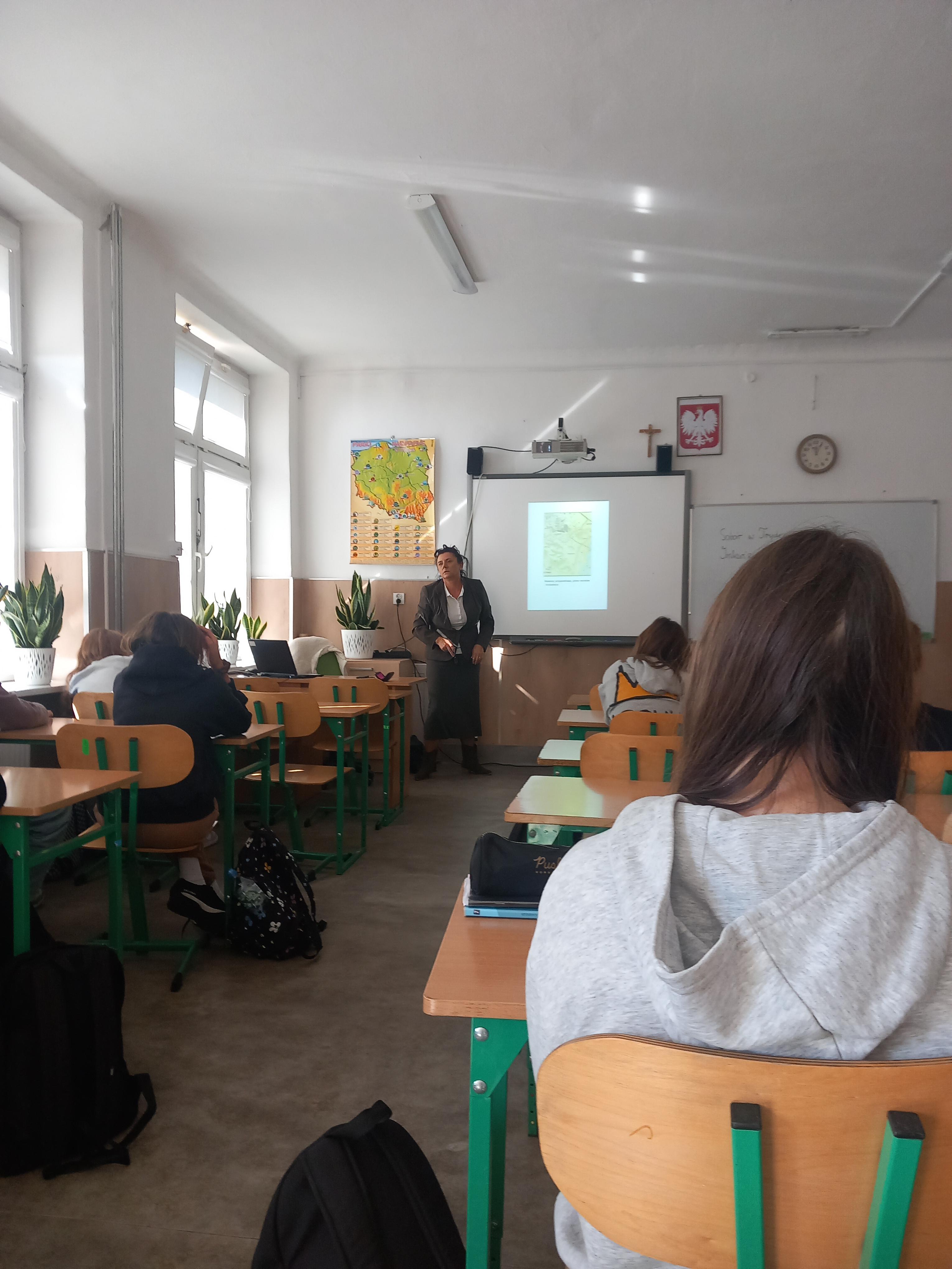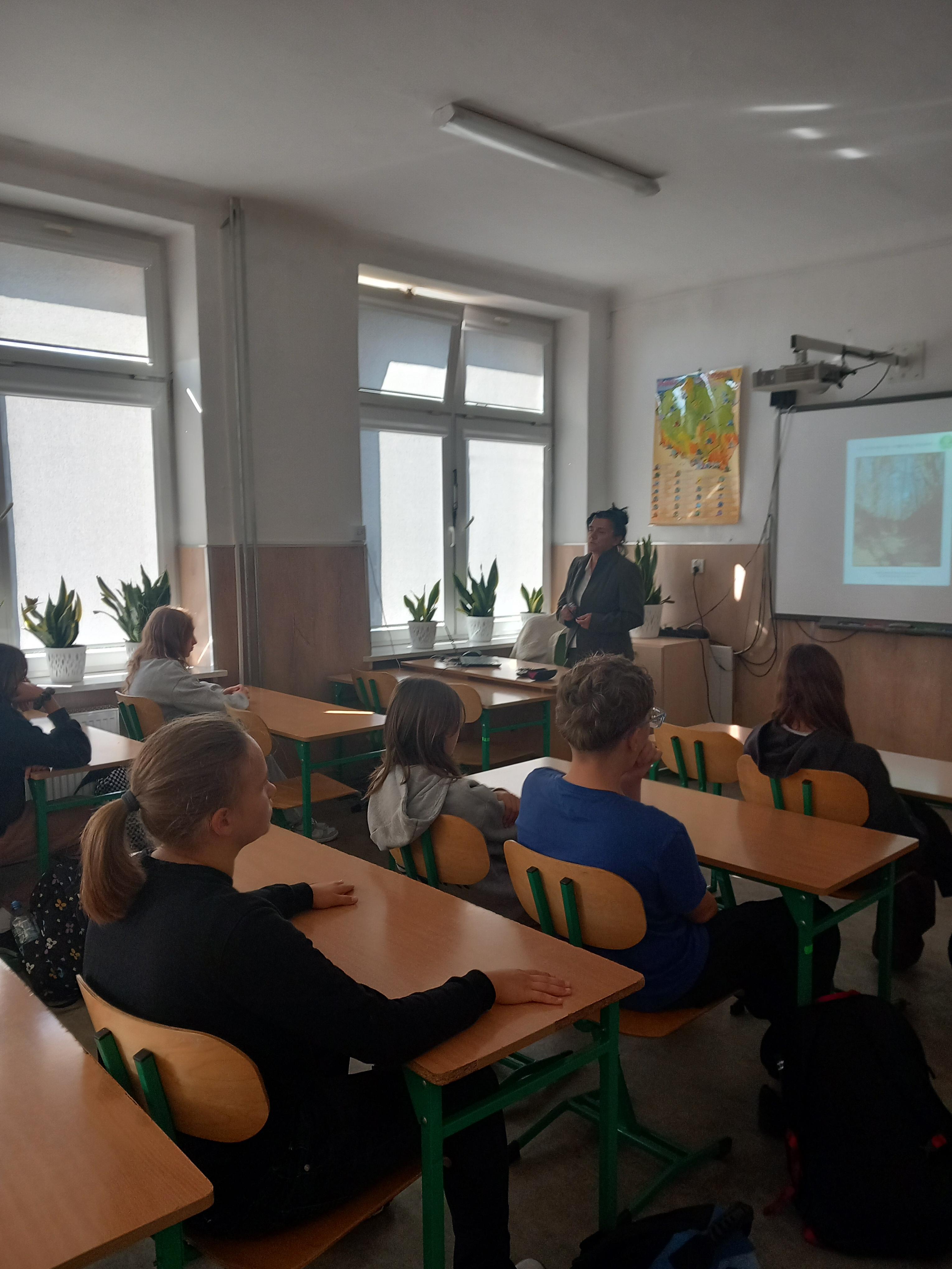W dniu 30 września i 02 października uczniowie klasy 7A i 7B uczestniczyli w prelekcji przyrodniczo - edukacyjnej prowadzonej przez pracownika Zespołu Lubelskich Parków Krajobrazowych Oddział w Zamościu, Panią Małgorzatę Ciuryło. Celem przeprowadzonych zajęć było kształtowanie postaw proekologicznych oraz pogłębianie wiedzy uczniów o unikatowych walorach naszego regionu. Prelekcja pt. "Zachowajmy wąwozy lessowe" prezentowała wyjątkowe formy krajobrazu charakterystyczne dla Lubelszczyzny. Uczniowie dowiedzieli się jak powstają wąwozy lessowe, jakie pełnią funkcje w ekosystemie oraz dlaczego tak ważna jest ich ochrona. Zajęcia stanowiły nietypową formę lekcji geografii oraz uzupełnienie wiedzy z zakresu unikalnych form przyrody w obrębie Lubelskich Parków Krajobrazowych.