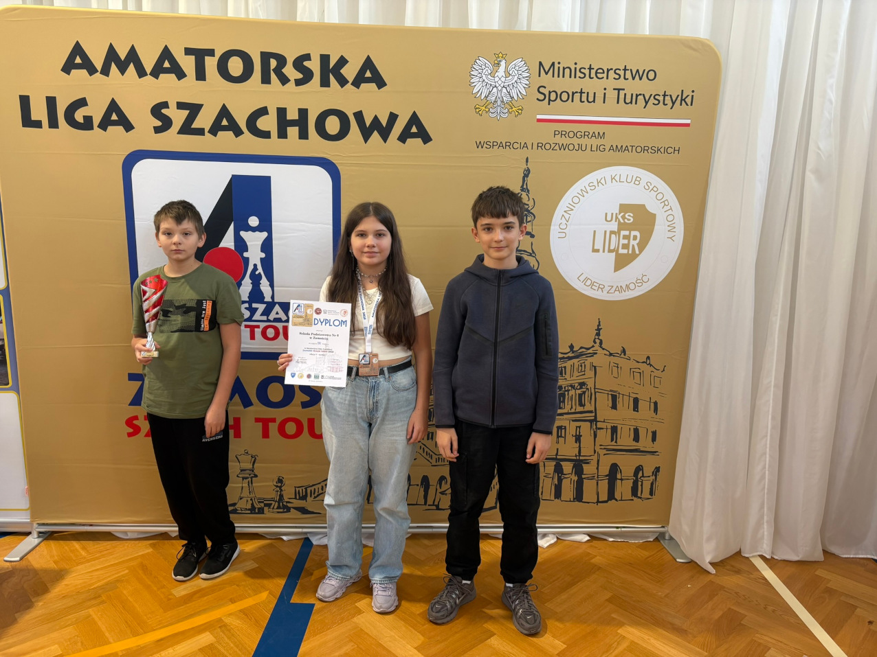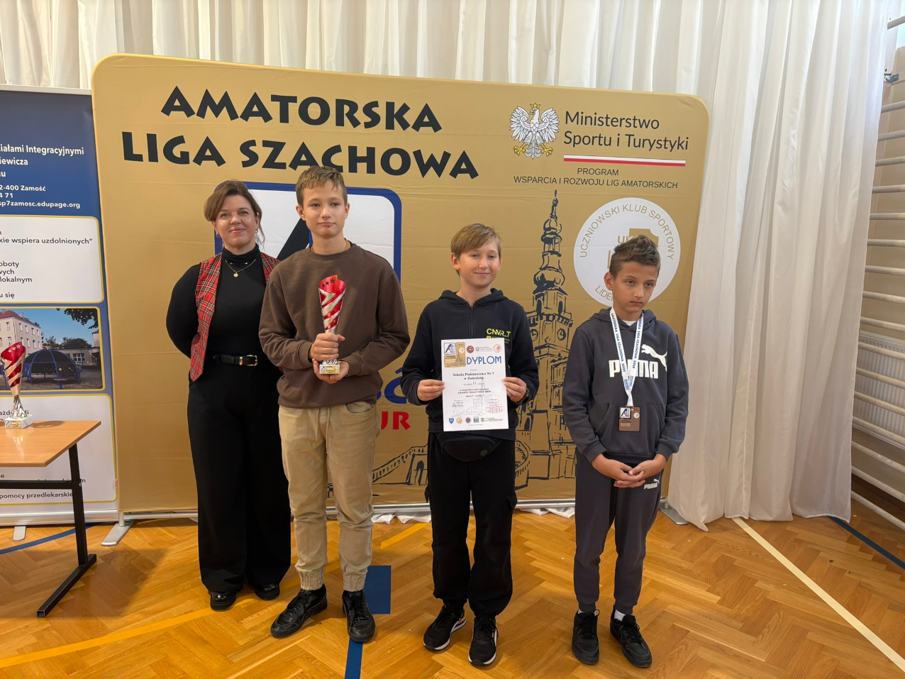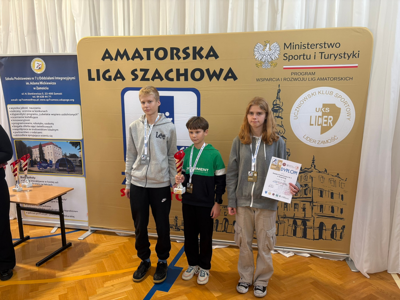 II miejsce –SP6 Zamość 12,5 pkt. (Lena Kmieć, Antoni Rachwał, Jan Bondyra)