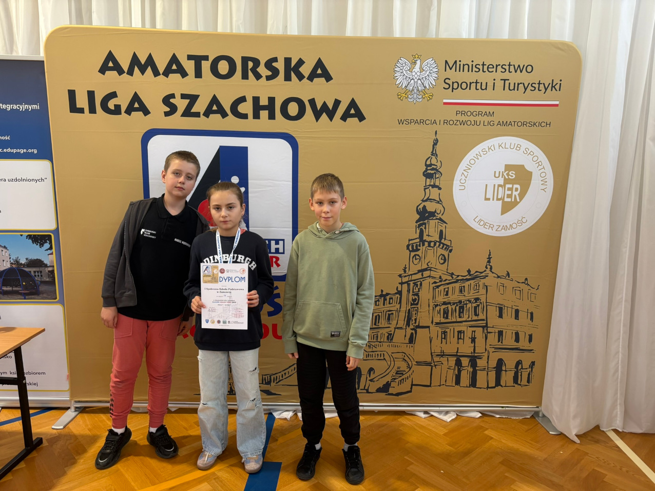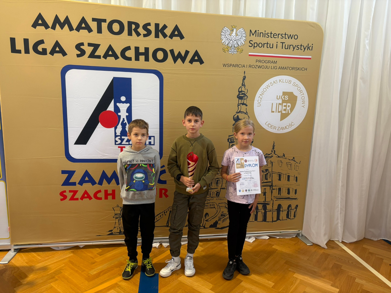 I miejsce –SP3 Zamość16,5 pkt. (Miłosz Różański, Ignacy Różański, Martyna Bartkowska)