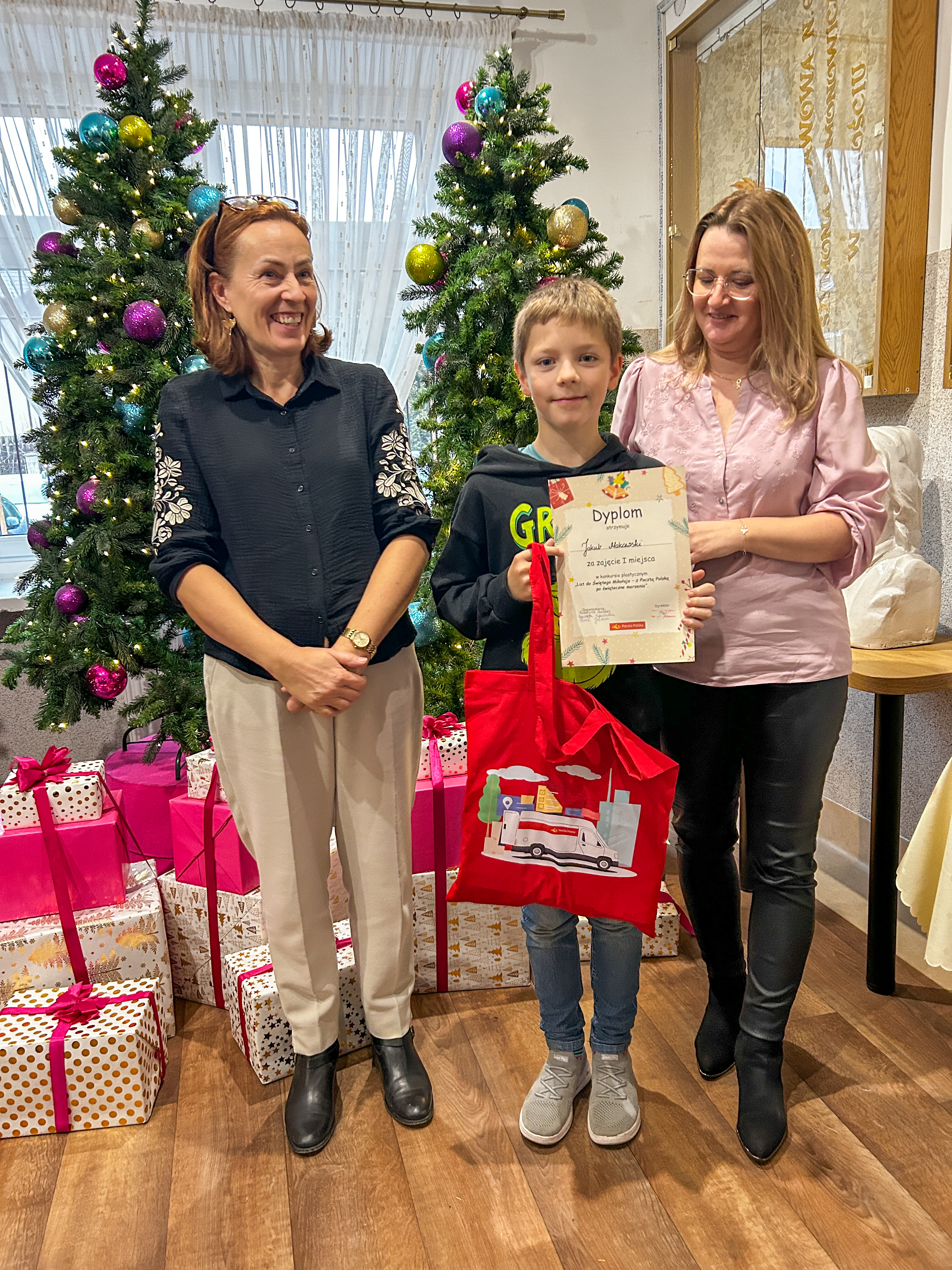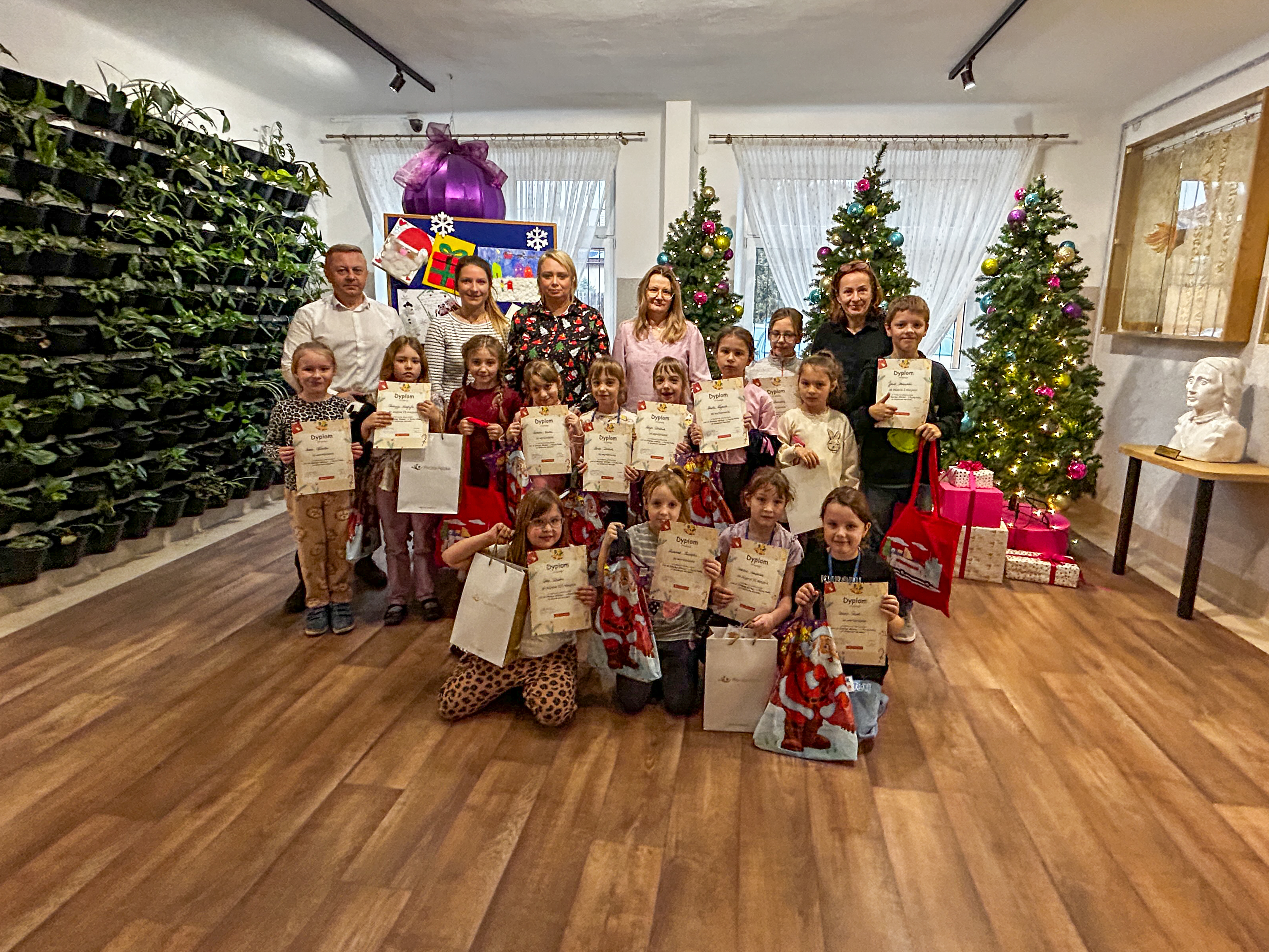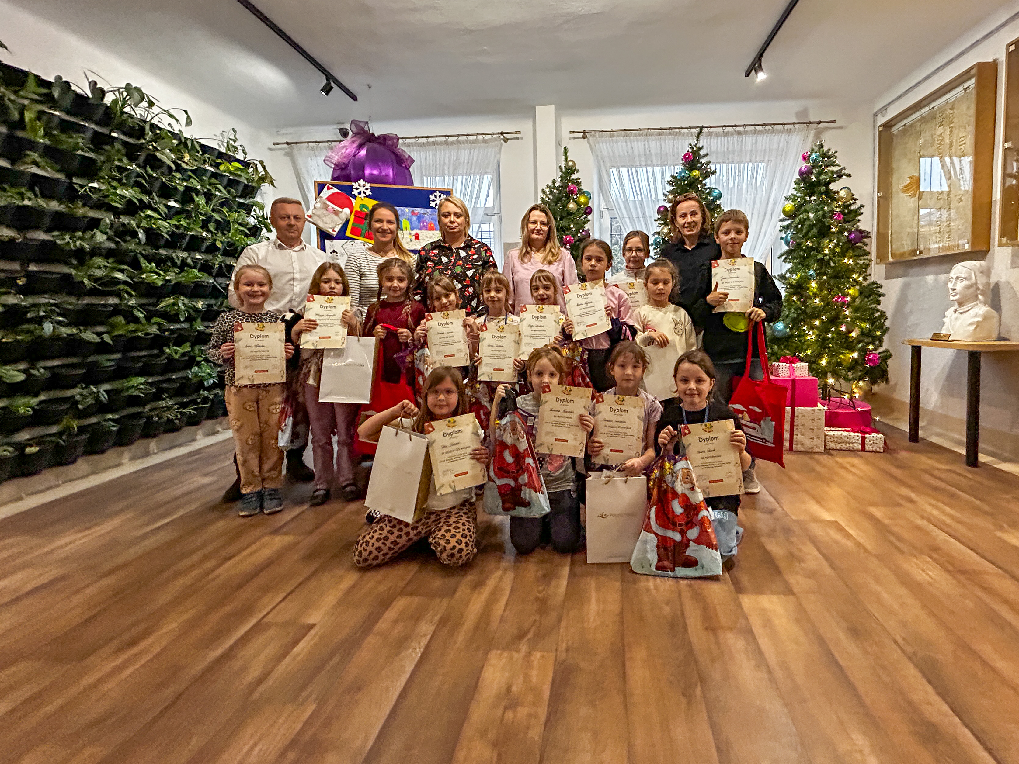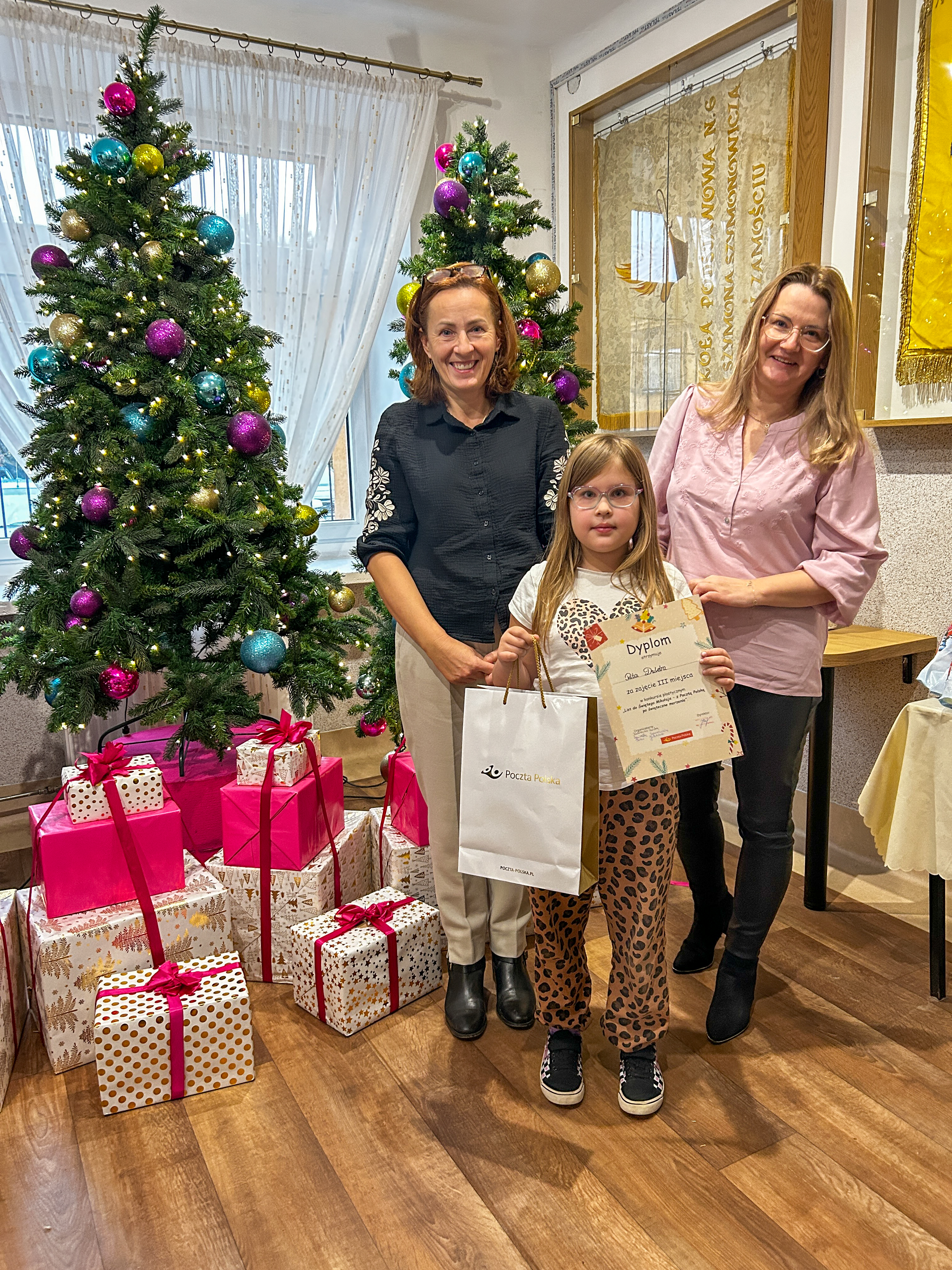 Nagrody laureatom wręczyła pani dyrektor Joanna Stefanowska oraz przedstawicielka Poczty Polskiej pani Katarzyna Najda. Wszyscy wspólnie złożyli młodym twórcom gratulacje oraz wyrazy uznania za ich wyjątkowe, pełne magii i świątecznego ciepła prace.
