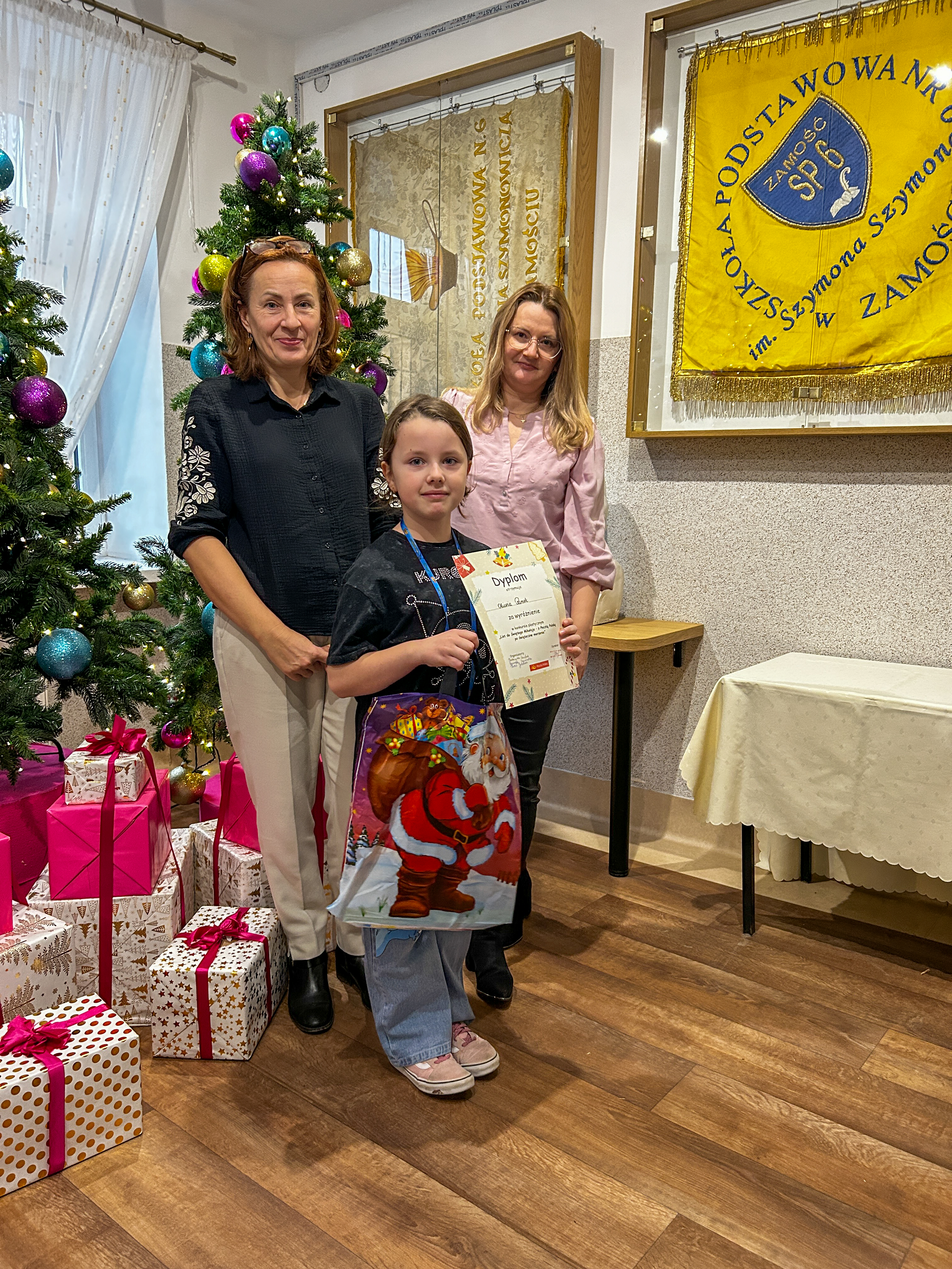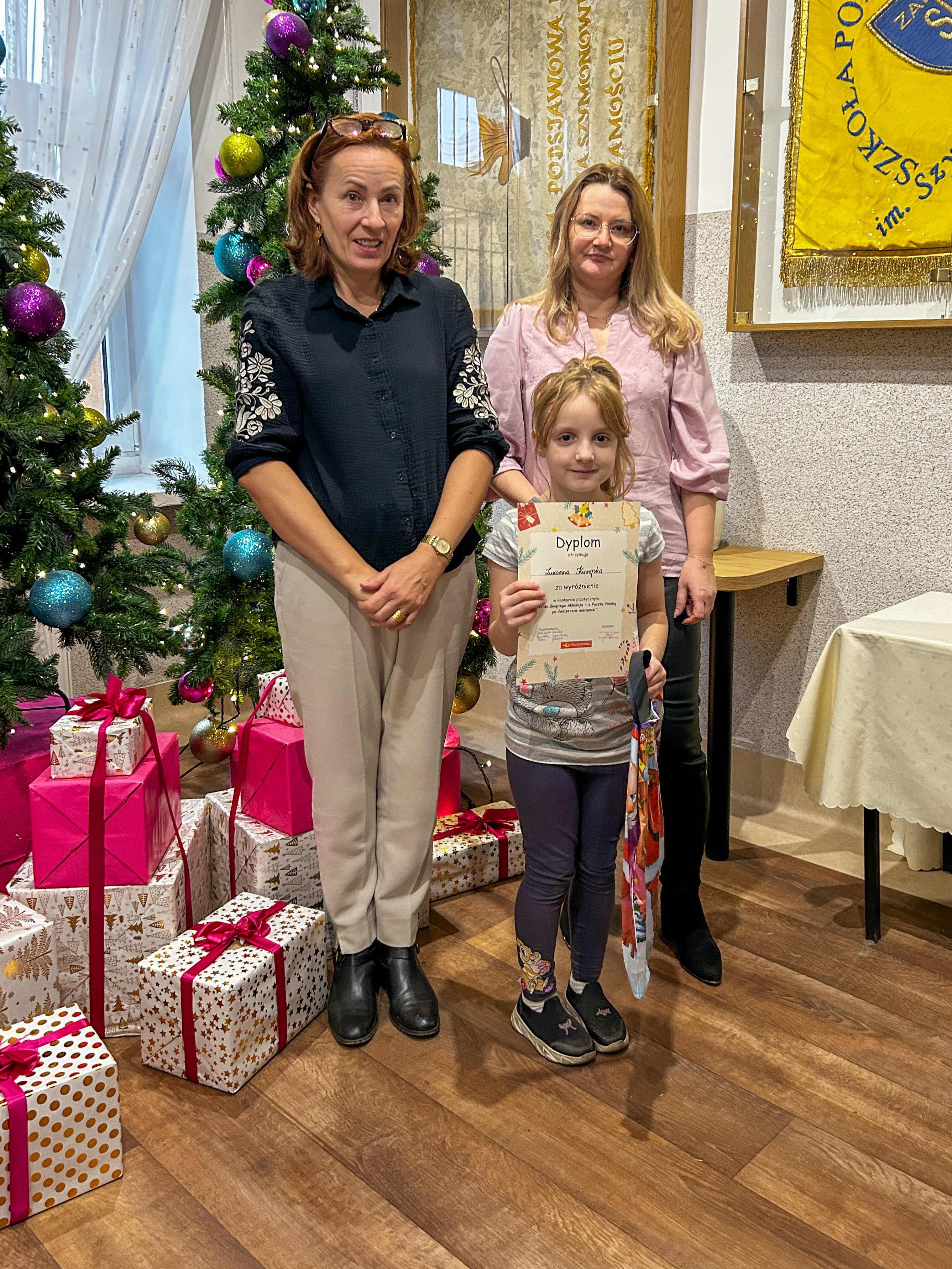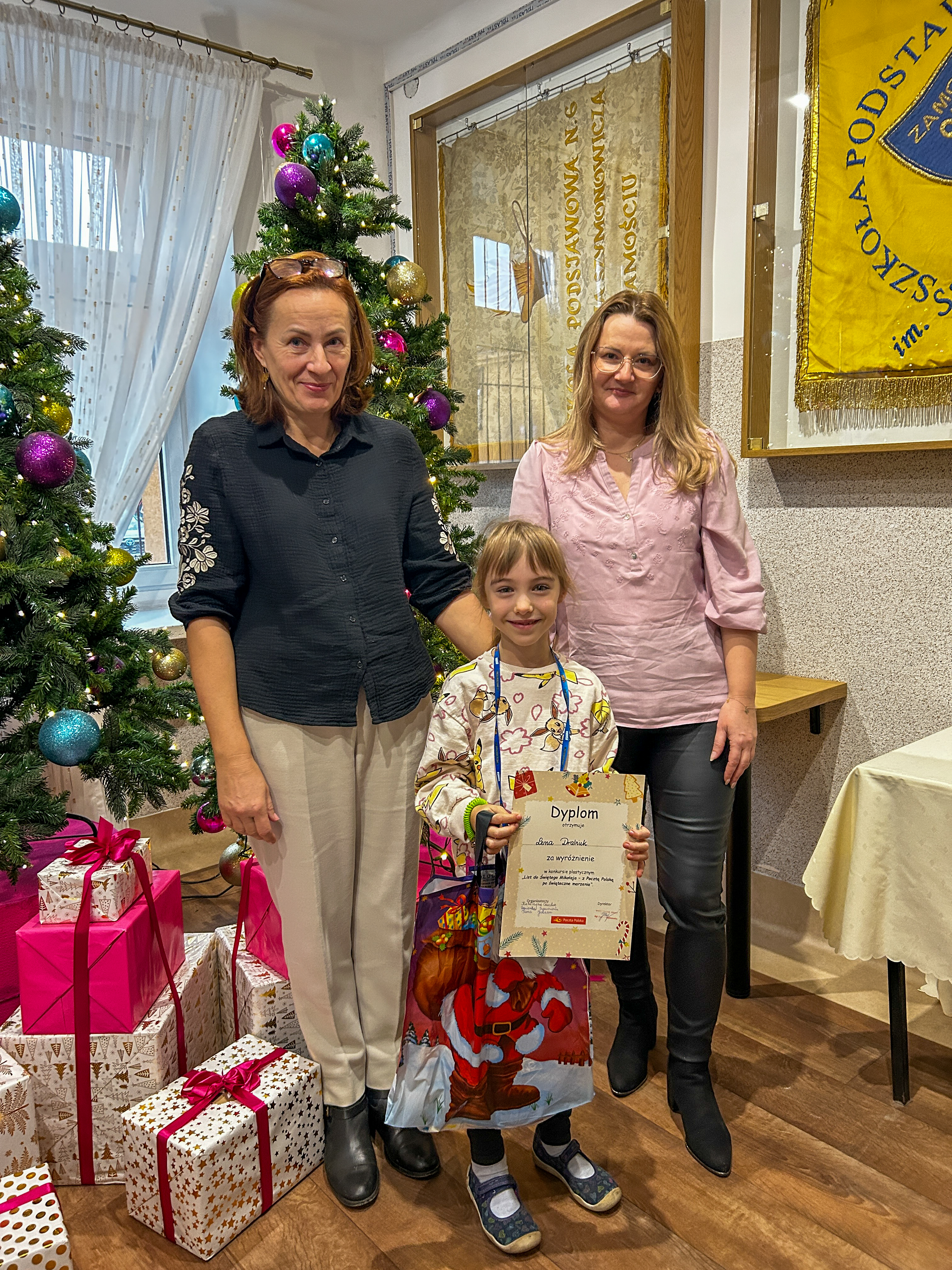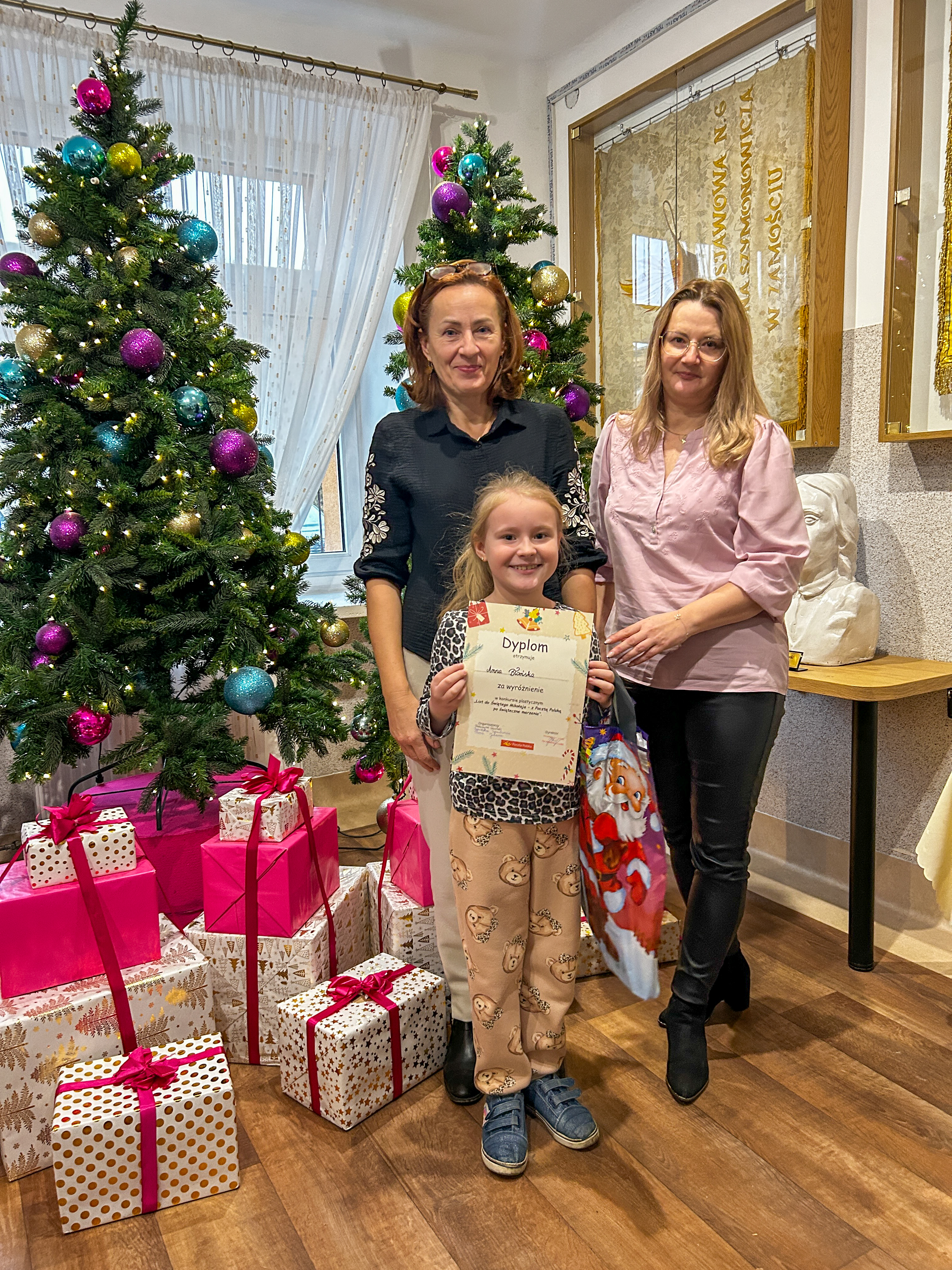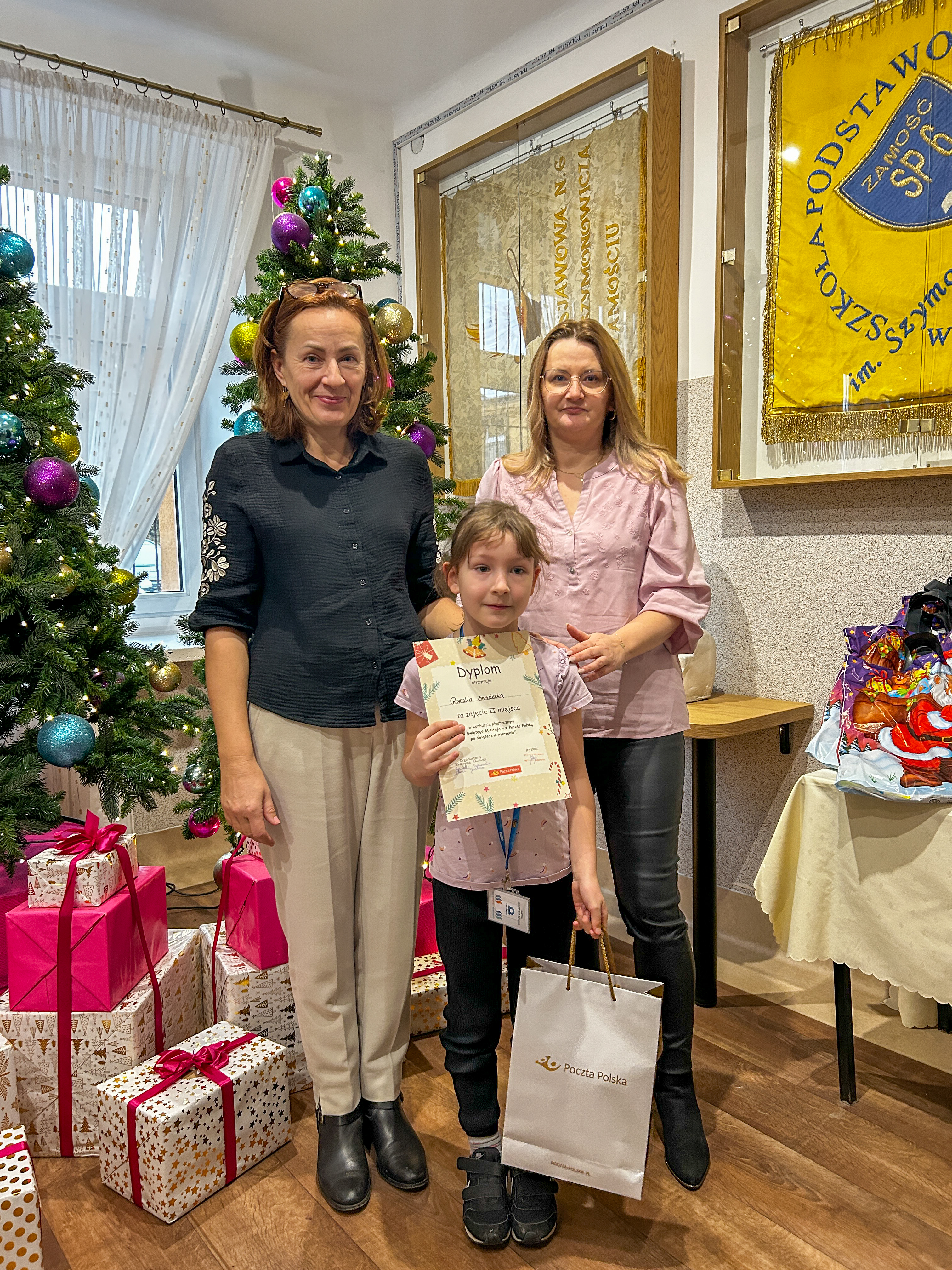 Nagrody laureatom wręczyła pani dyrektor Joanna Stefanowska oraz przedstawicielka Poczty Polskiej pani Katarzyna Najda. Wszyscy wspólnie złożyli młodym twórcom gratulacje oraz wyrazy uznania za ich wyjątkowe, pełne magii i świątecznego ciepła prace.