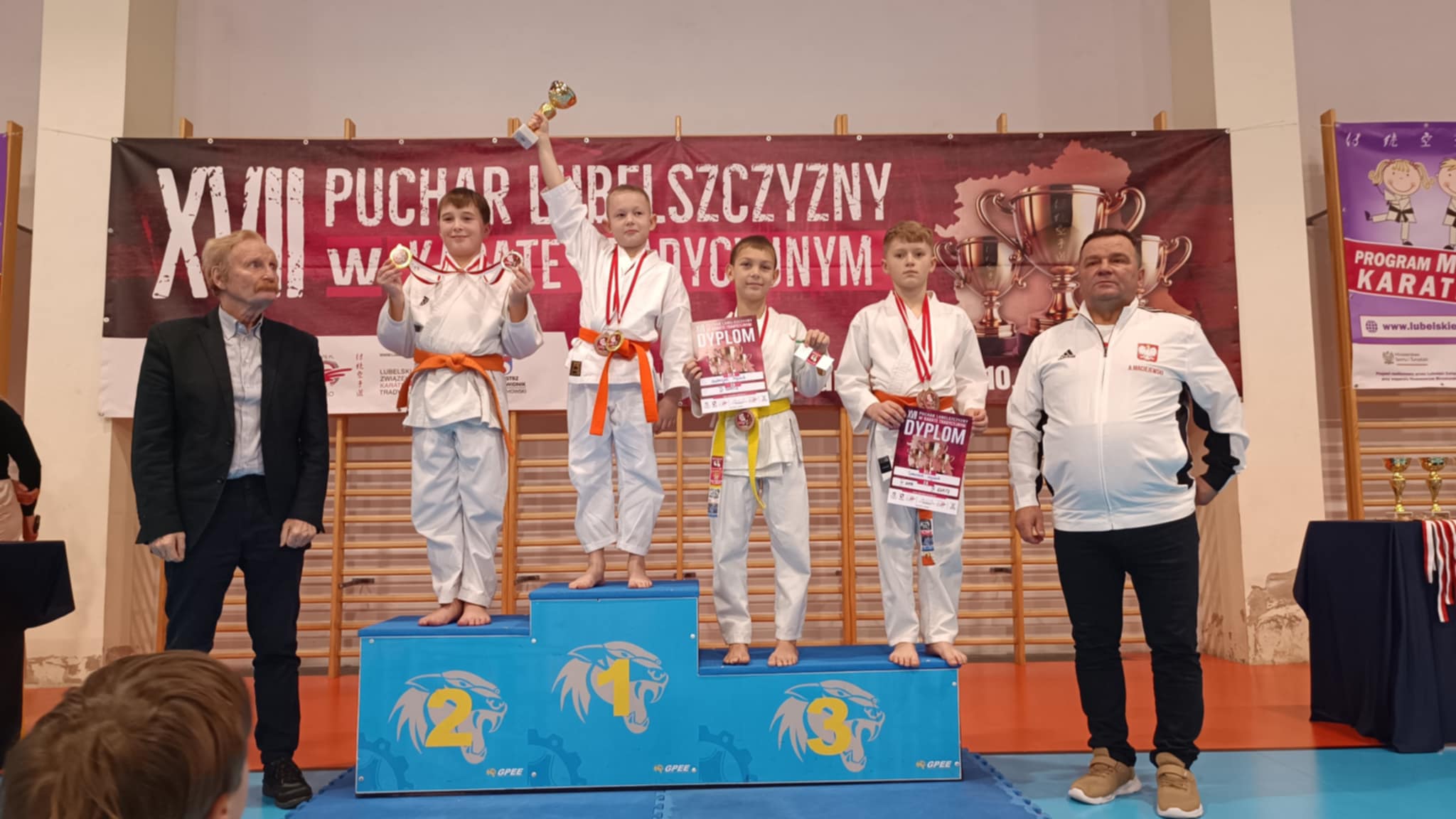Nie zabrakło także przedstawicieli Akademi Karate Tradycyjnego KIAI Zamość, uczniów Szkoły Podstawowej nr 6, którzy z sukcesami startowali w konkurencji Kata i Kumite. Nikoś Kraczek - 1 miejsce Kumite - klasa Kl IIA; Karol Dudek -2 miejsce Kumite i 3 miejsce Kata - Kl. VB; Igor kraczek - 3 miejsce Kumite - Kl. VB.