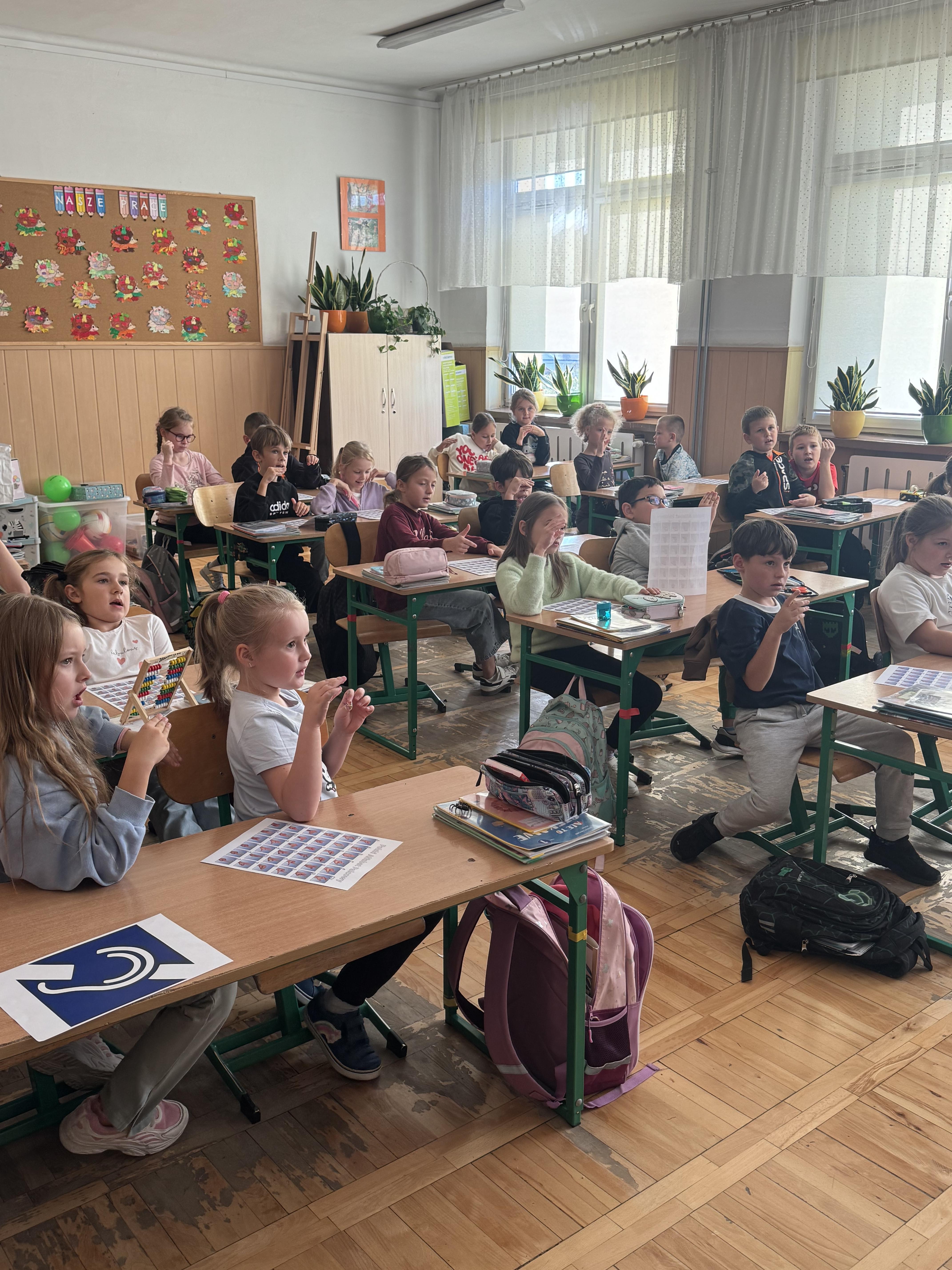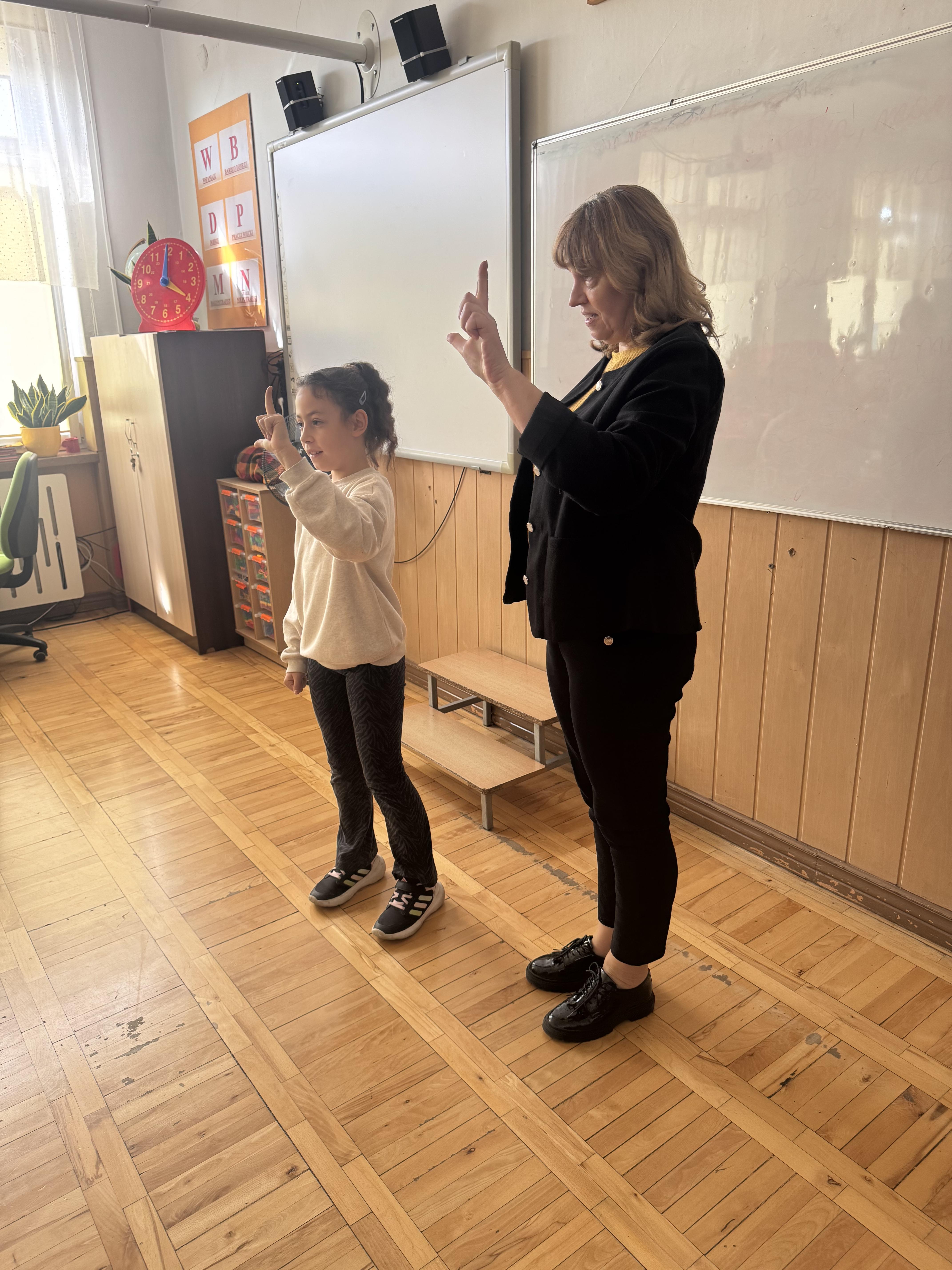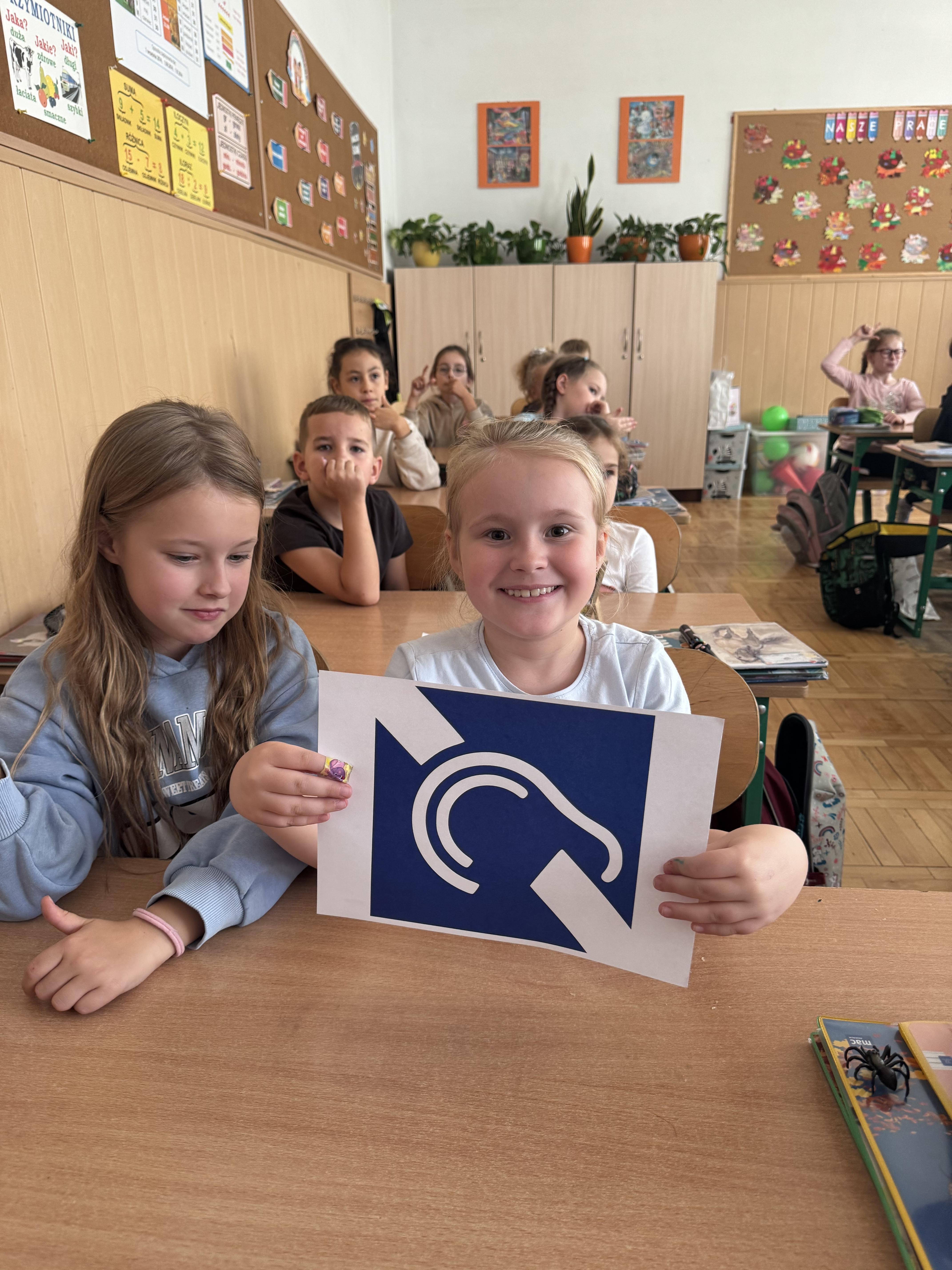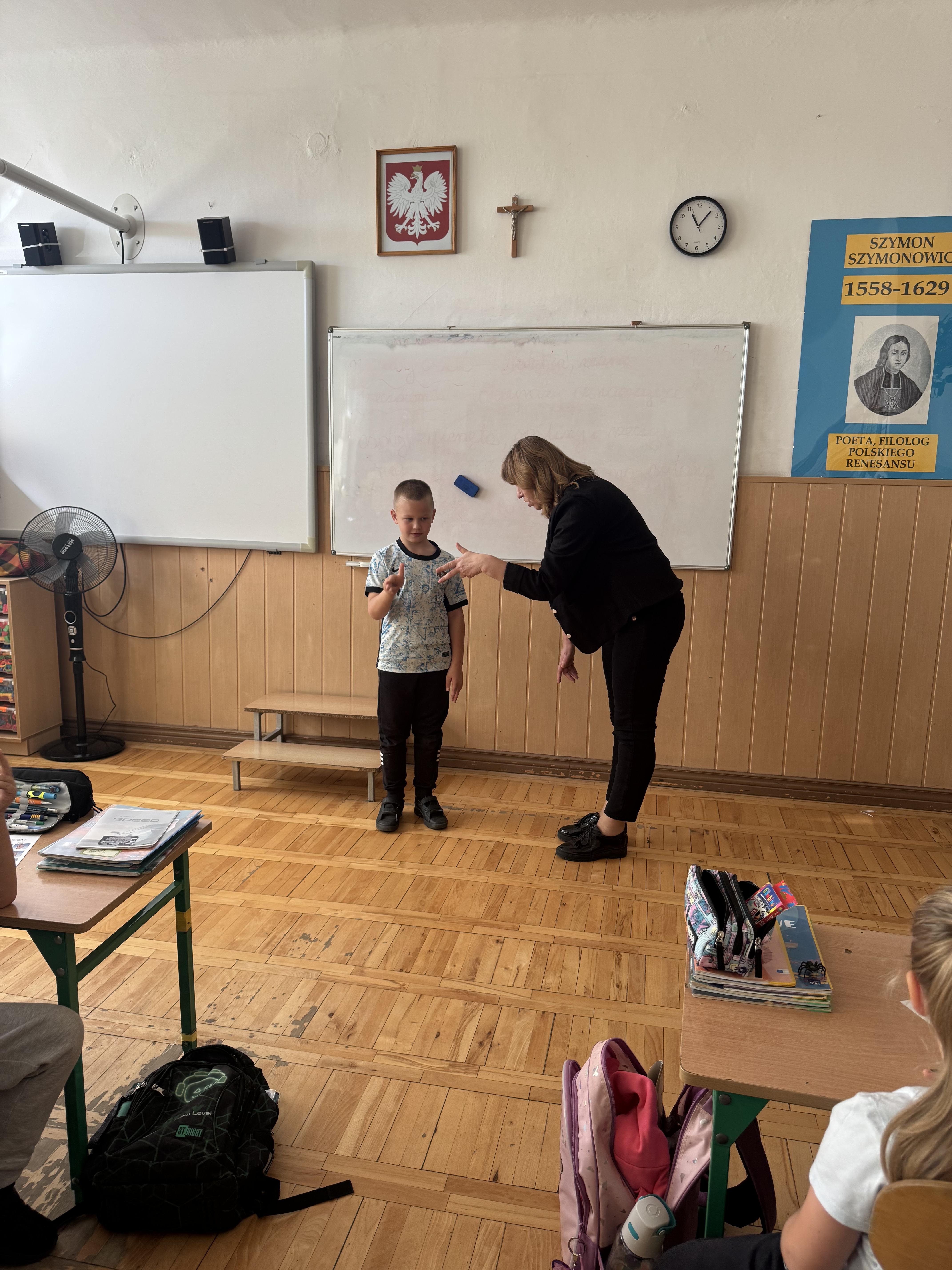 Dziś w klasie II B odbyły się wyjątkowe zajęcia z języka migowego, które poprowadziła Pani Ewa Hanulak – nauczycielka języka migowego w szkołach policealnych. Uczniowie mieli okazję dowiedzieć się, czym jest język migowy, dlaczego jest tak ważny i w jaki sposób ułatwia komunikację osobom niesłyszącym. Dzieci z dużym zaangażowaniem poznawały pierwsze znaki i z ciekawością odkrywały, że nauka migania może być nie tylko wartościowa, ale też bardzo interesująca. Była to niezwykła lekcja otwartości, empatii i wrażliwości na potrzeby innych.